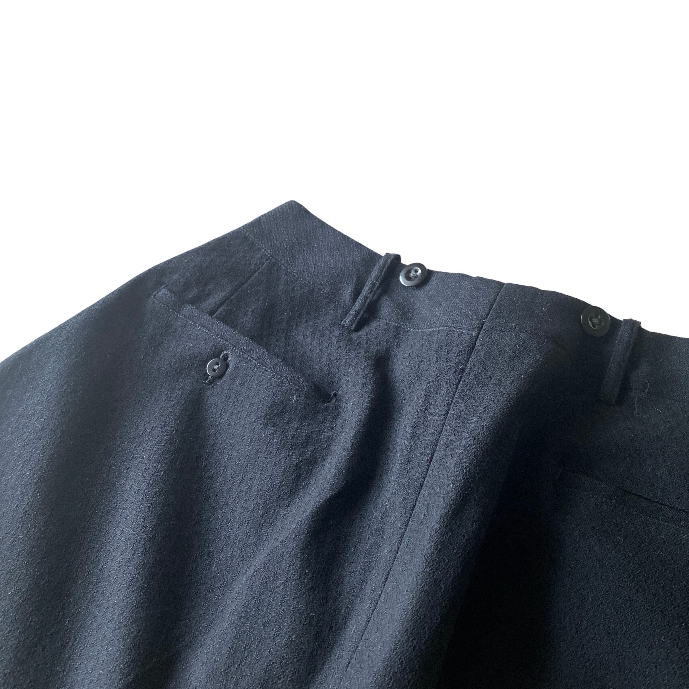 〜1960年代ごろの、アメリカンヴィンテージウールジャカード側章ノータックスラックスになります。(タグなどないですが、生地、ボタン、作りの雰囲気から間違いなく60年代以前だと思います。)