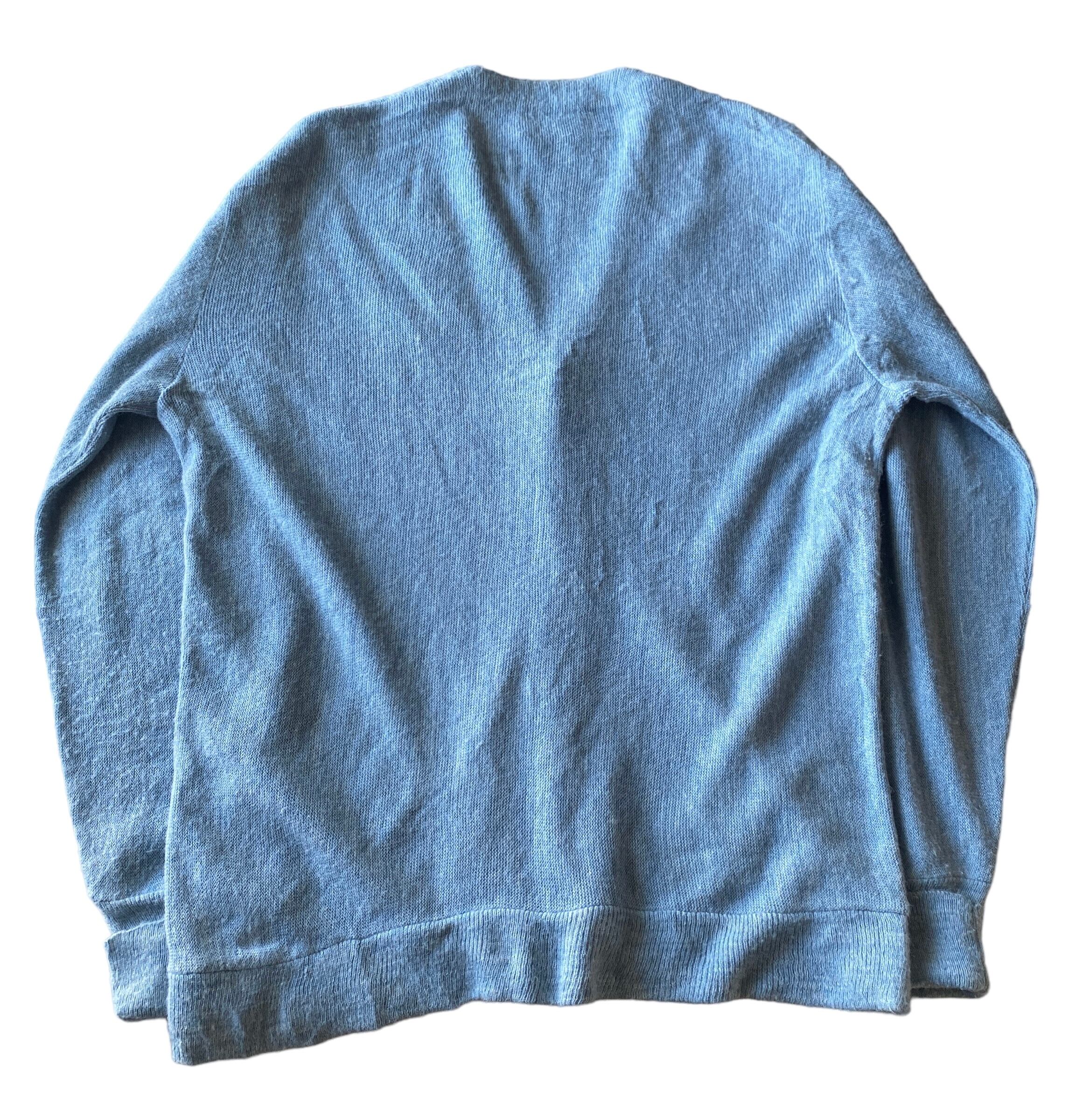 杢の入ったグレーみのあるライトブルーカラー(実物はもう気持ち淡いです)に、縮みのないゆるっとしたシルエットが非常に格好良いです。