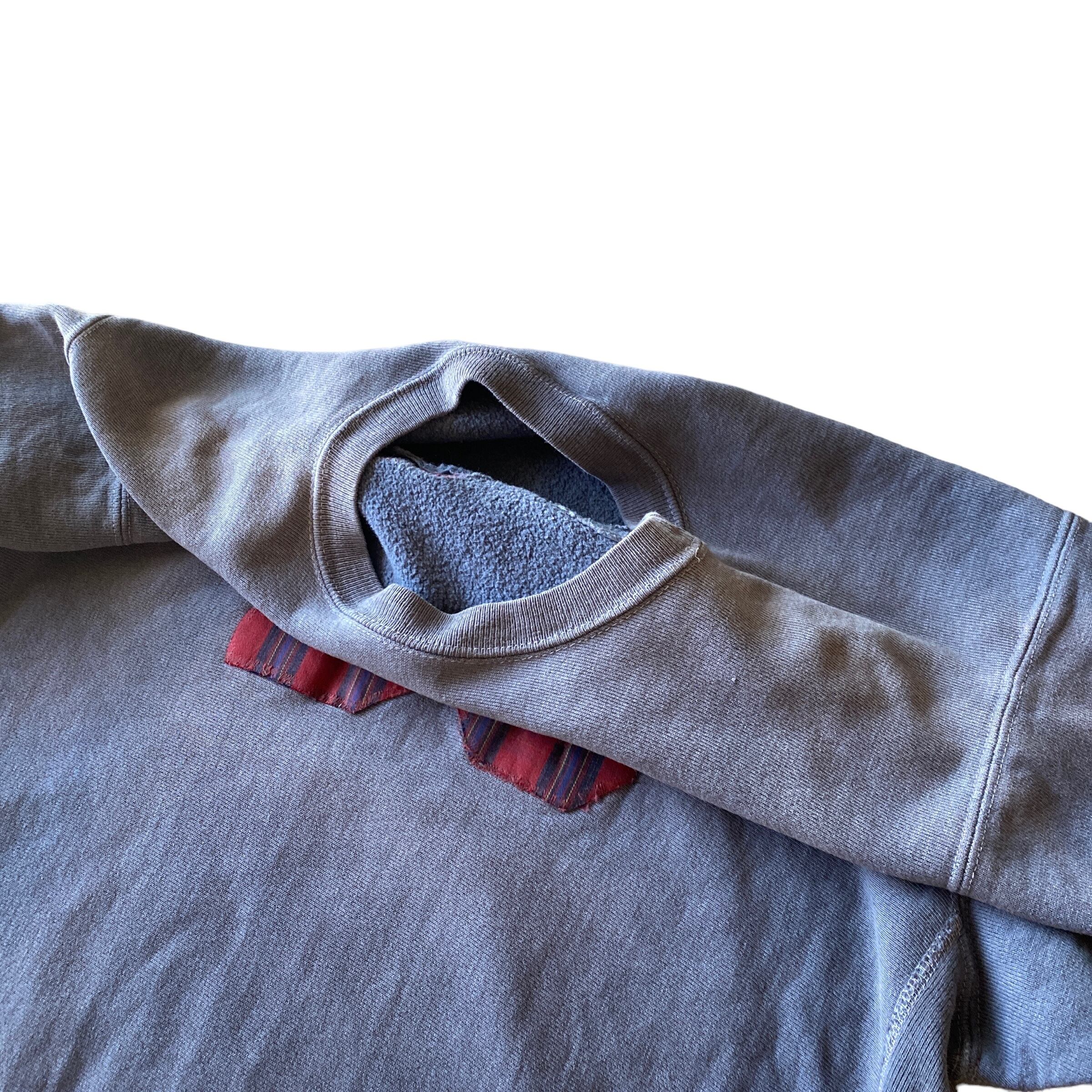 この褪色したバチバチにグランジな雰囲気と、キッチュというかナードと言うか、ちょっと垢抜けない感じの対比、これがどうにも中々イケてます。(もともともうすこしパキッとした赤チェックのパッチが後染めで沈んでる&端が少しほつれてるのがまぁー良いです)