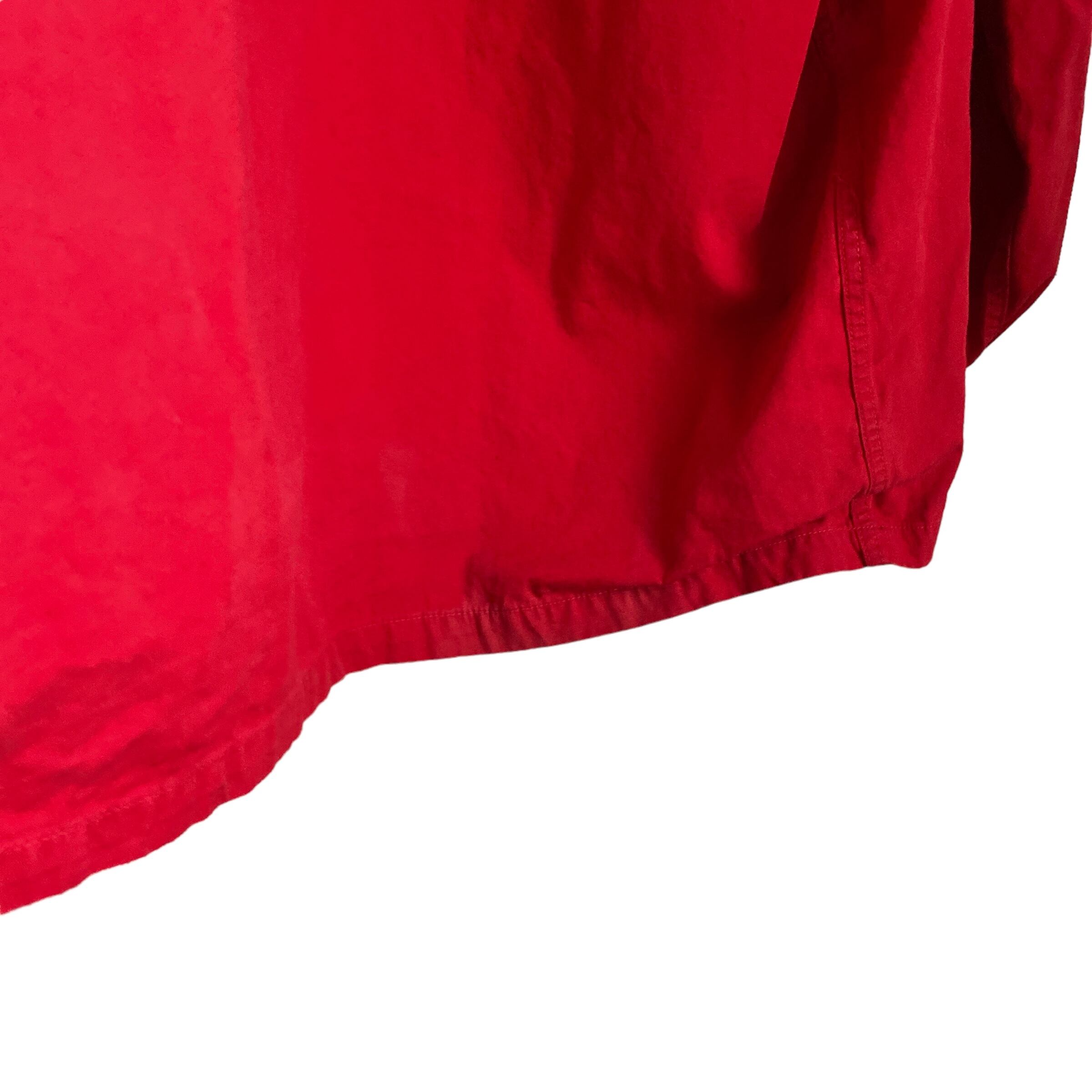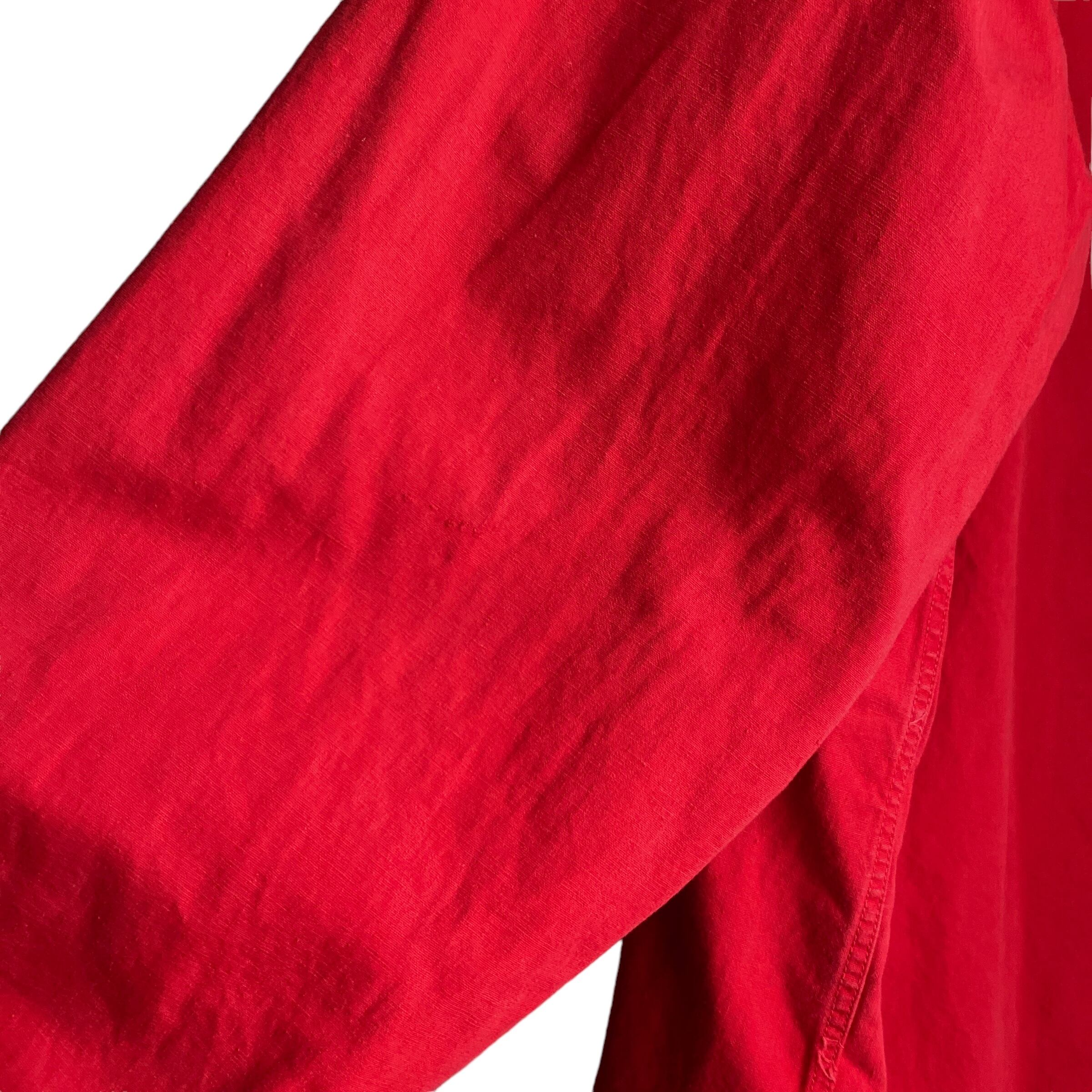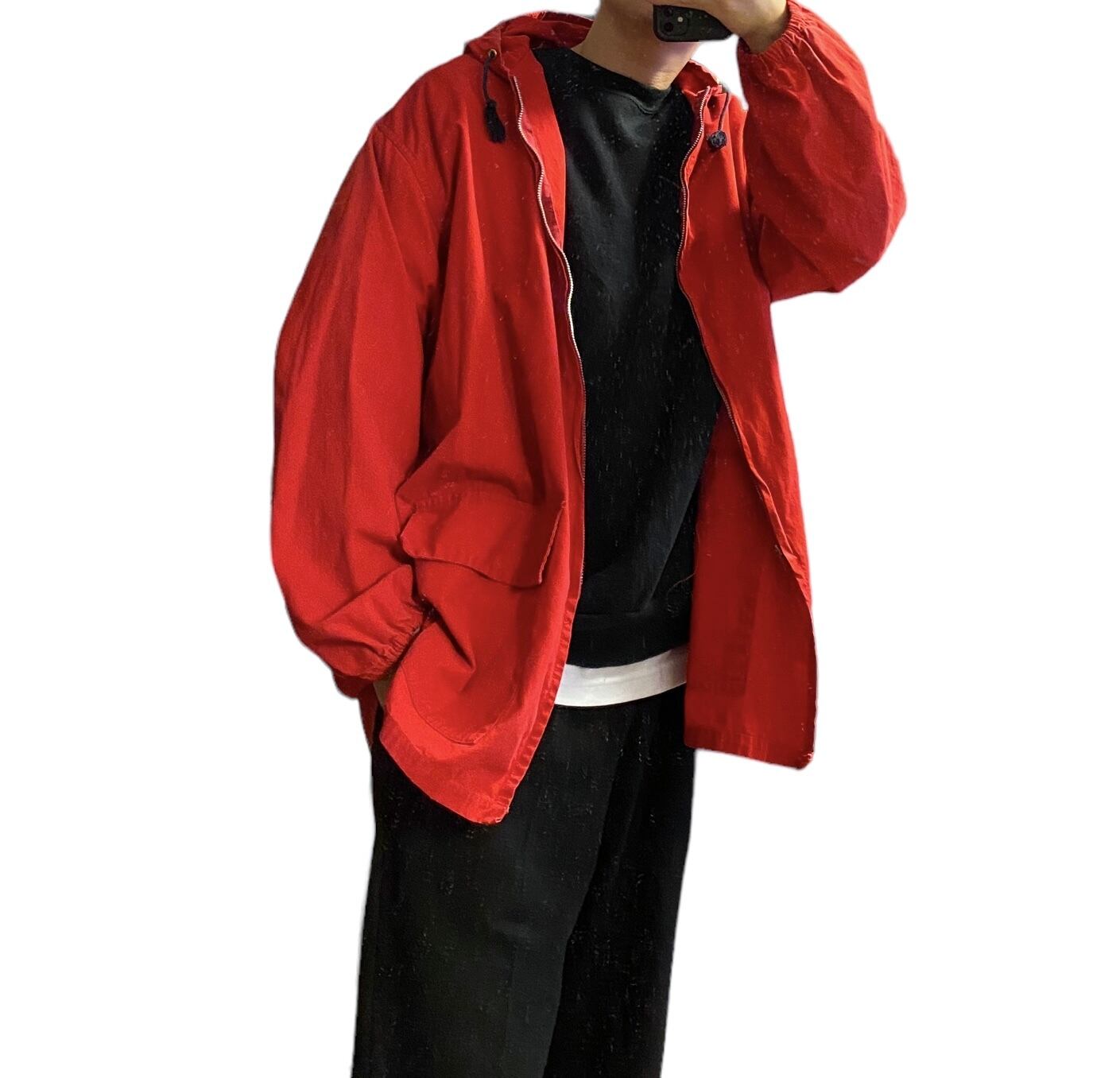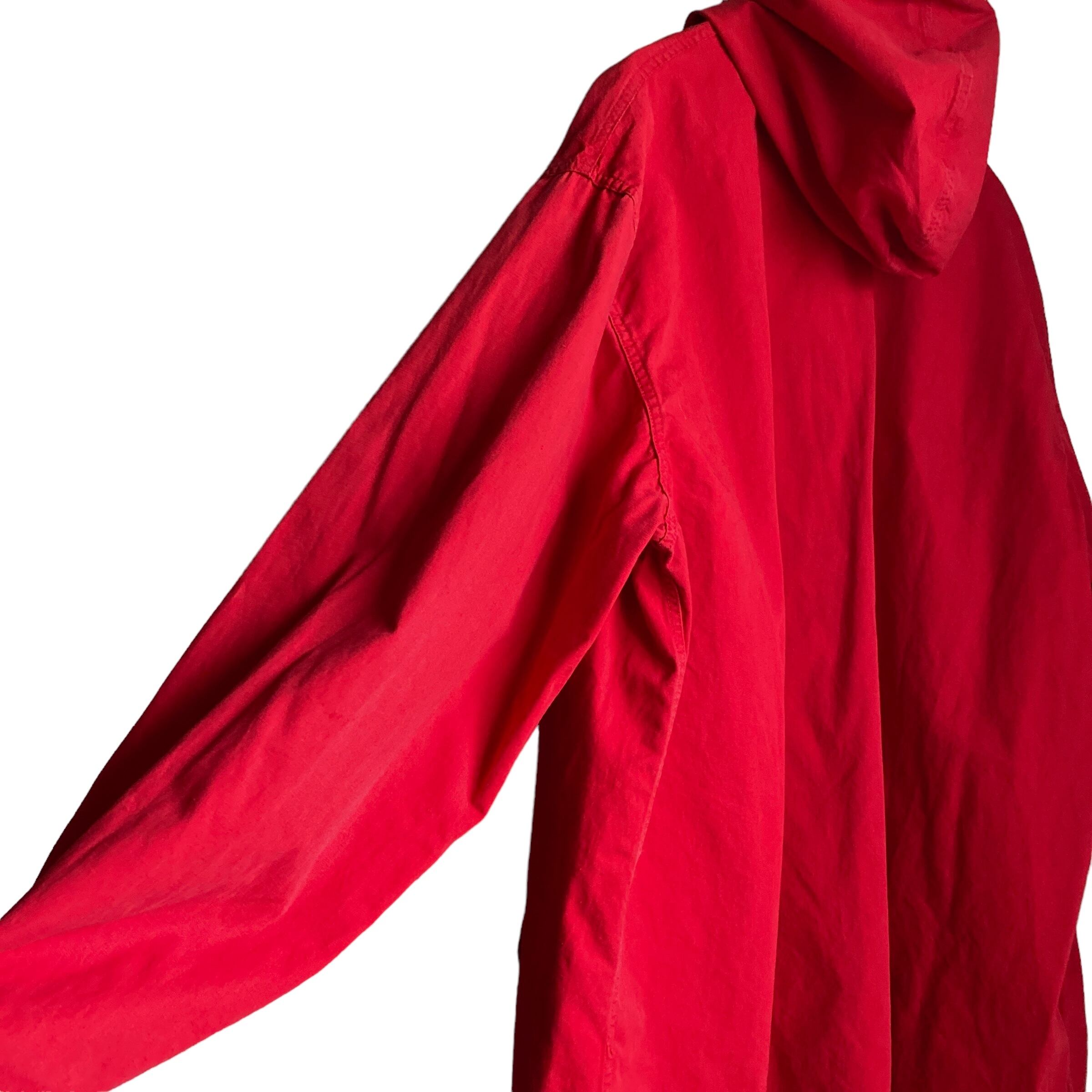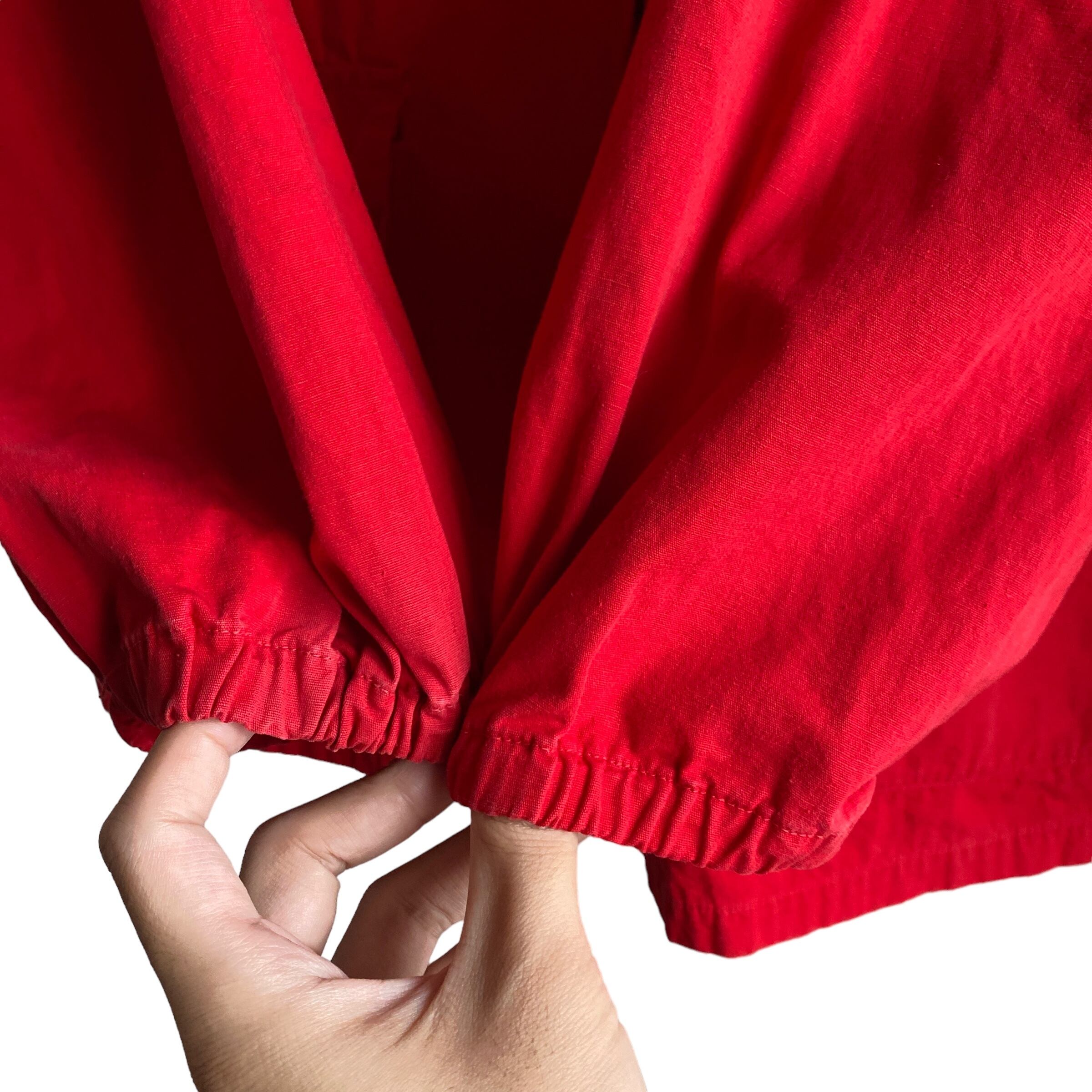 この年代特有のやや黒みがかったレッドが程よくフェードした雰囲気抜群の色目に(写真よりいくらかパキッとしてないです。ジッパー写真の感じが近いような)、アップランドポプリンというduxbakでは有名な目の詰まったコットン生地、珍しいフルジップタイプデザインが非常に格好良い一着。