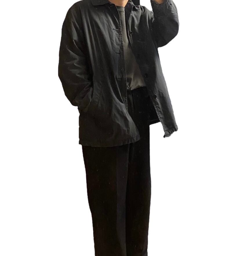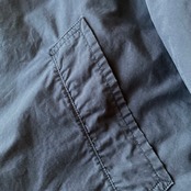 これで綺麗だったり、生地がキチッとしていたらただのダサいサラリーマンですが、ゆったりとしたシルエットに空気を含んだようなカサッとしたコットン生地、パッカリング、スレが入って枯れた雰囲気がギリギリのバランスを成立させているように感じます。