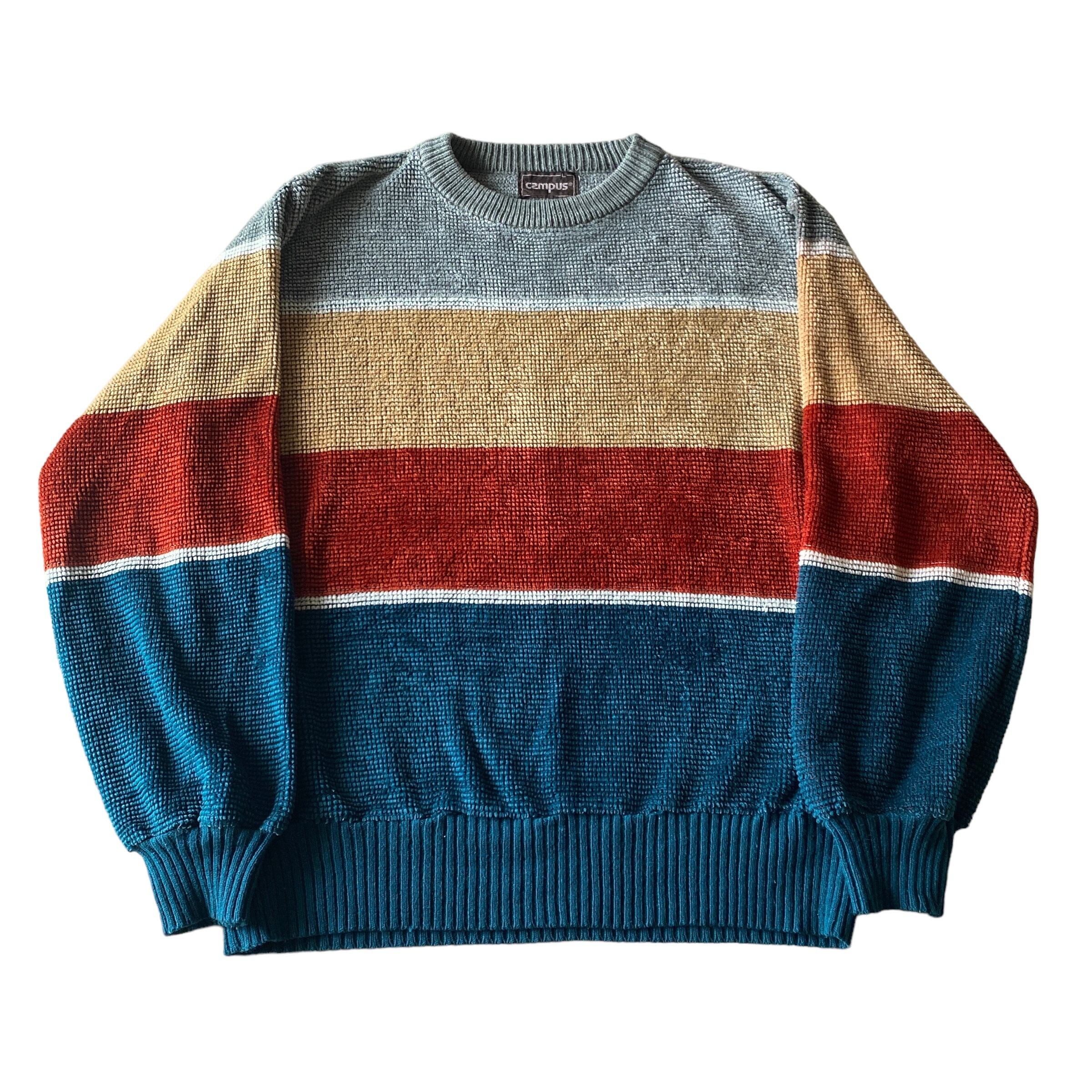 1980年代頃のキャンパスマルチボーダーベロアニットセーターになります。