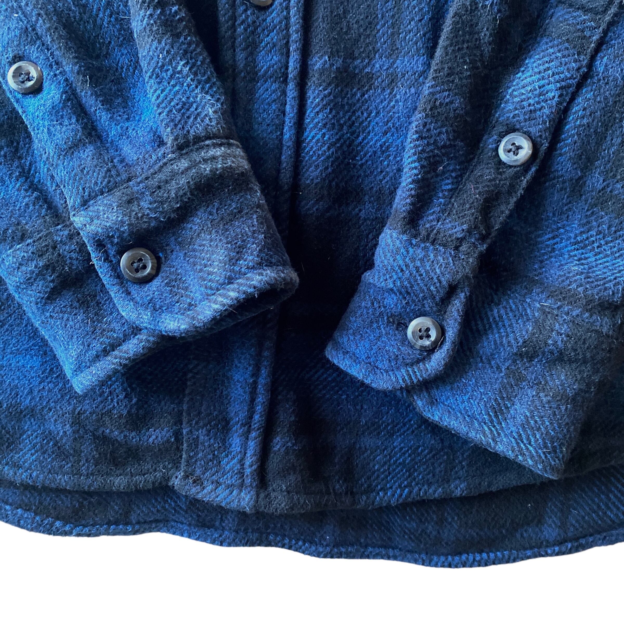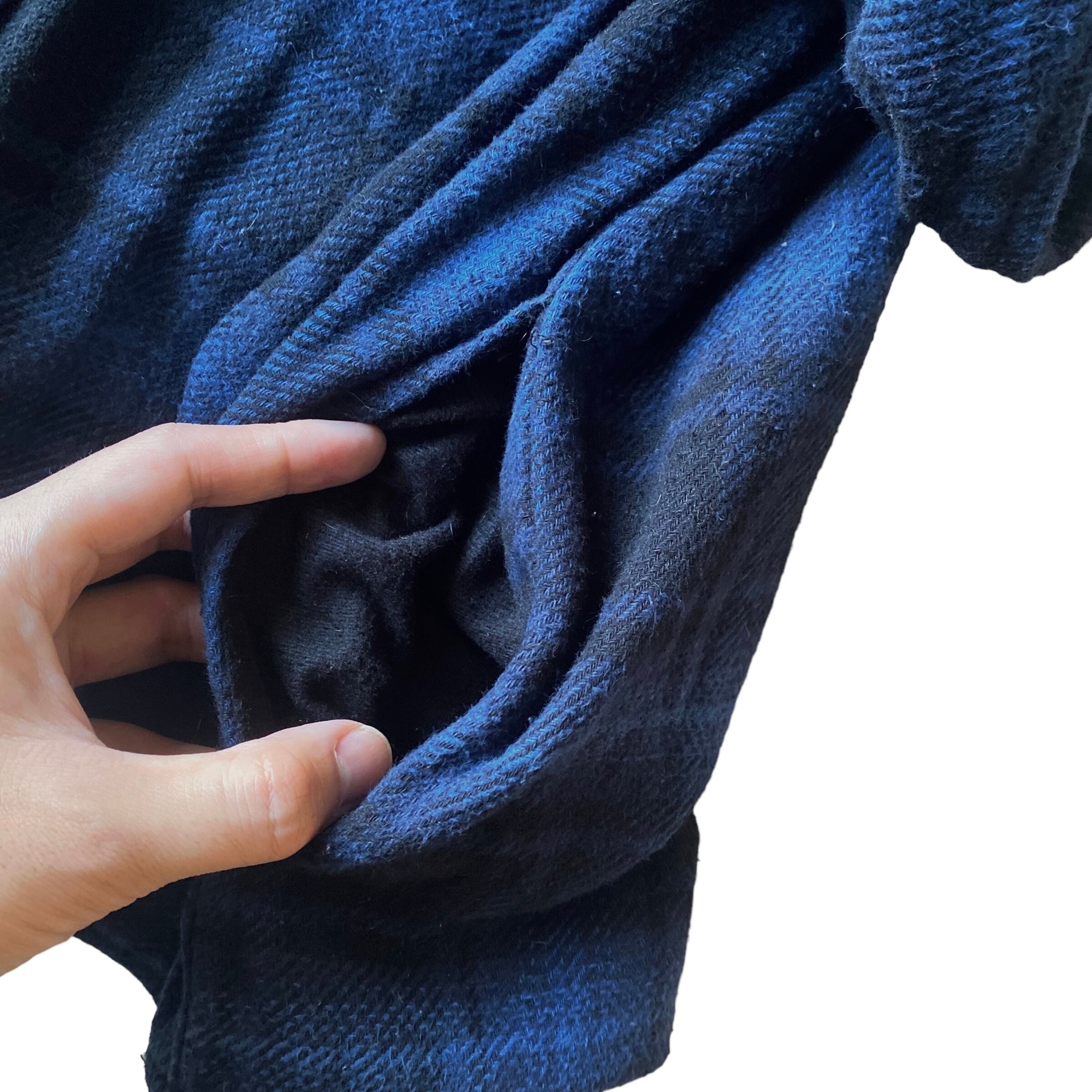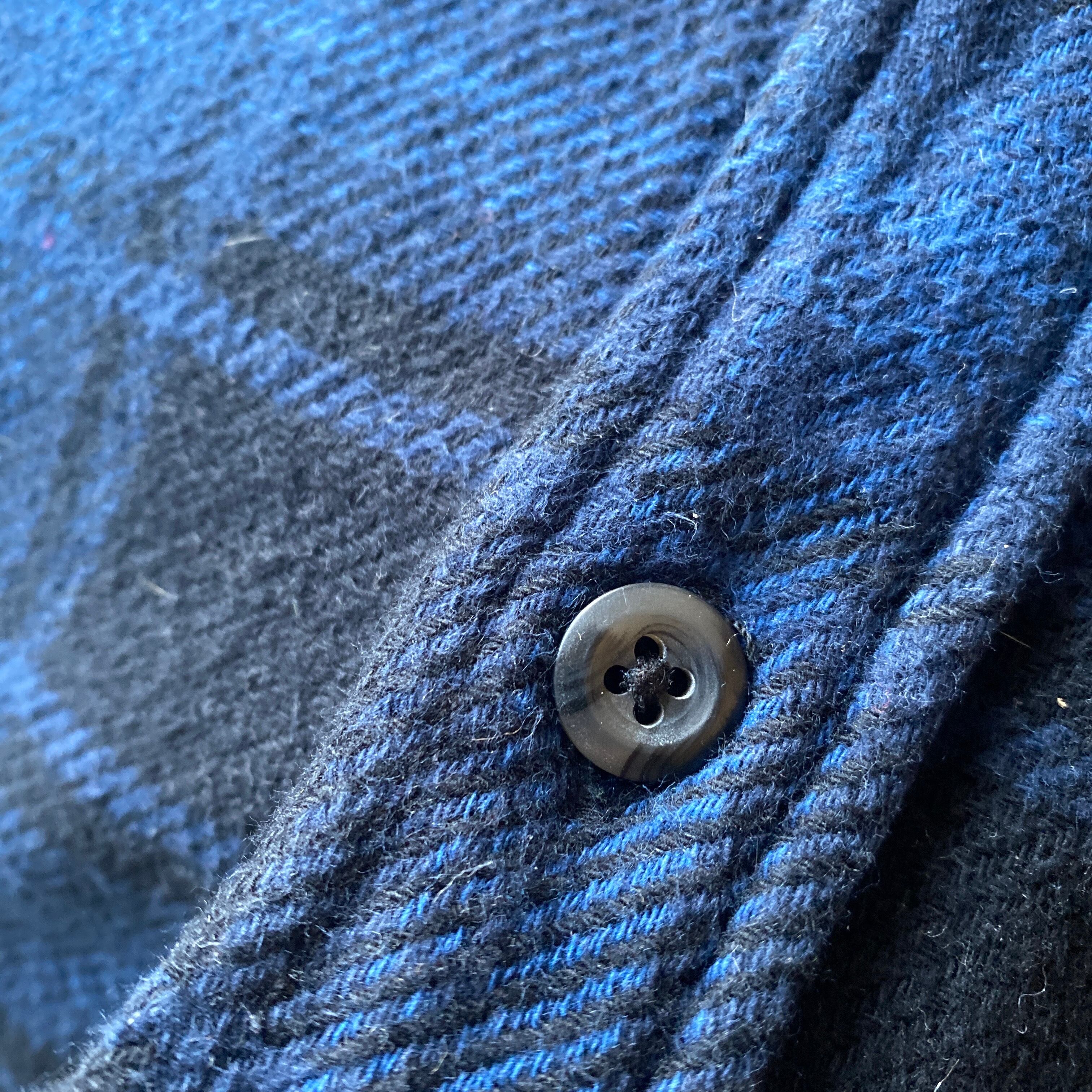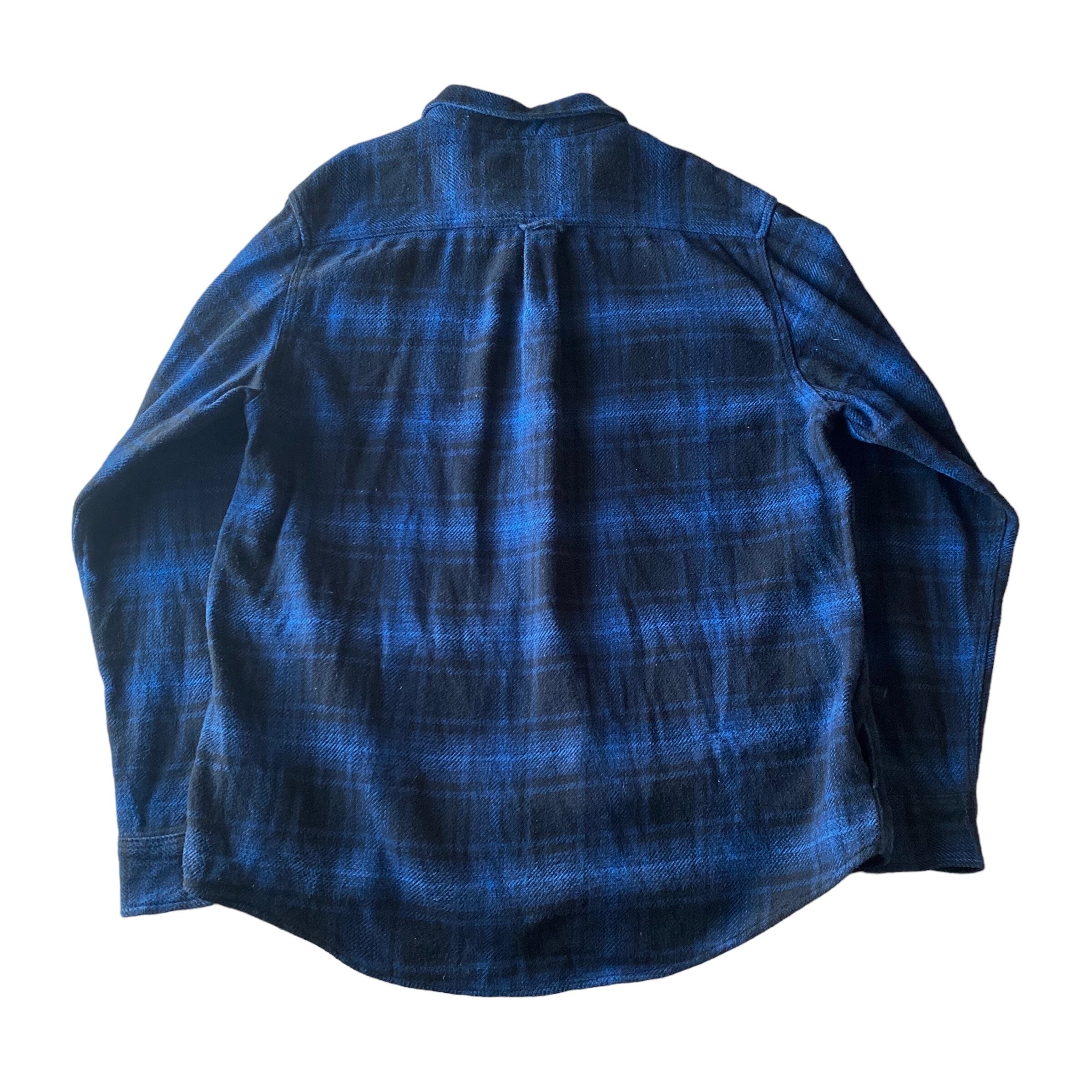 肉厚でモチっとしたコットンネル素材に、ブラック〜ダークブルーのオンブレチェックの絶妙な配色、ゆったりとしたサイズ感が抜群に格好良い一着。