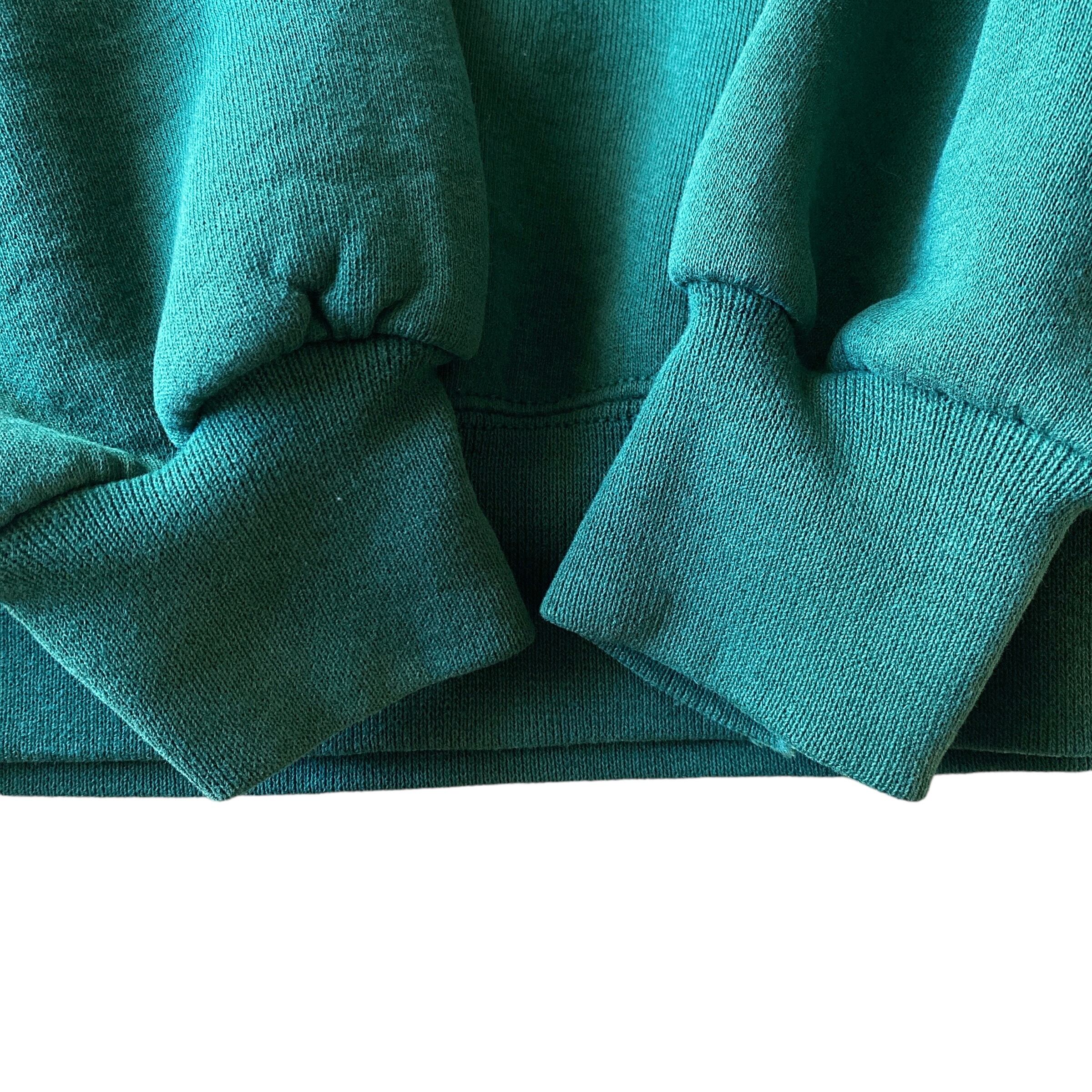 ラッセル特有の肉厚なコットンポリ素材に、程よくフェードしたグリーンの色目、短丈ボックスなシルエットが雰囲気抜群な一着。