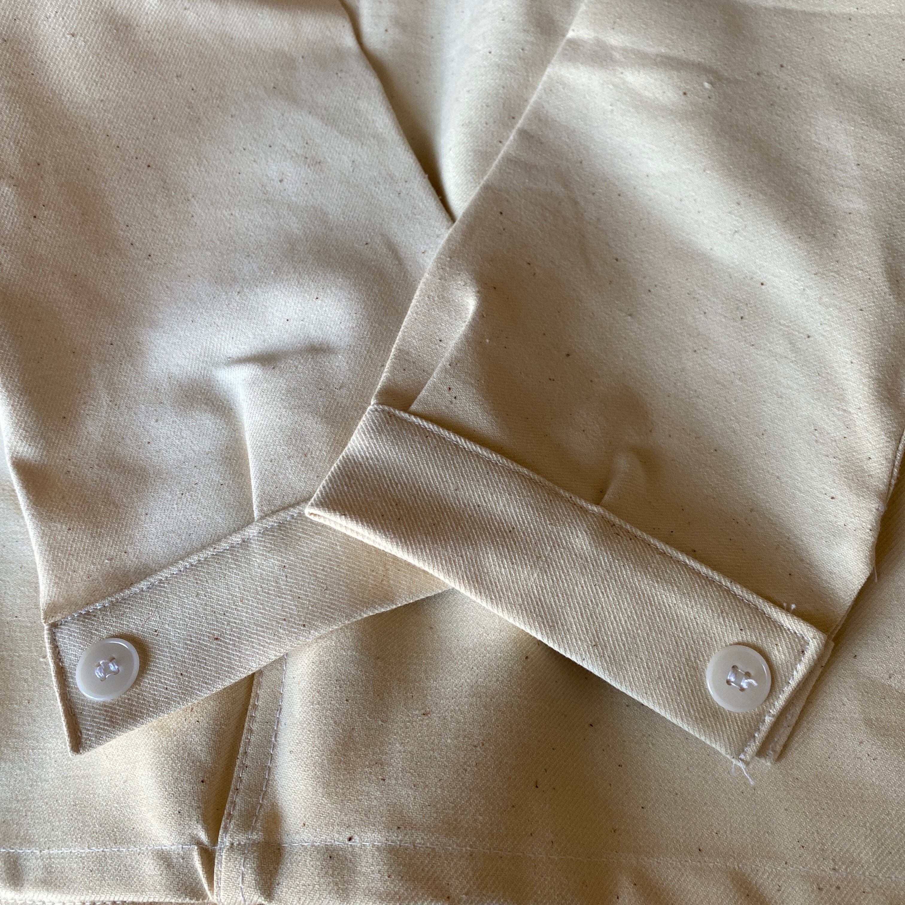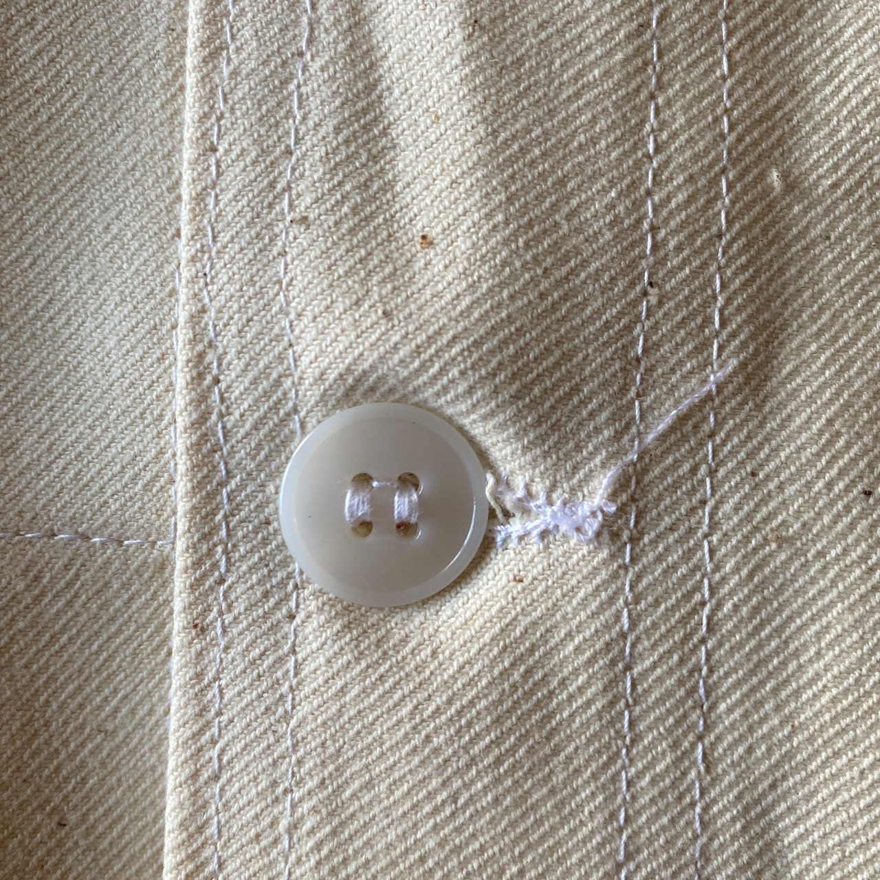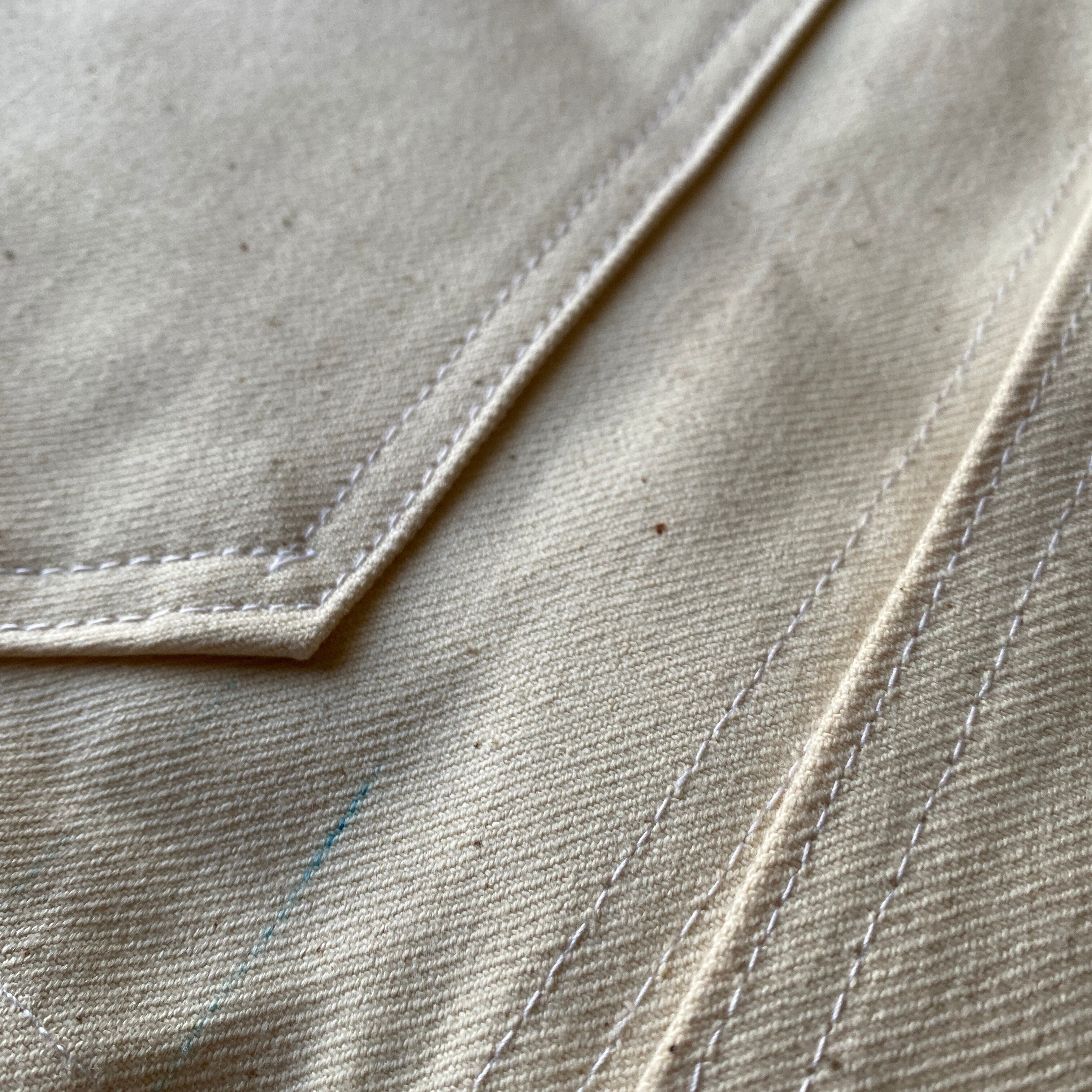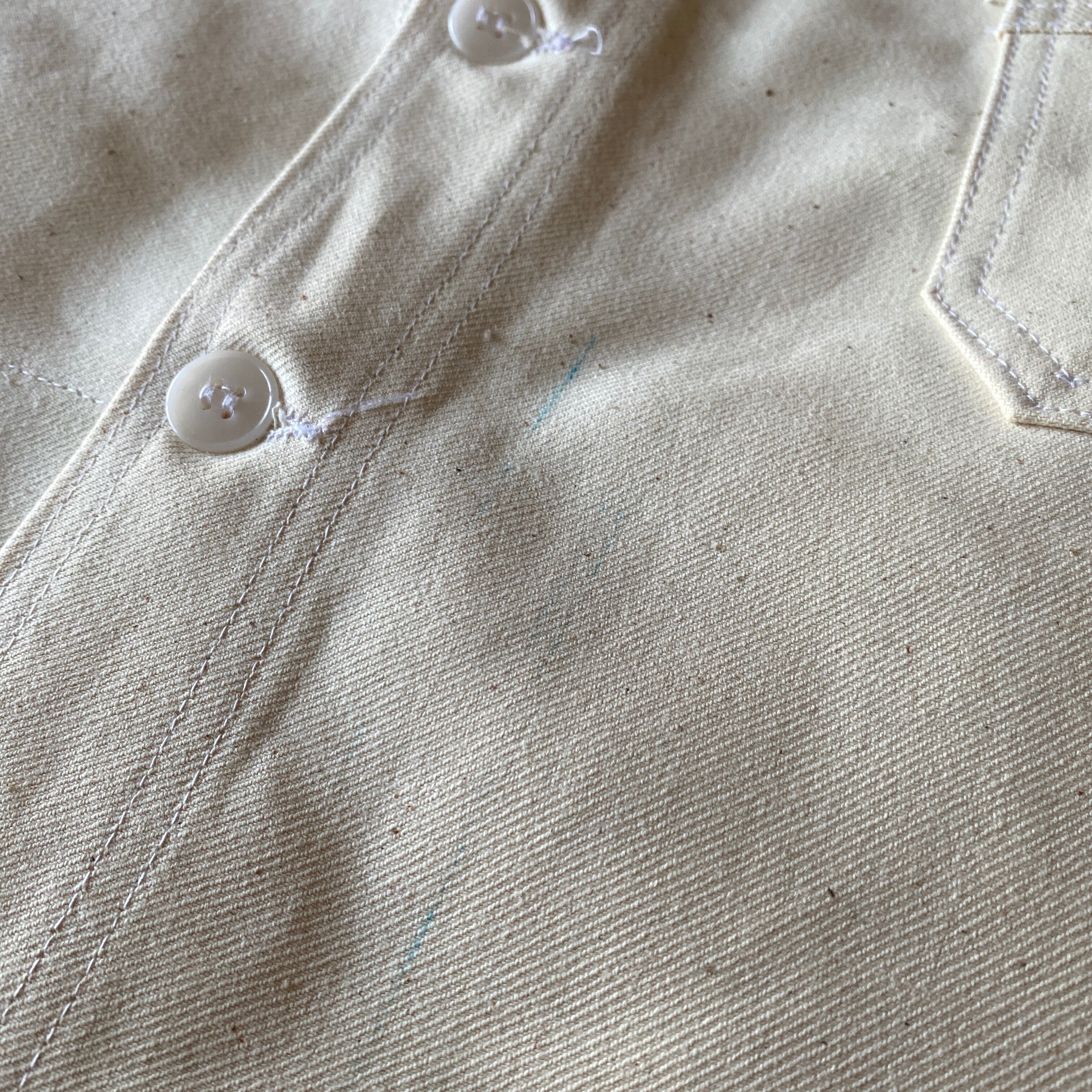 フレンチのカバーオールでは、インクブルーやブラックのツイル、モールスキンが有名ですが、こちらは非常に珍しいナチュラルカラーなのがポイントです。