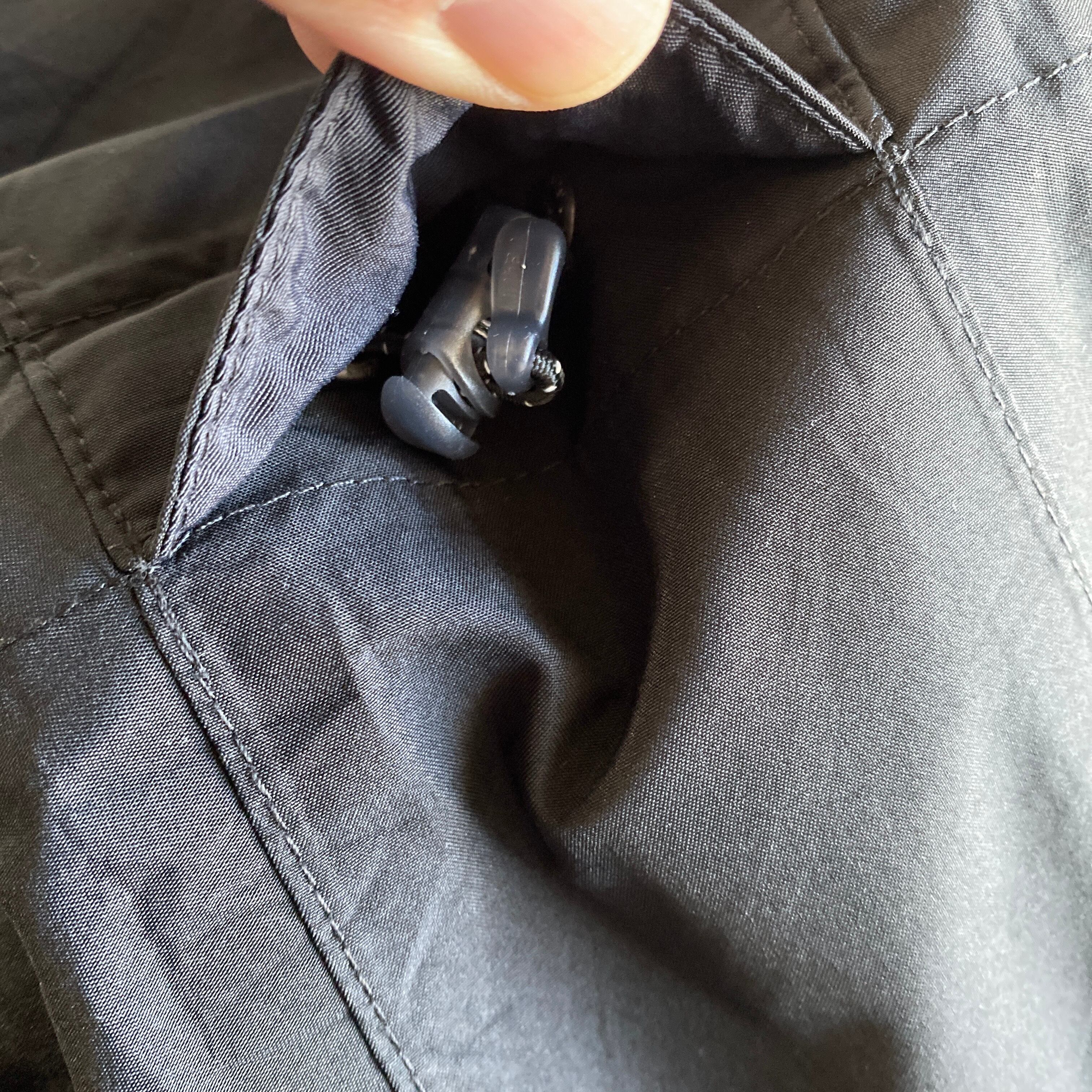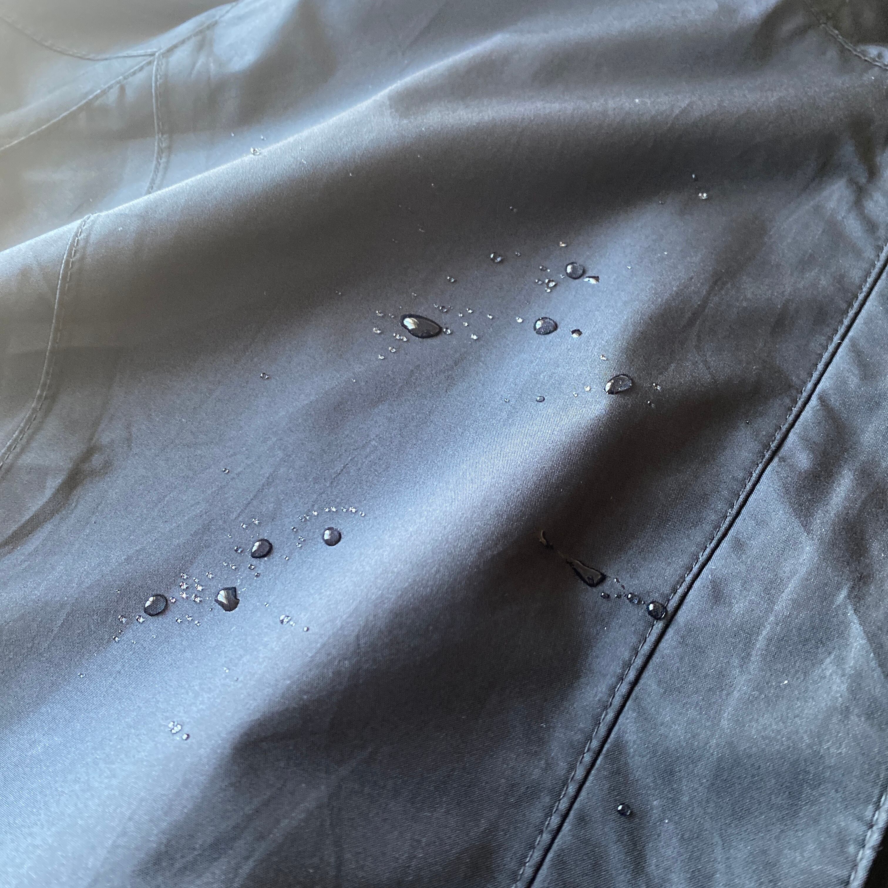 フロントは二重構造、ポケットは止水ジッパー、フード、裾はドローコード付きと、本格的な仕様も◎。