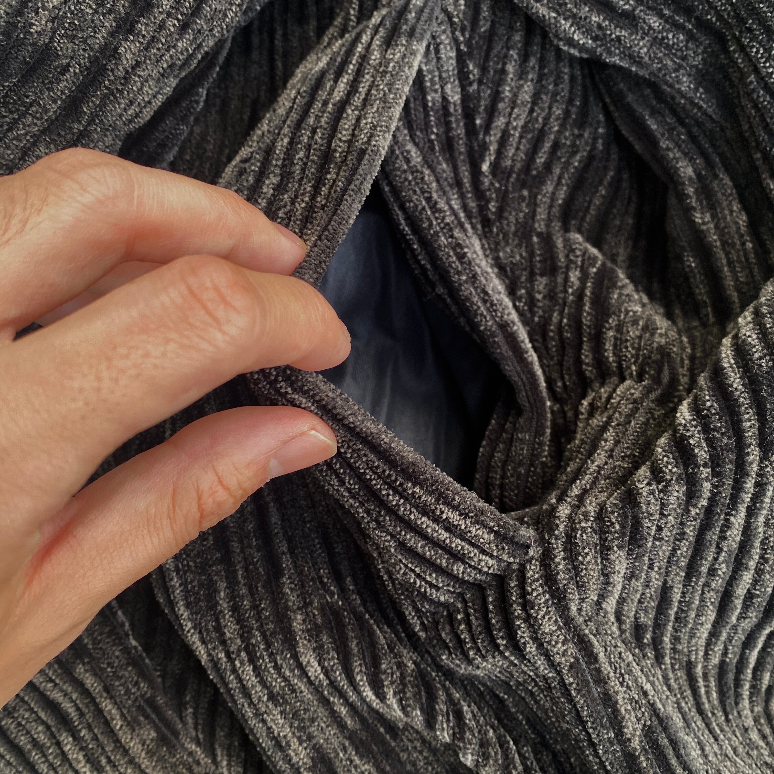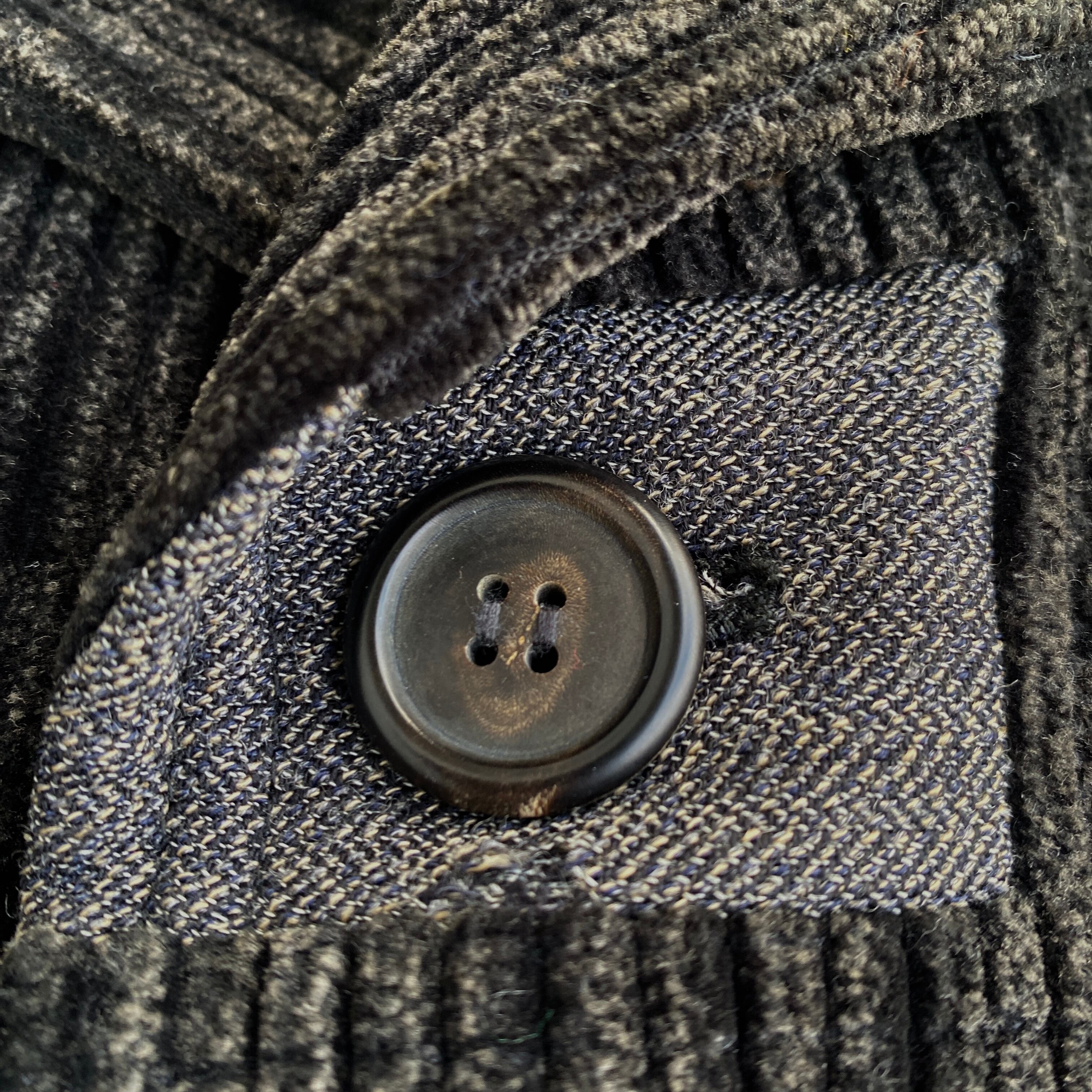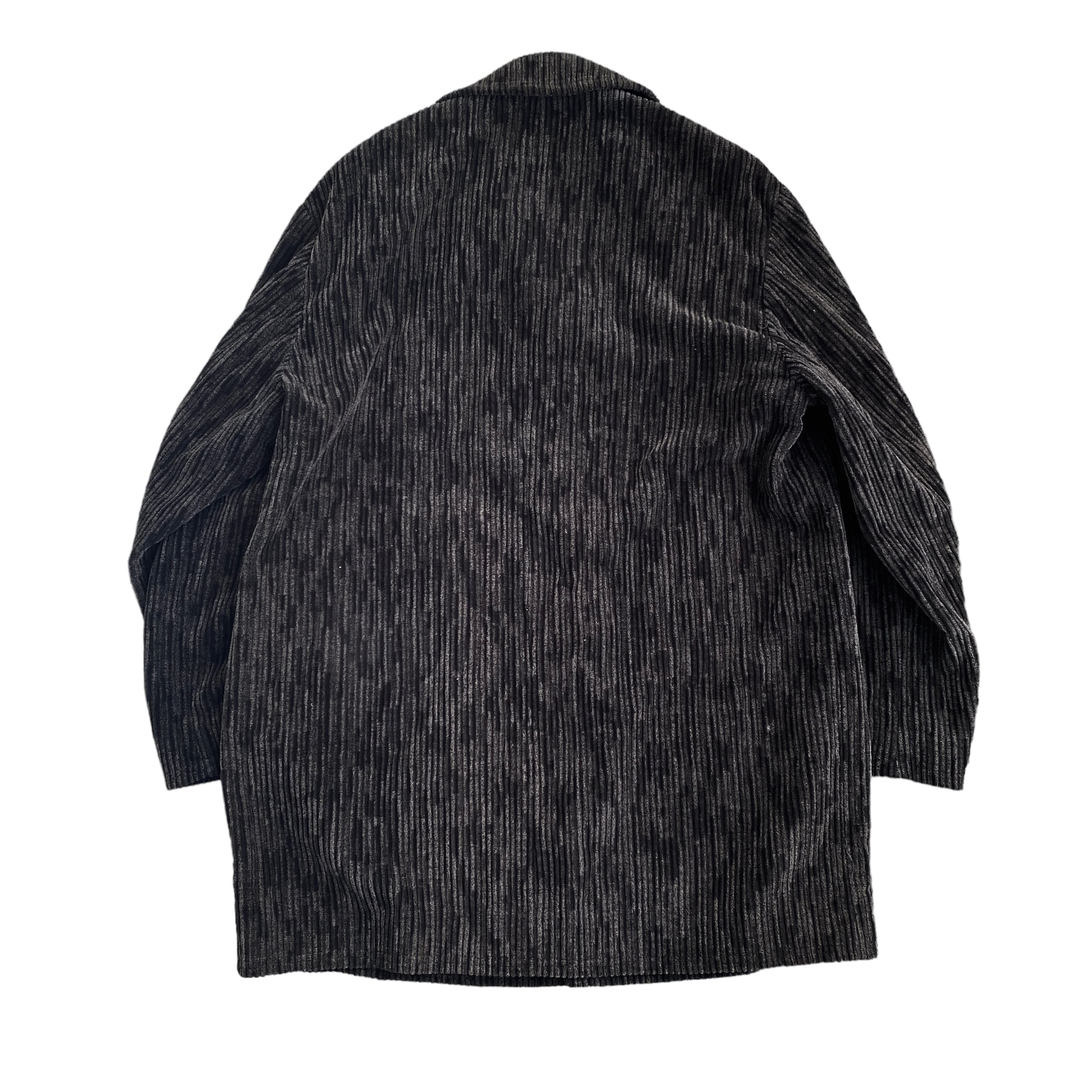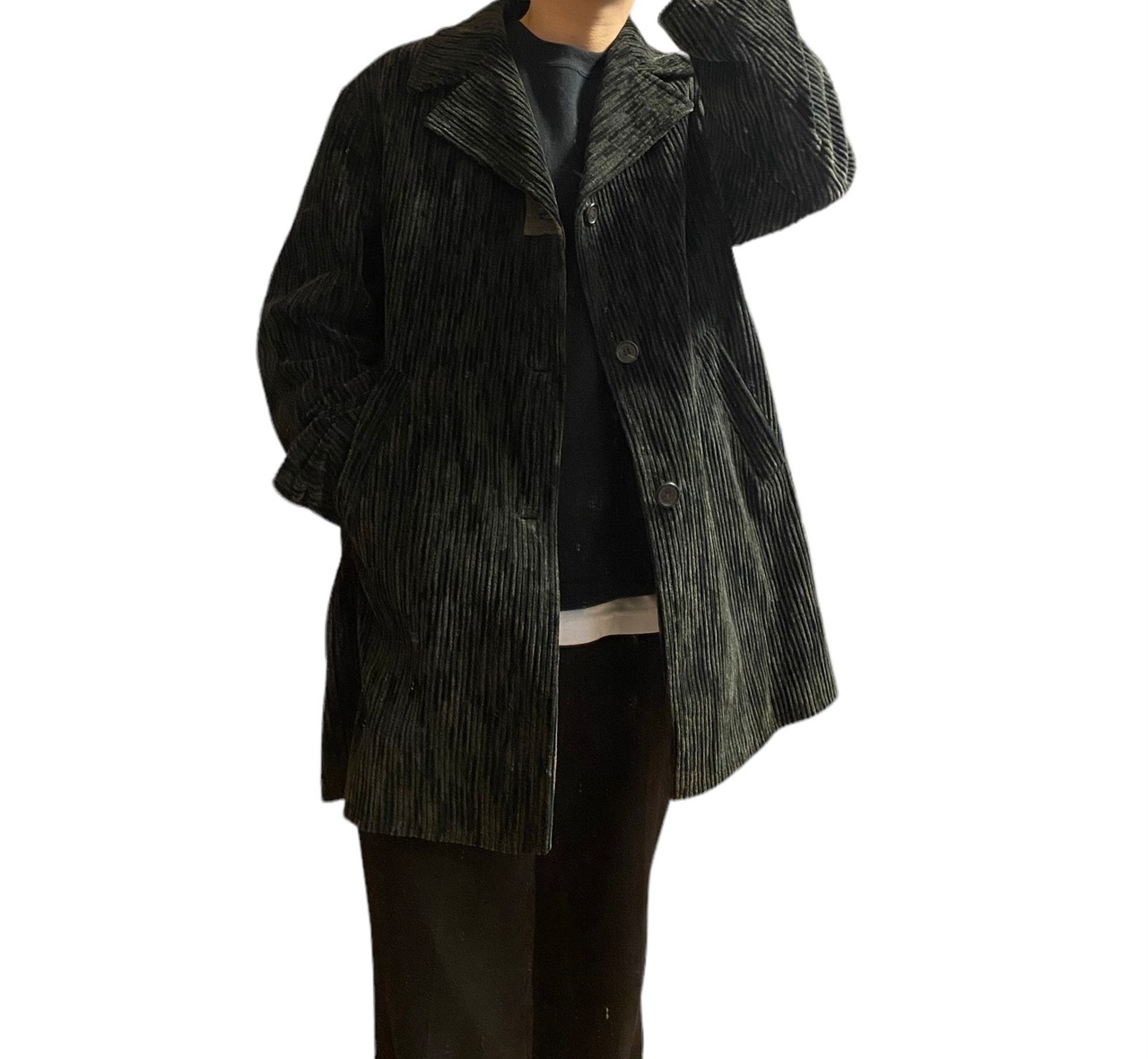 身幅広めの丸みのあるシルエットに、ブラック×ダークブラウンのマダラな色目、しっかりと肉厚なコーデュロイ生地が素晴らしい一着。