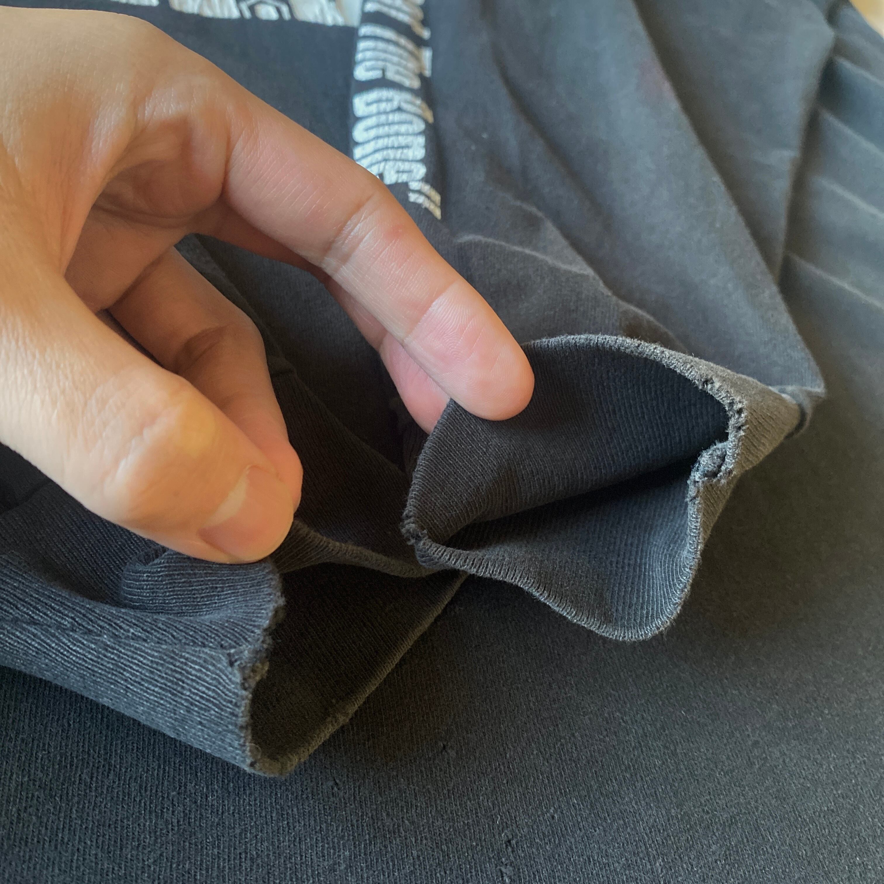 フェードしたブラックに掠れたホワイトの三面プリント。どう見たって格好良いTシャツでしょう。