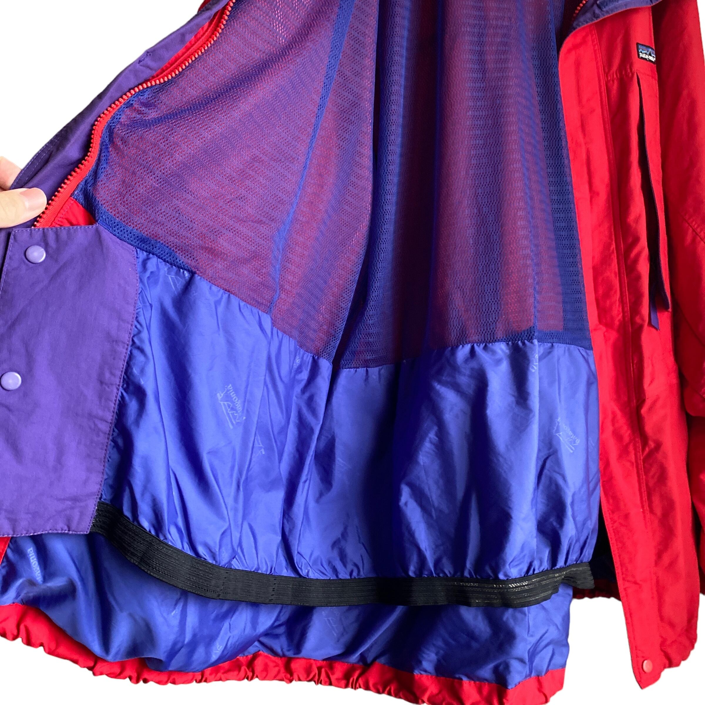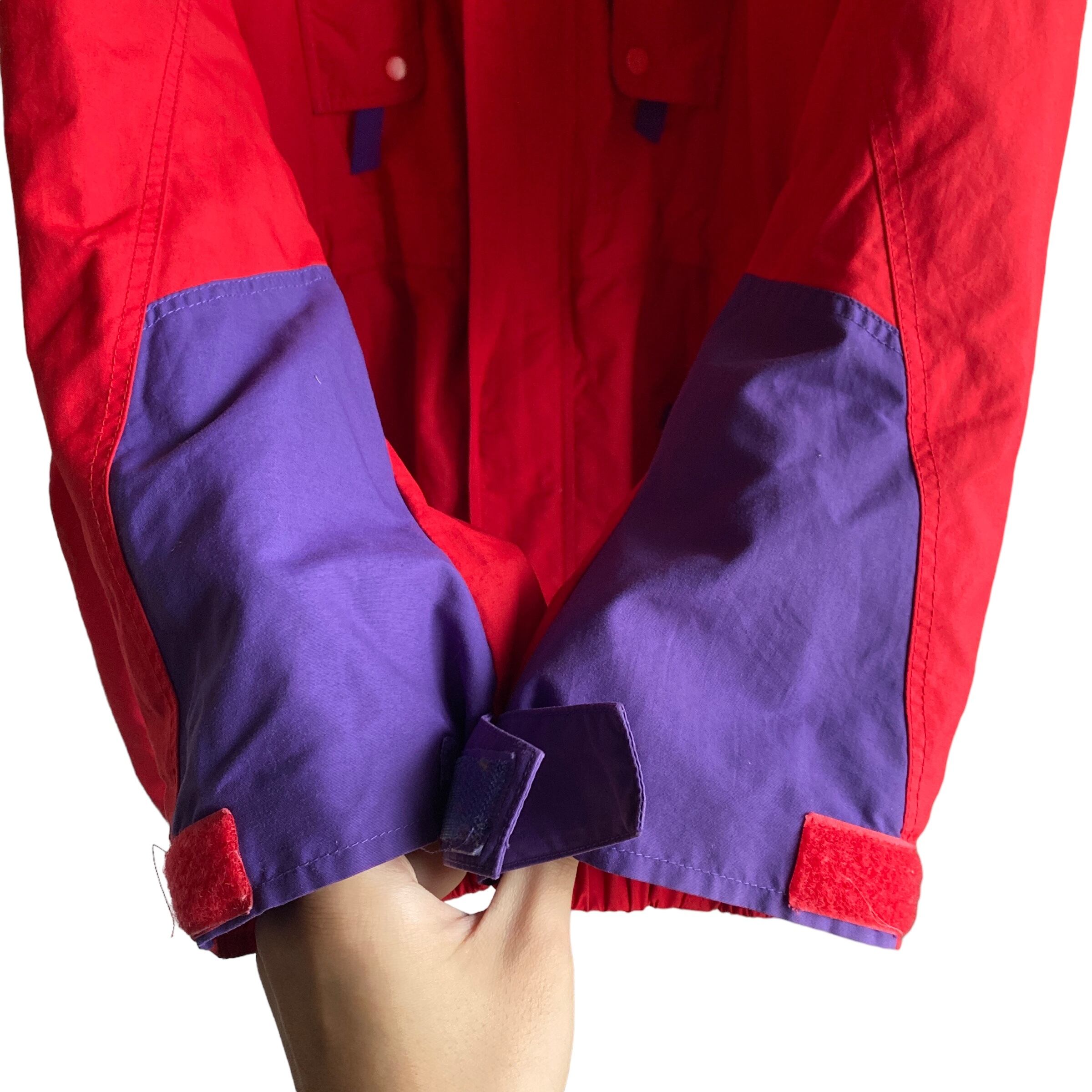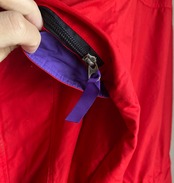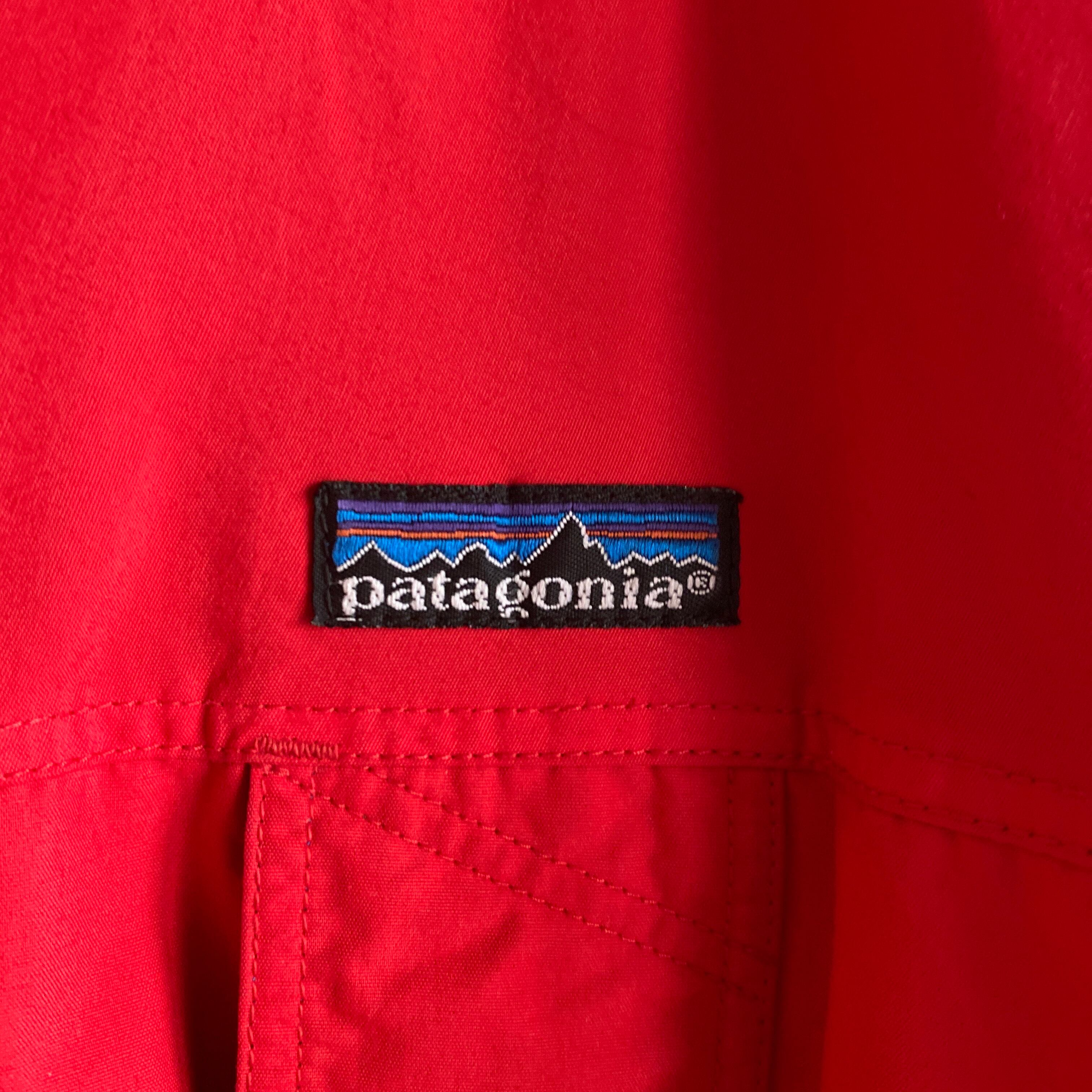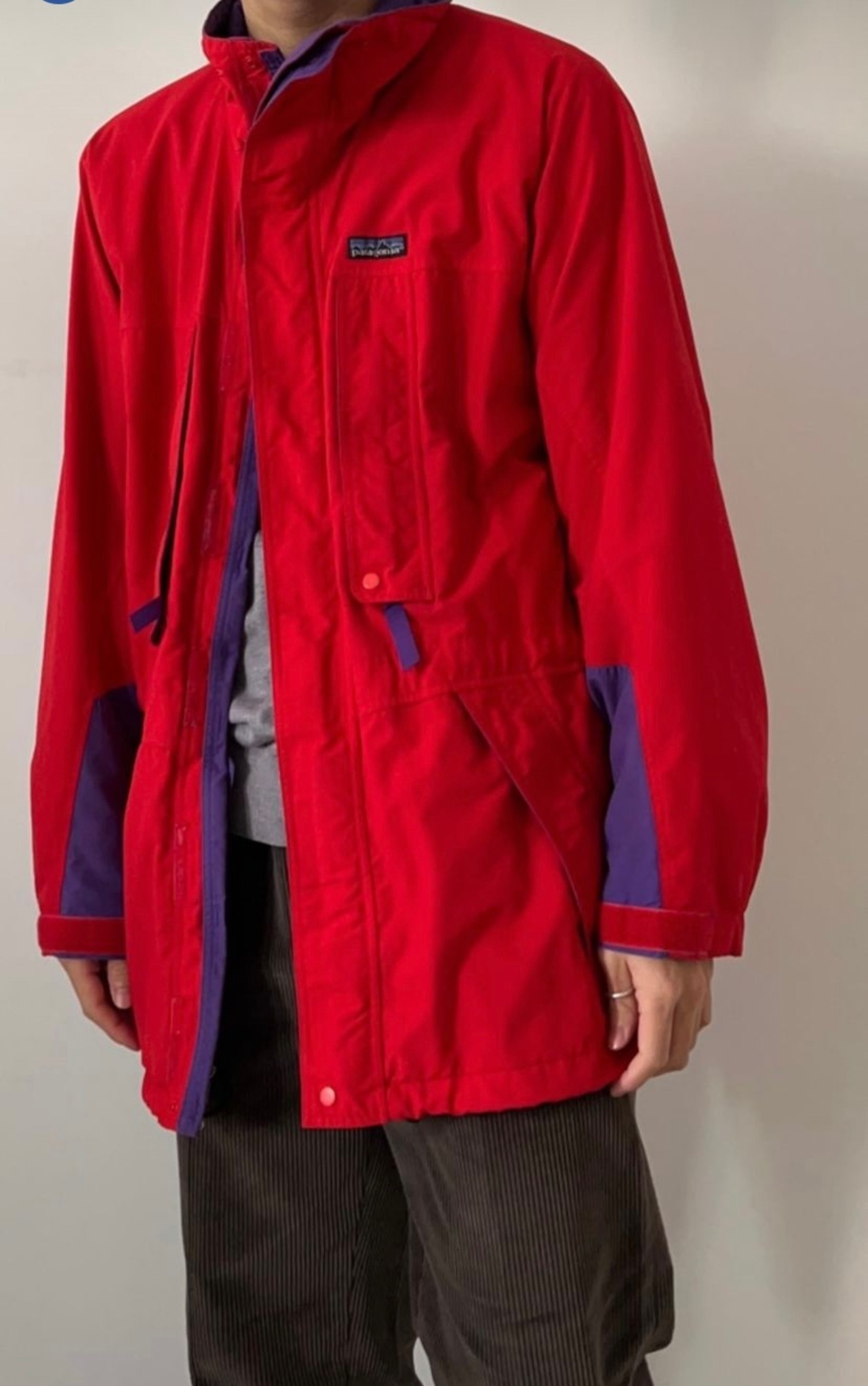 この年代のパタゴニアらしい、レッド×パープルのレトロな配色に、イナタイ雰囲気のシルエットがかわいい一着。