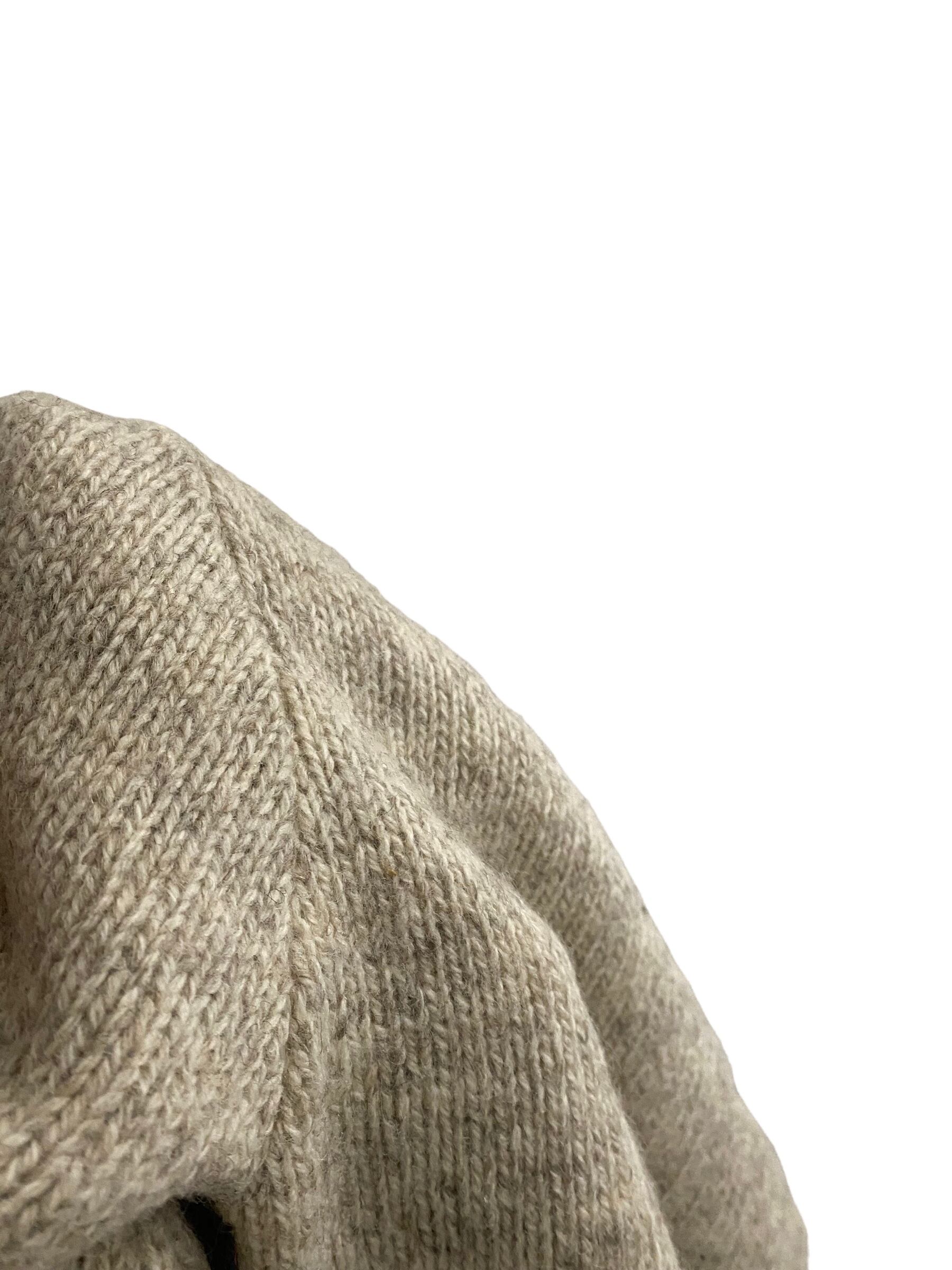 シェットランドウールのようなサクフワな質感の上質なニット地に、ナチュラル系ミックスカラー(画像7が近いです)の奥行き感のある非常に上品な雰囲気の一着です。