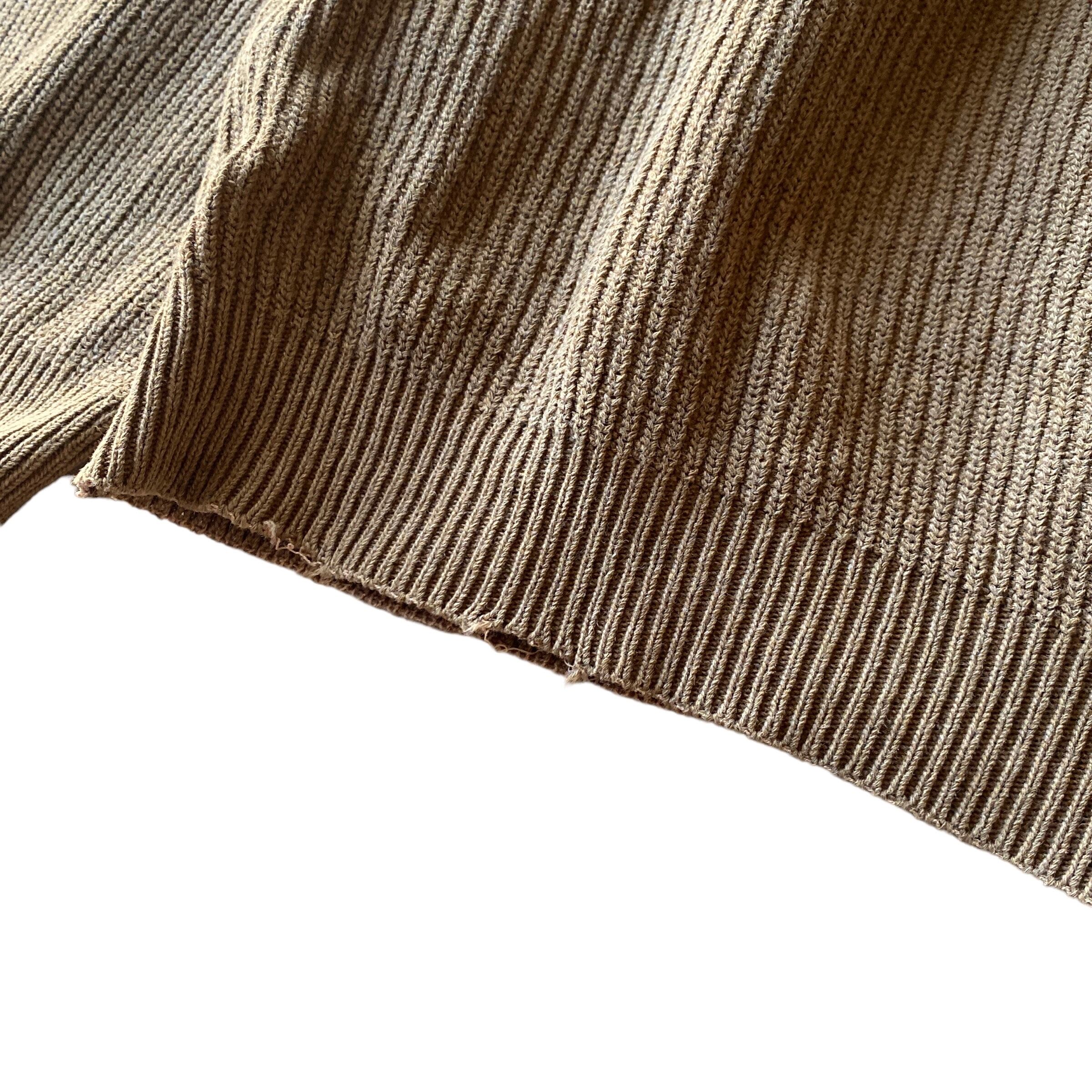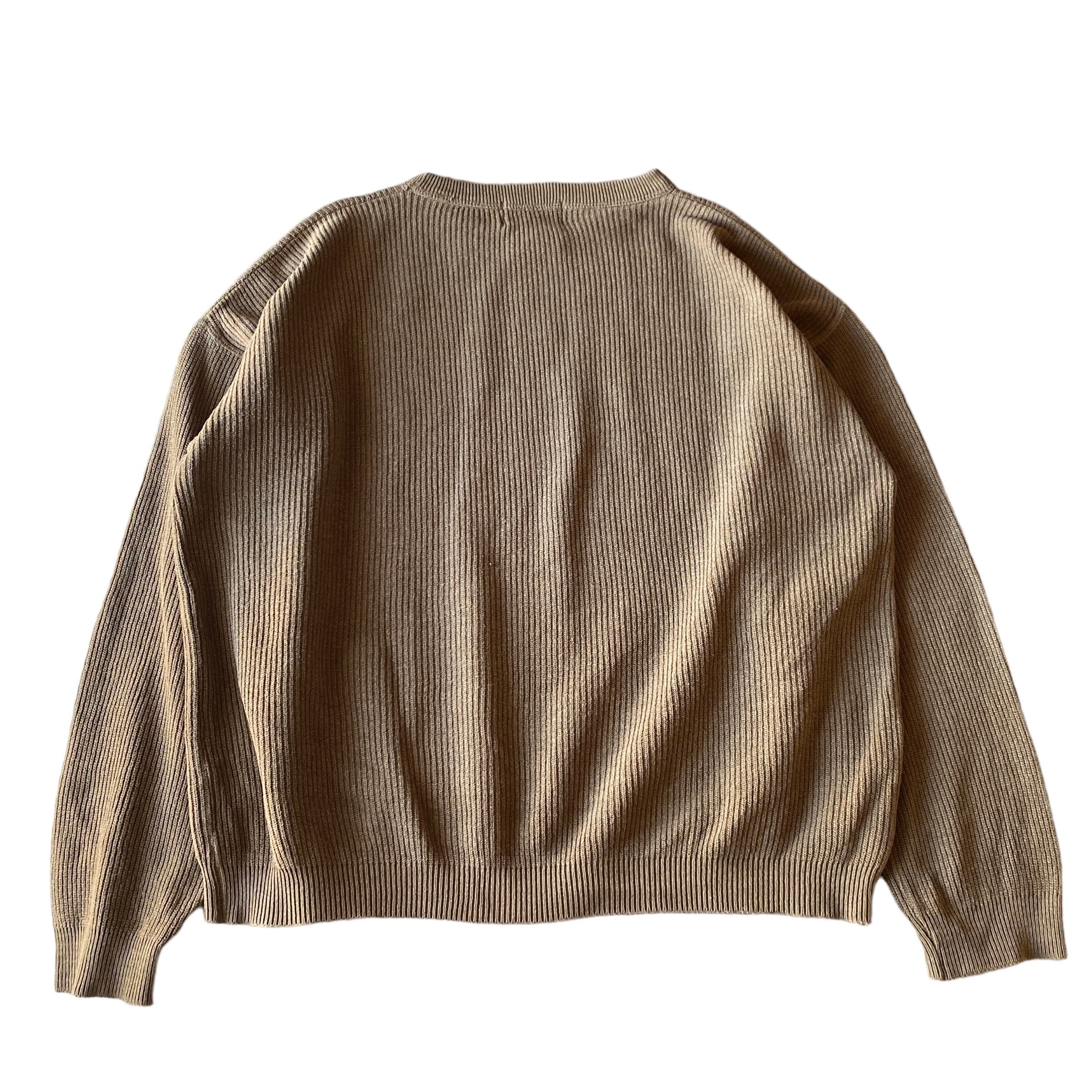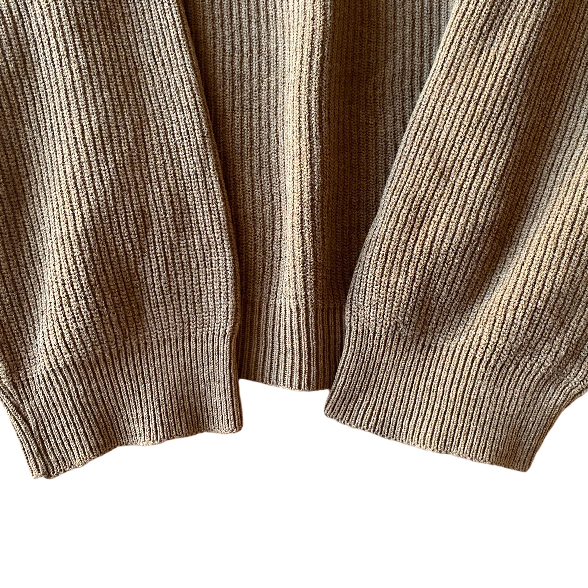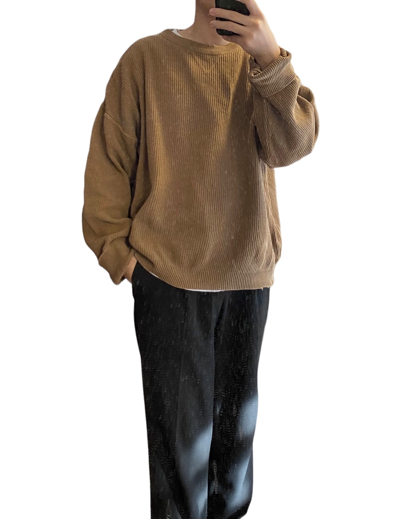 前Vのスウェット型に、肉厚でギュッと詰まったコットンニット、上品なキャラメルカラー(着画が近いです)が非常に格好良い一着。