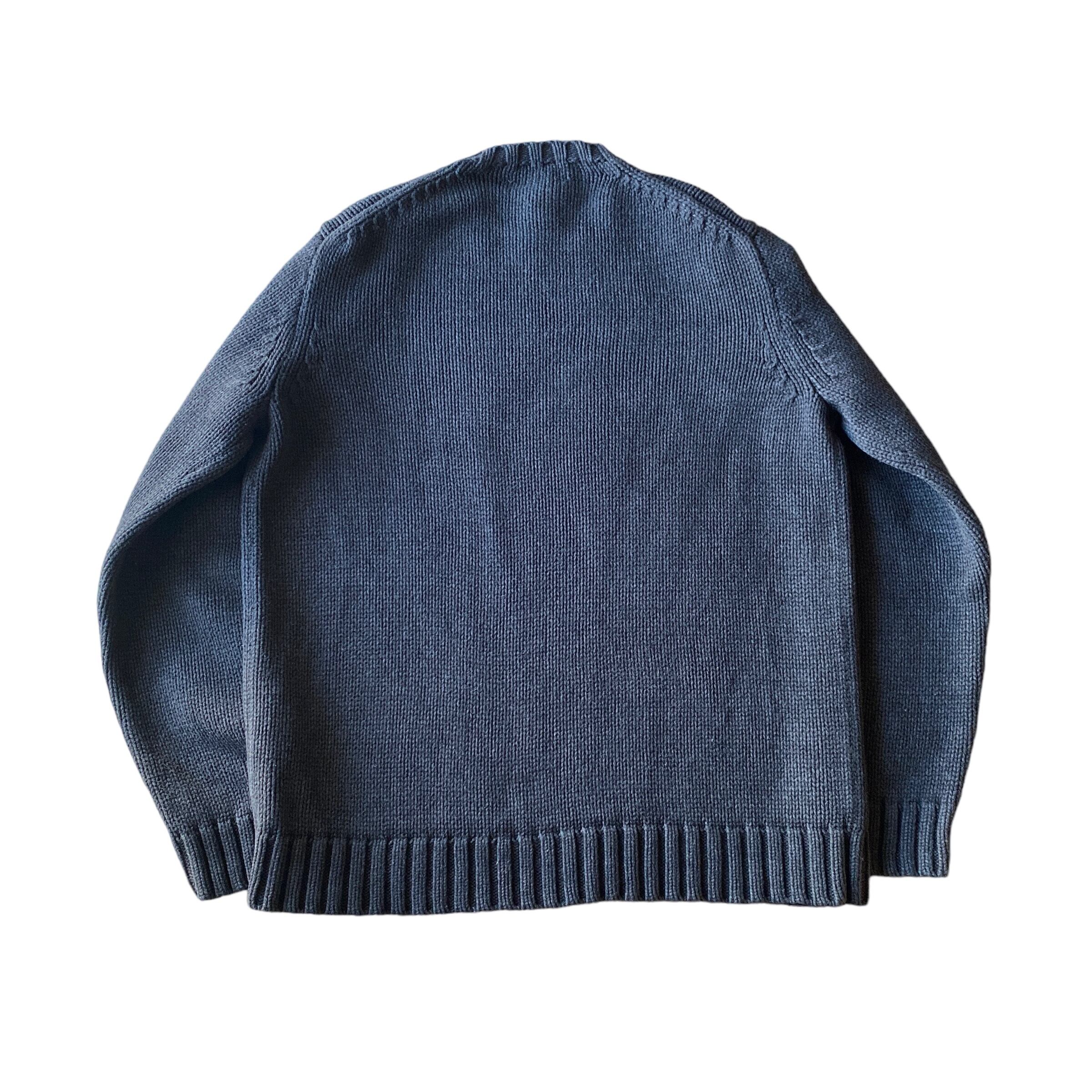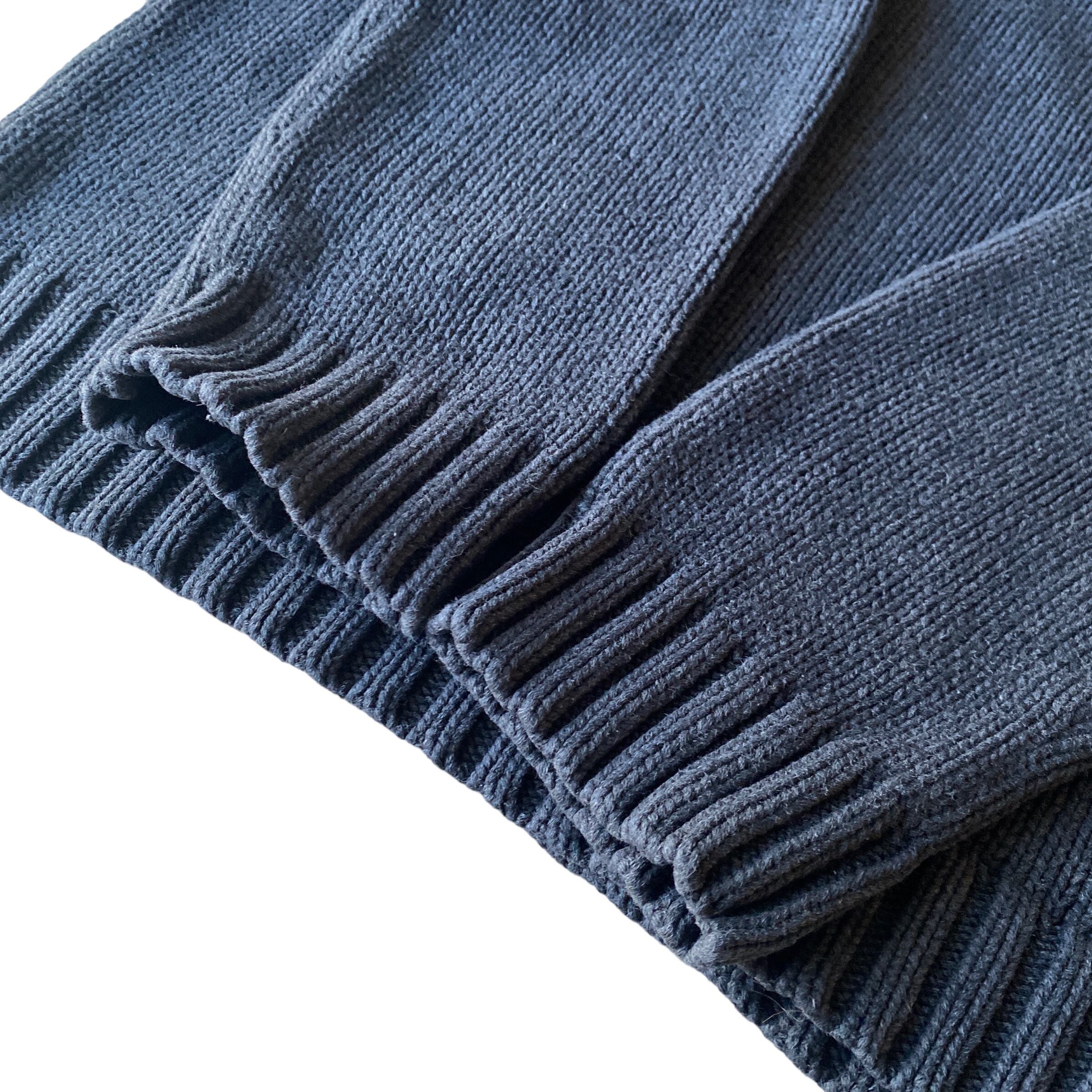 5Gぐらいの肉厚でギュッと詰まった質感の良いコットンニットに、チャコールのようなフェードしたネイビーのような絶妙な色目が非常に格好良い一着。