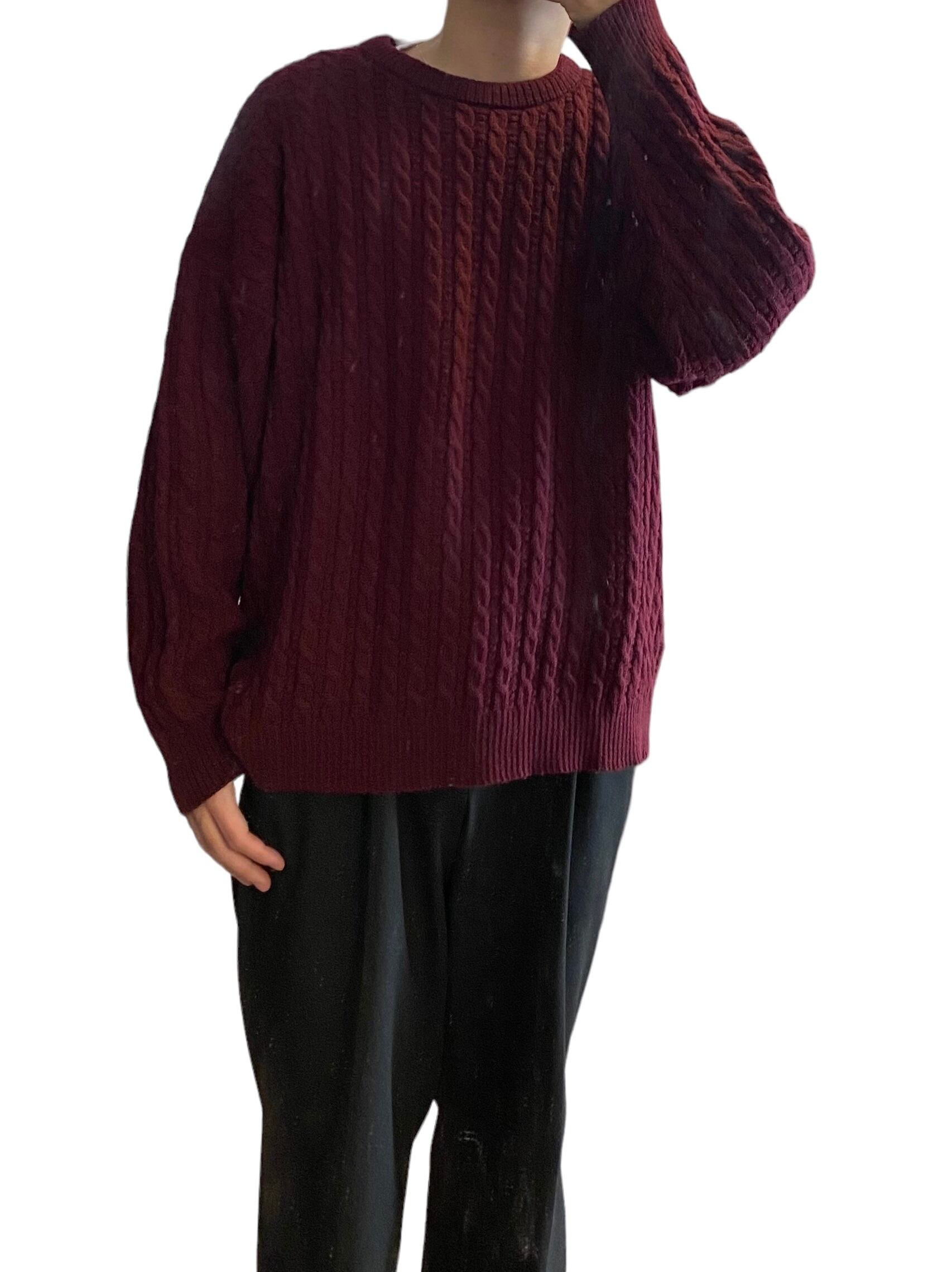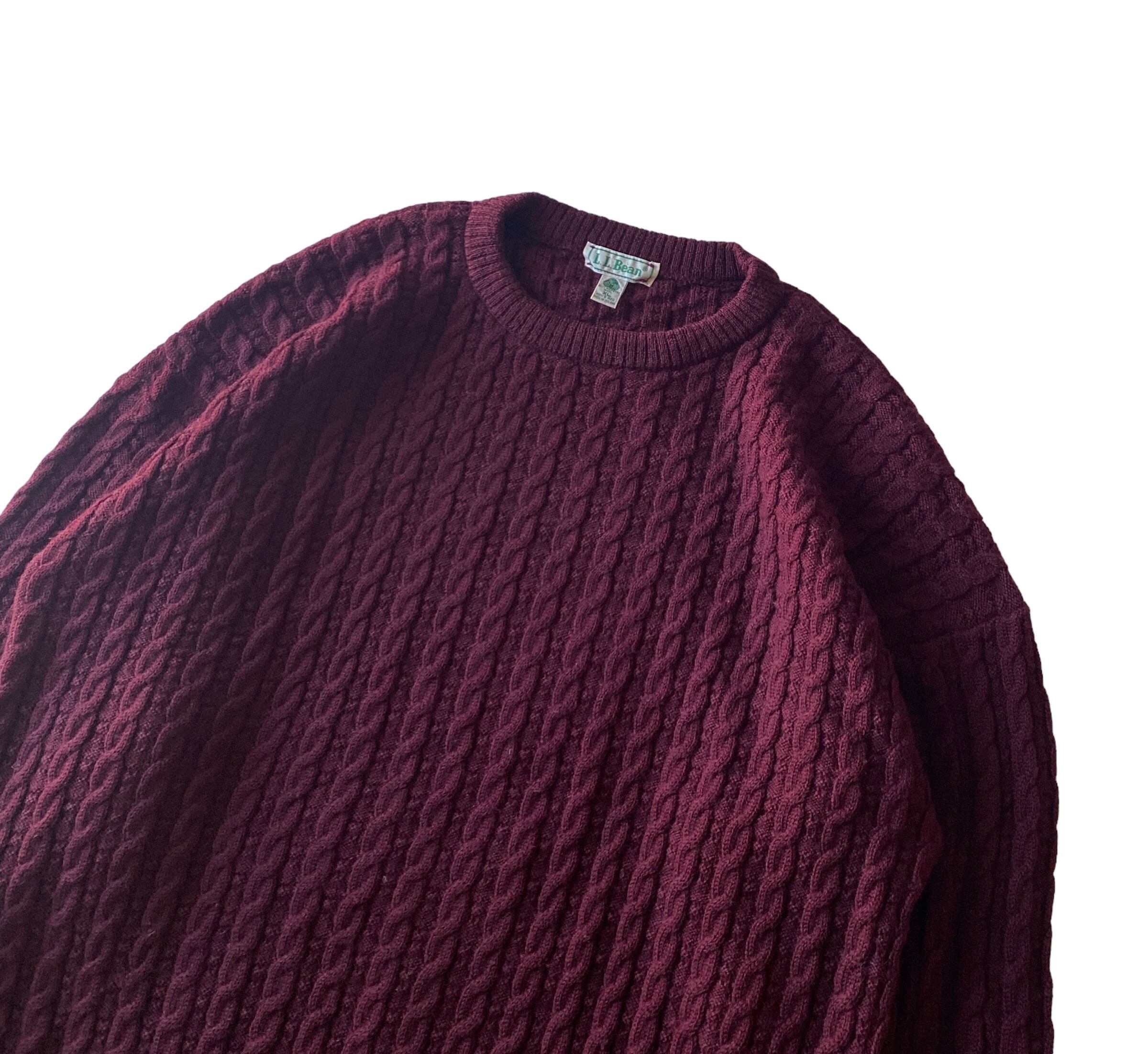 1970-80年代頃のアイルランド製エルエルビーンウーステッド(梳毛)ウールケーブル編みニットセーターになります。