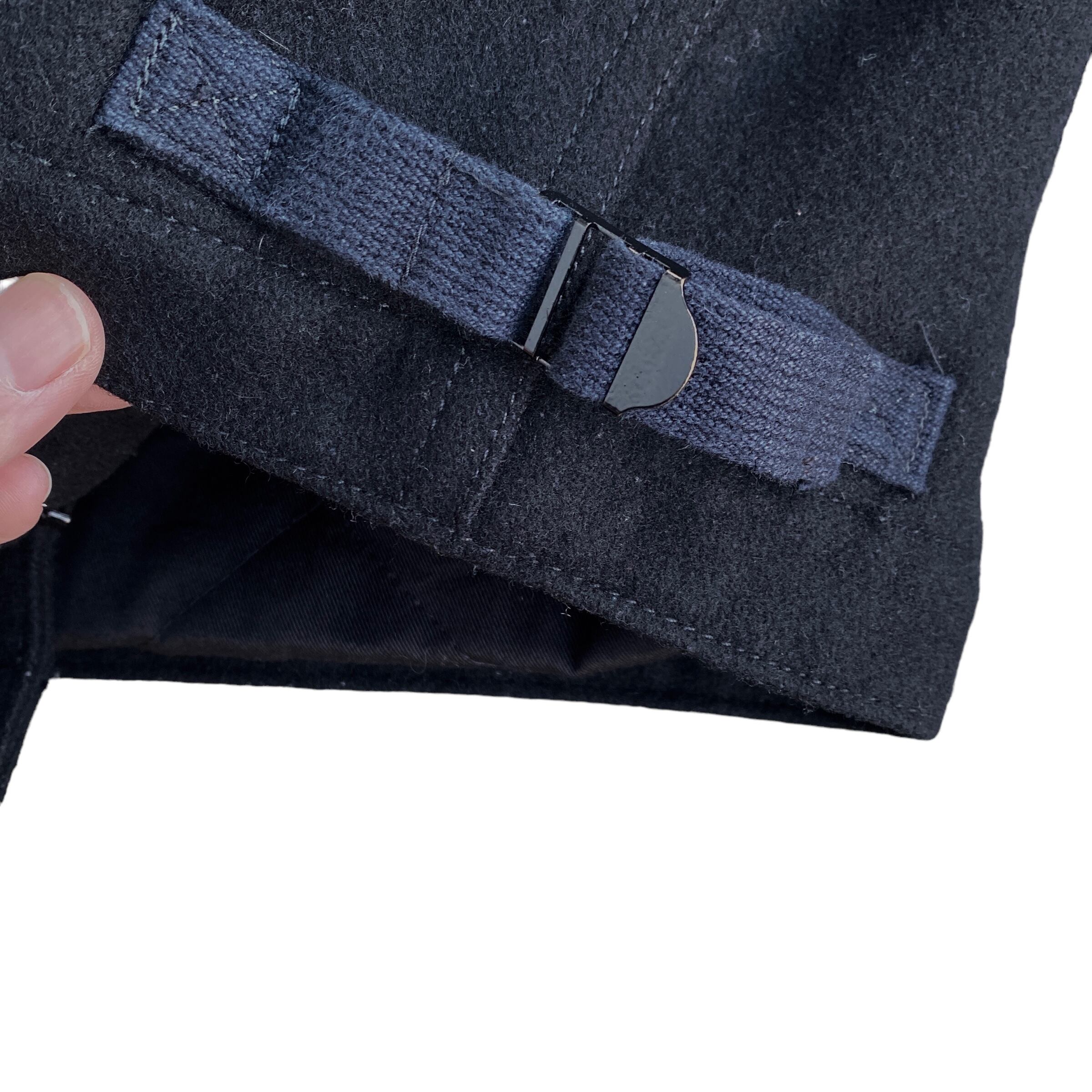 アメリカ海軍のA-2ジャケットをサンプリングし、肉厚で上質な黒のウールメルトンで仕立てた、ミニマルなデザインが非常に格好良い一着。