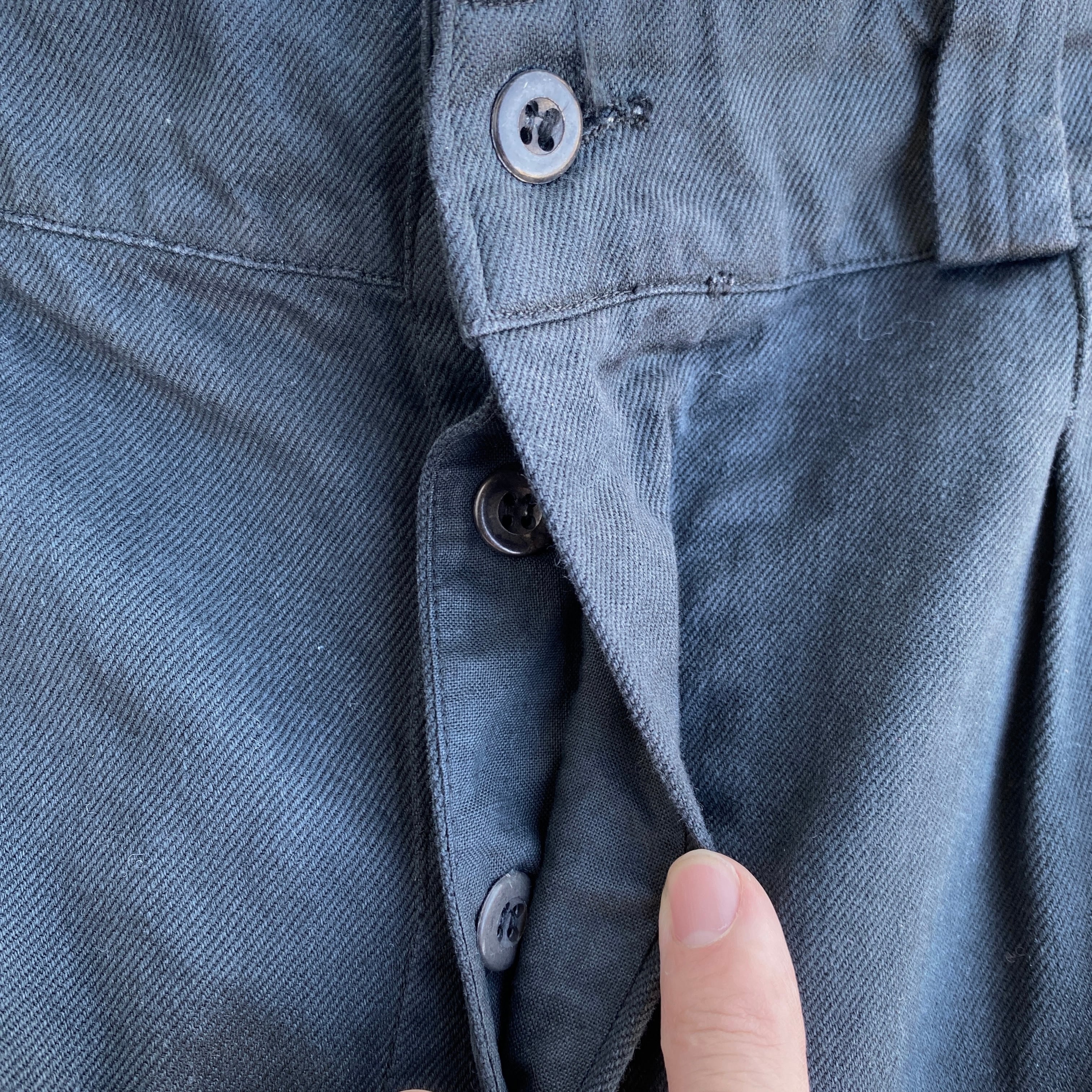 このパンツ特有の2タックのゆとりのある腰回り、深めの股上のワイドシルエットも◎。