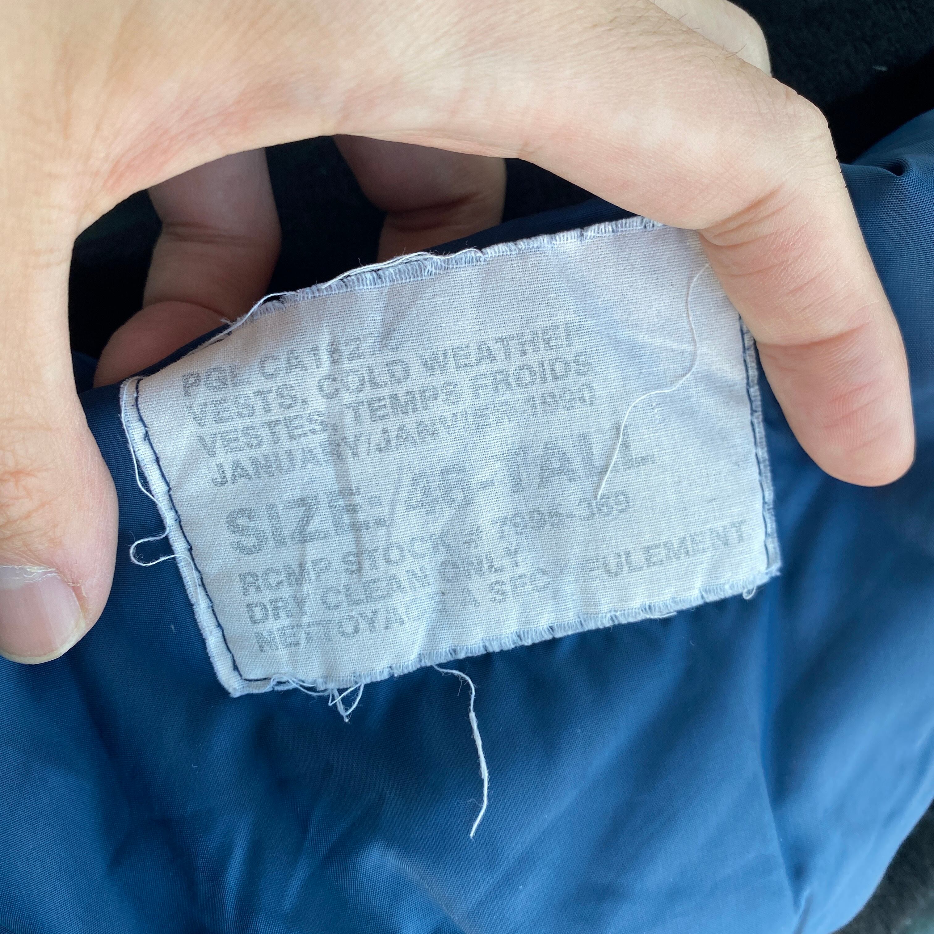 1990年会計カナダ軍のコールドウェザーベストになります。(調べても出てこなかったので詳細不明ですが、コールドウェザーなので寒冷地用、色味的にロイヤルエアフォースではないかと思われます。)