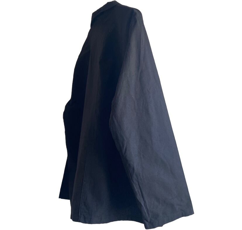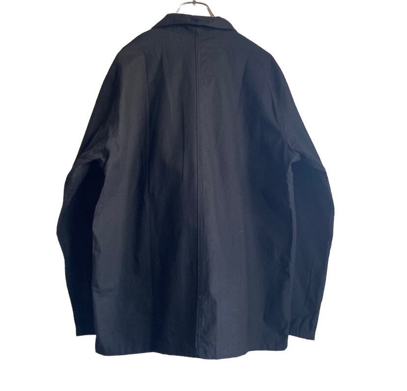 ライトなコットンツイルにブラックカラー、身幅広めのボックスシルエットと、非常に着やすいお品ですので、一枚あるとかなり重宝します。