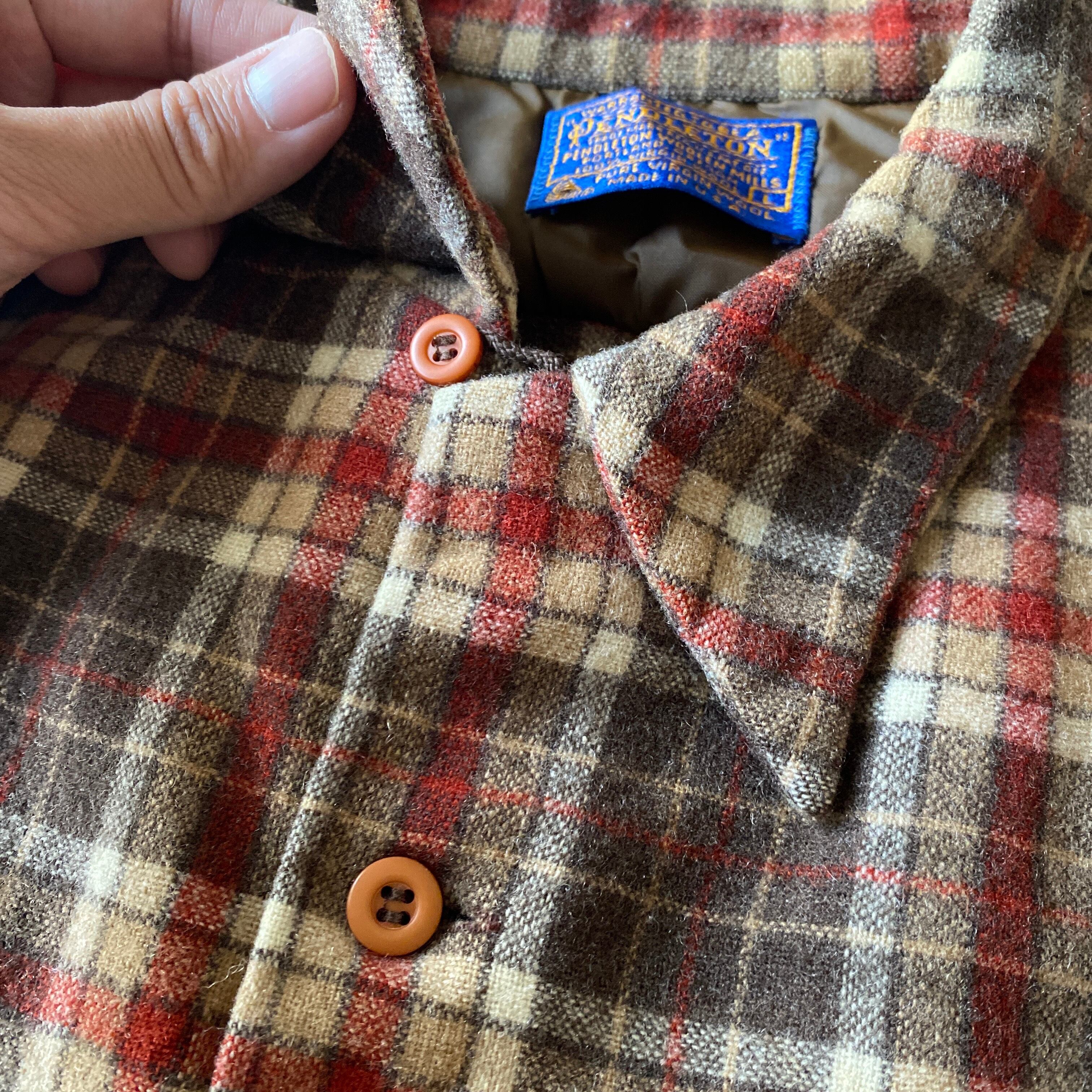 ブラウン系をベースとした上品なチェックのカラーリングに、ペンドルトンらしいサクッとしたウールの質感が素晴らしい一着。