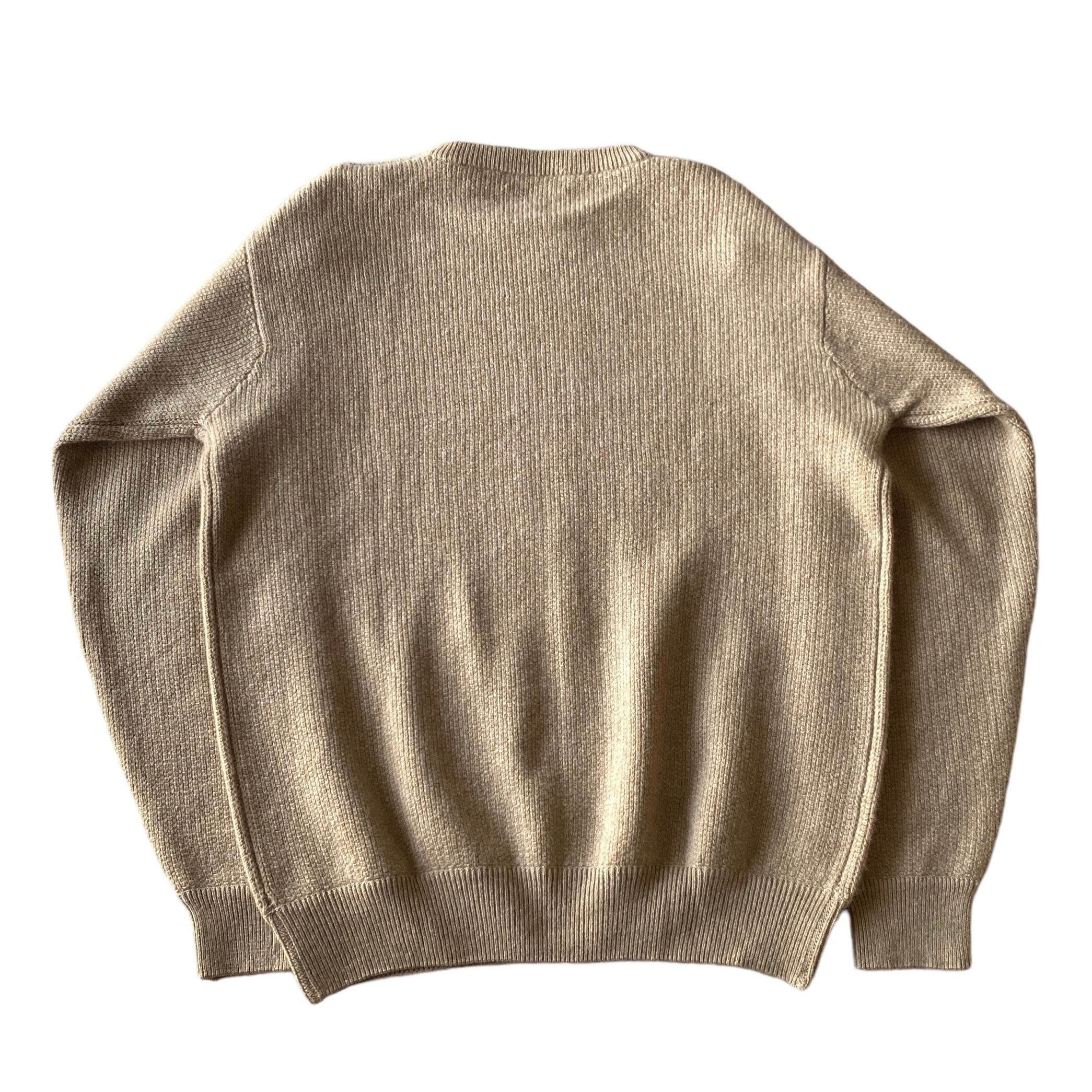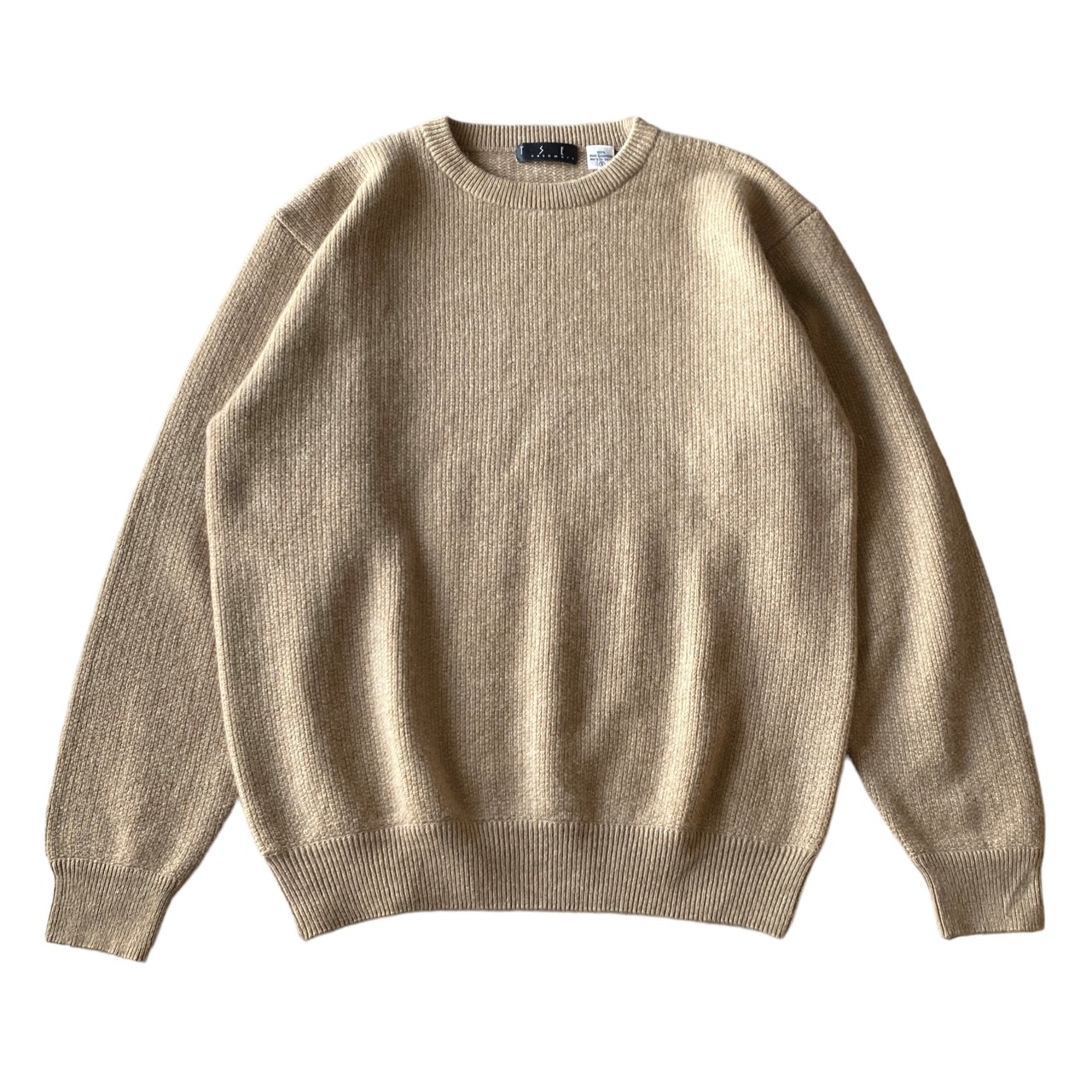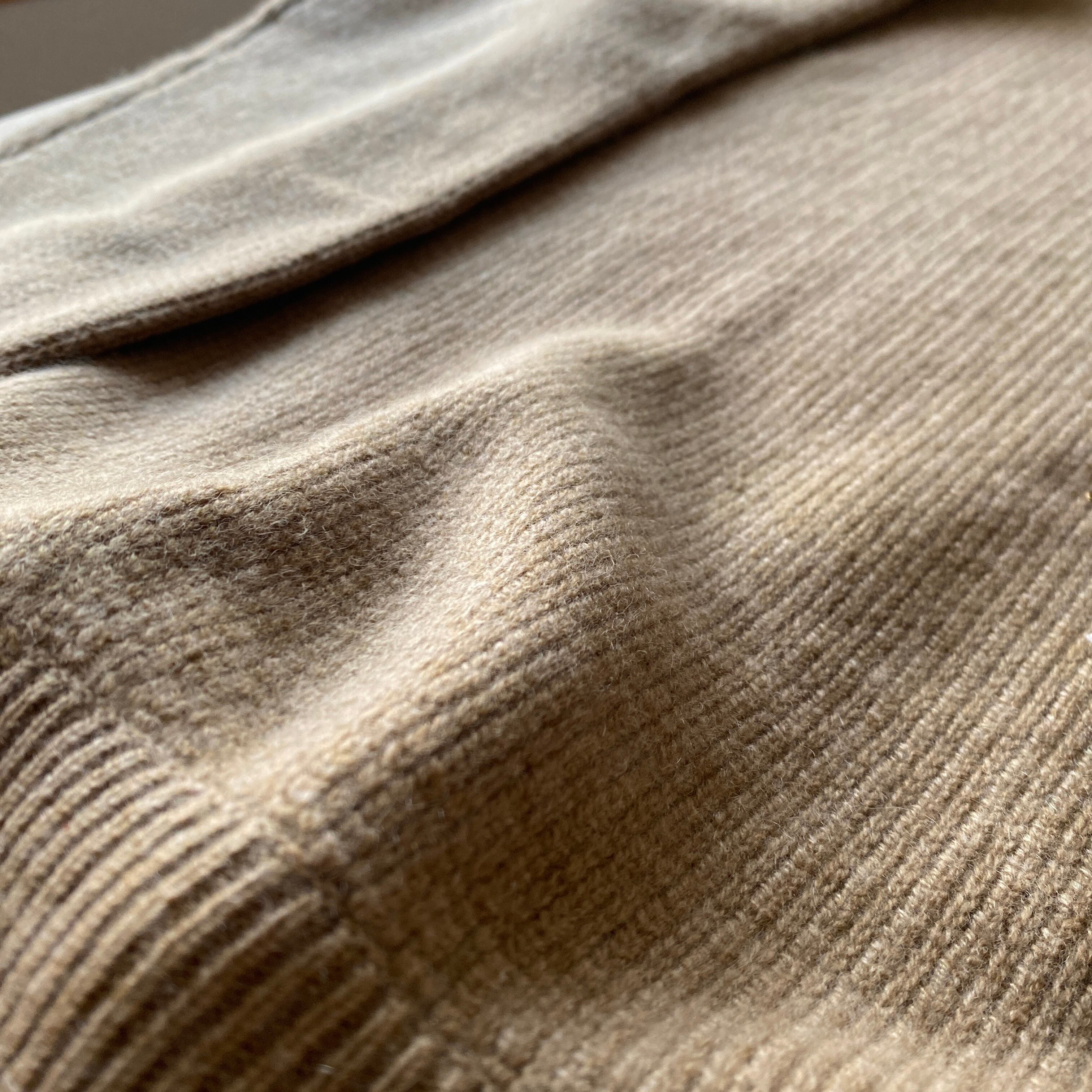 肉厚でギュッと詰まったミドルゲージの上質なカシミヤニットに、上品で柔らかいベージュの色目、アメリカ物らしい丸みのあるゆったりとしたシルエットが素晴らしい一着。