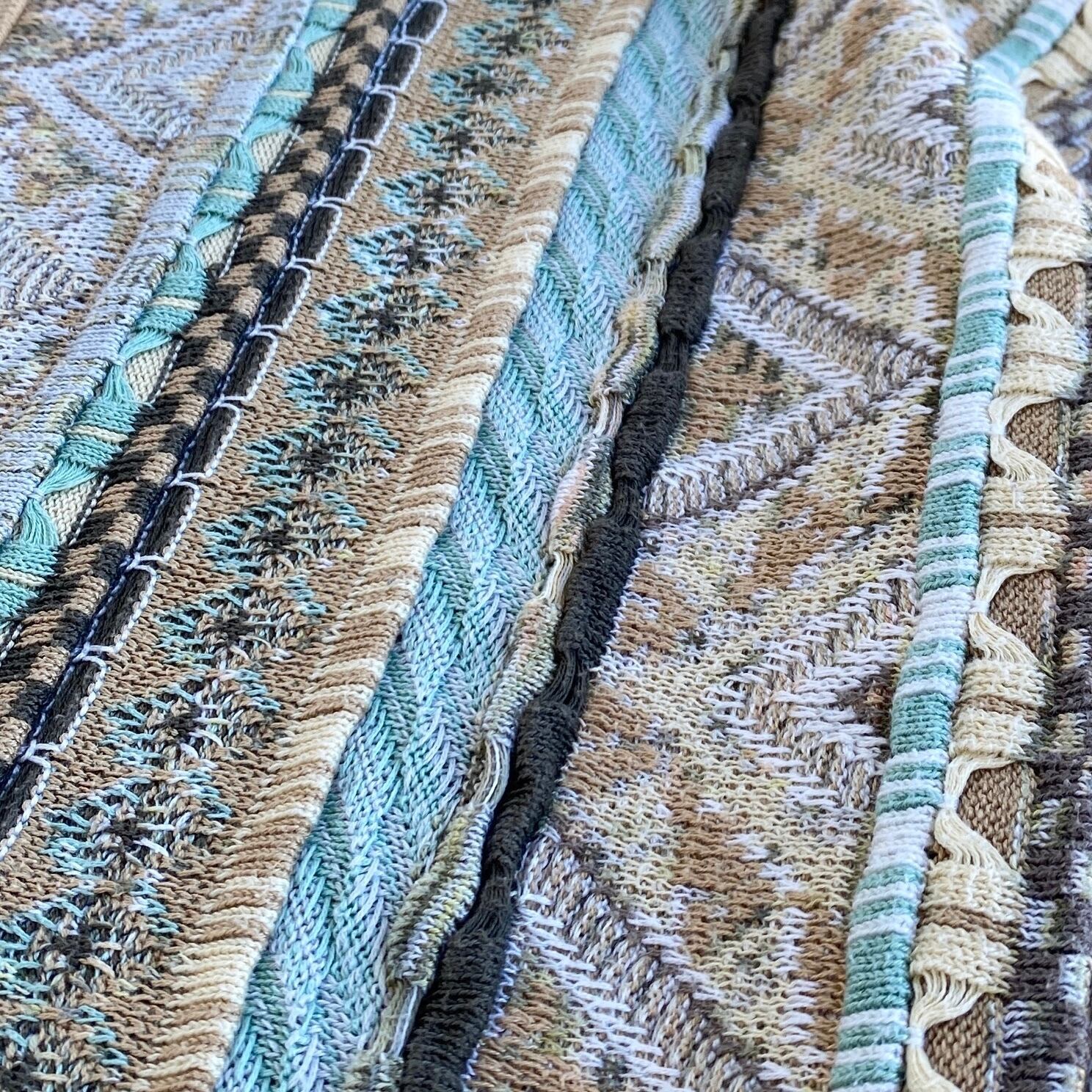 デザイン的にはいわゆる「クレイジーパターン」系ですが、こちらはベージュ系をベースにミントグリーンやブラウンを使った淡めで品のある配色が非常に珍しいですし、とても格好良いです。