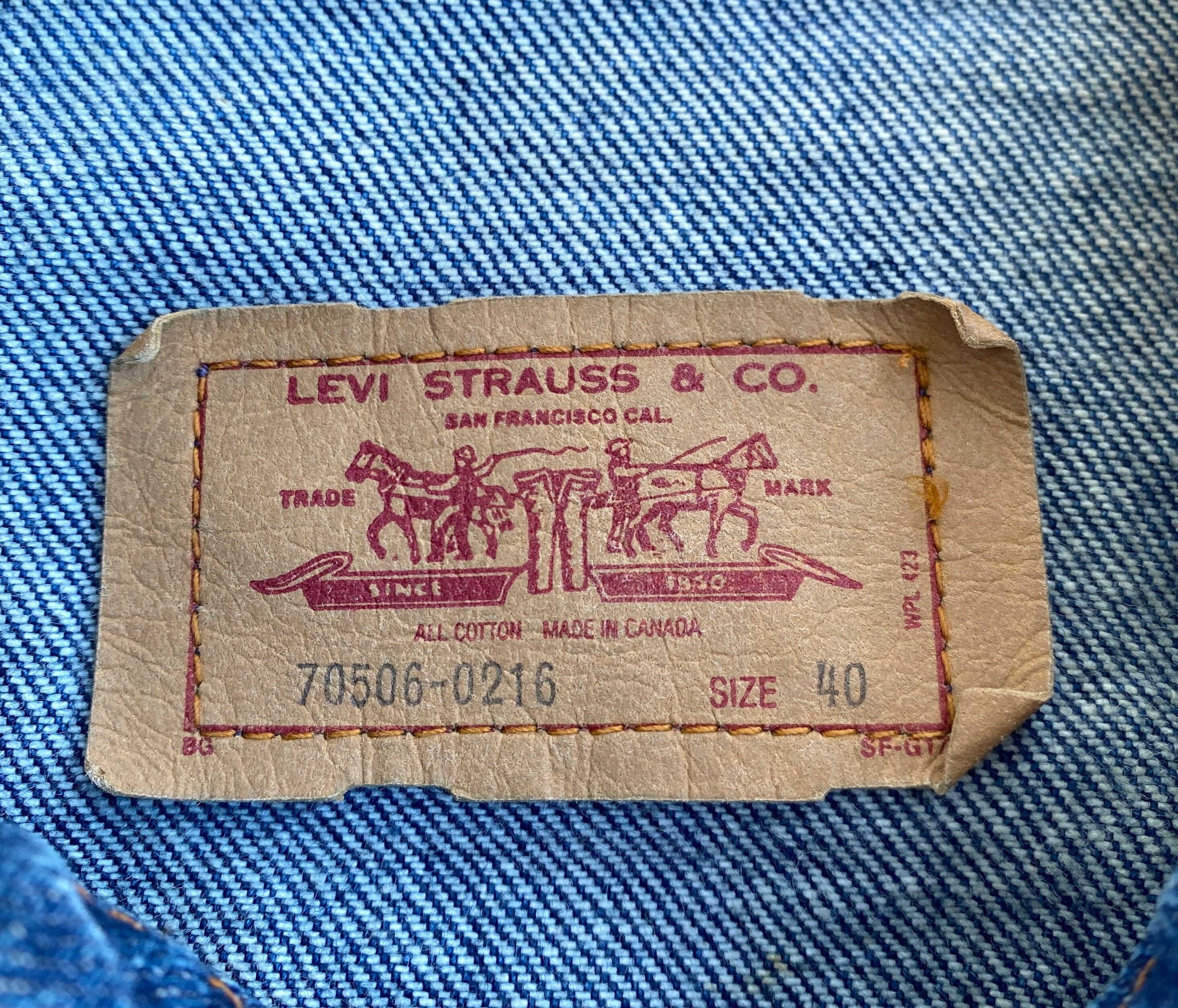 1980年代頃のカナダ製リーバイス70506-0216デニムトラッカージャケットになります。(Care〜の入らないパッチなので80年代)
