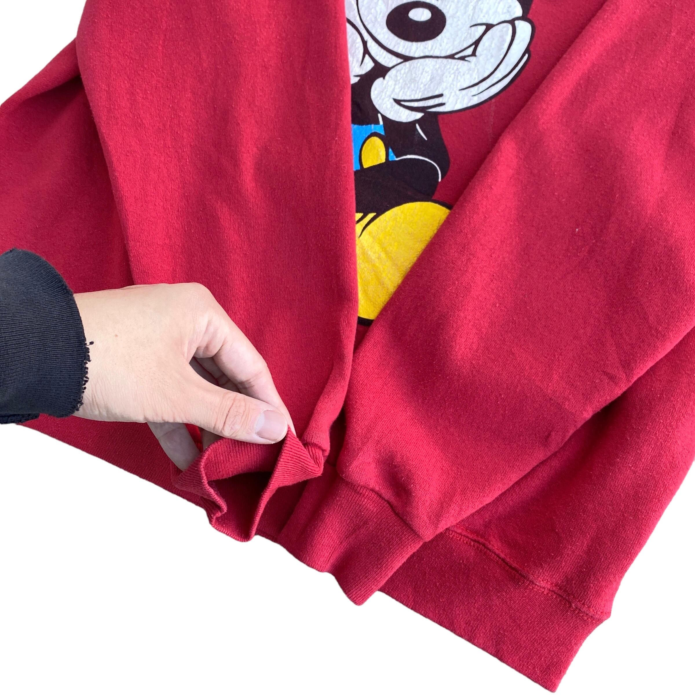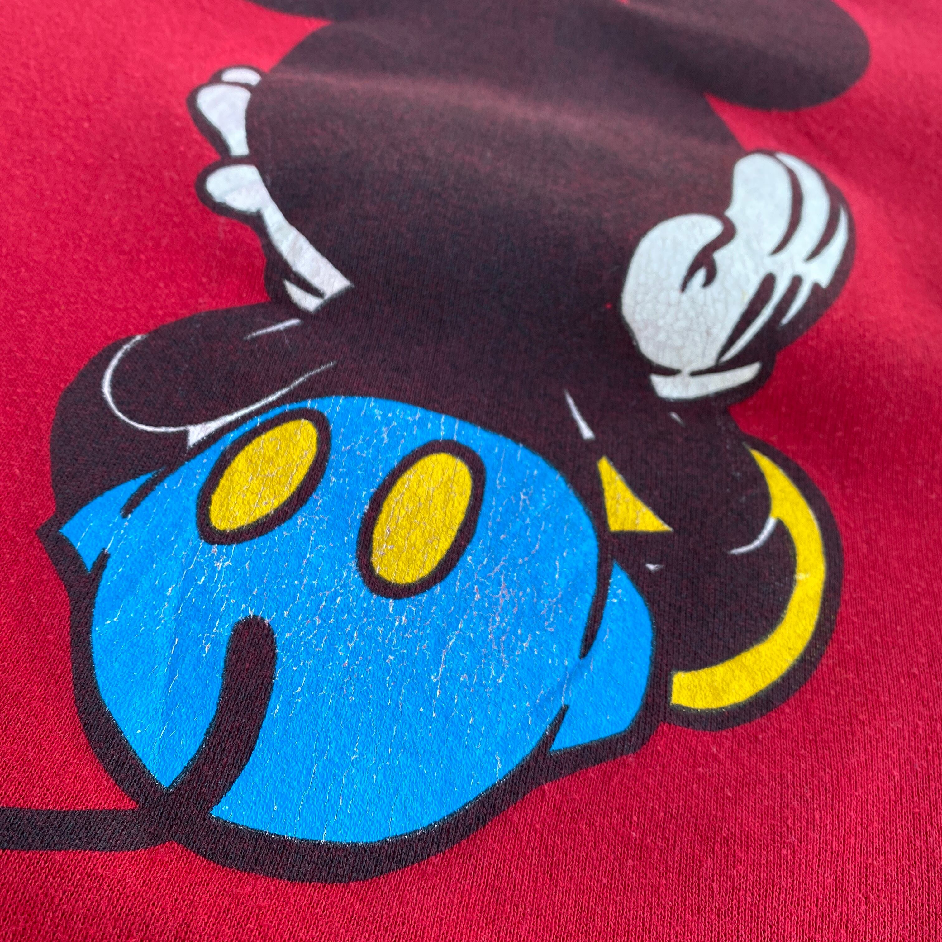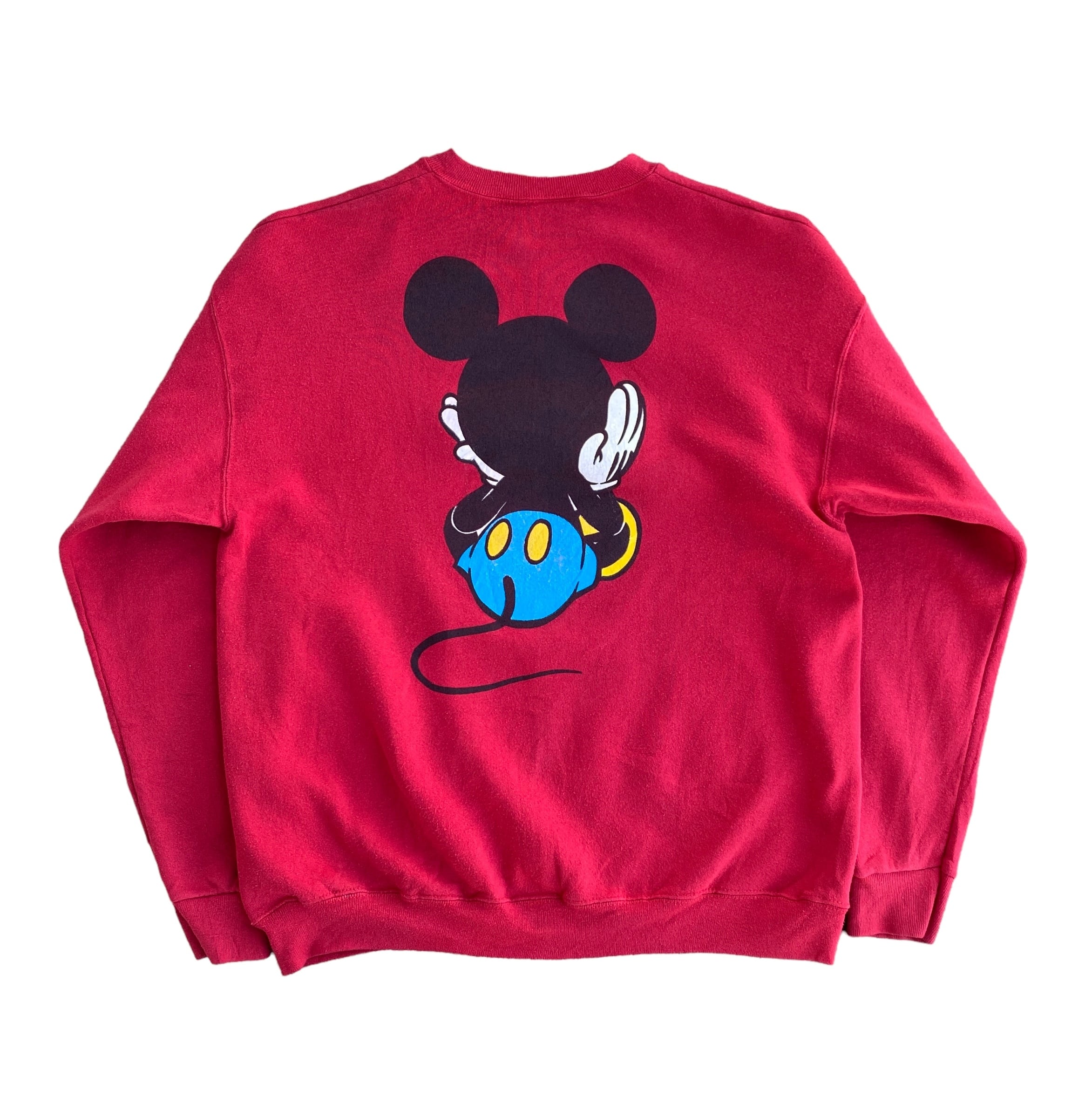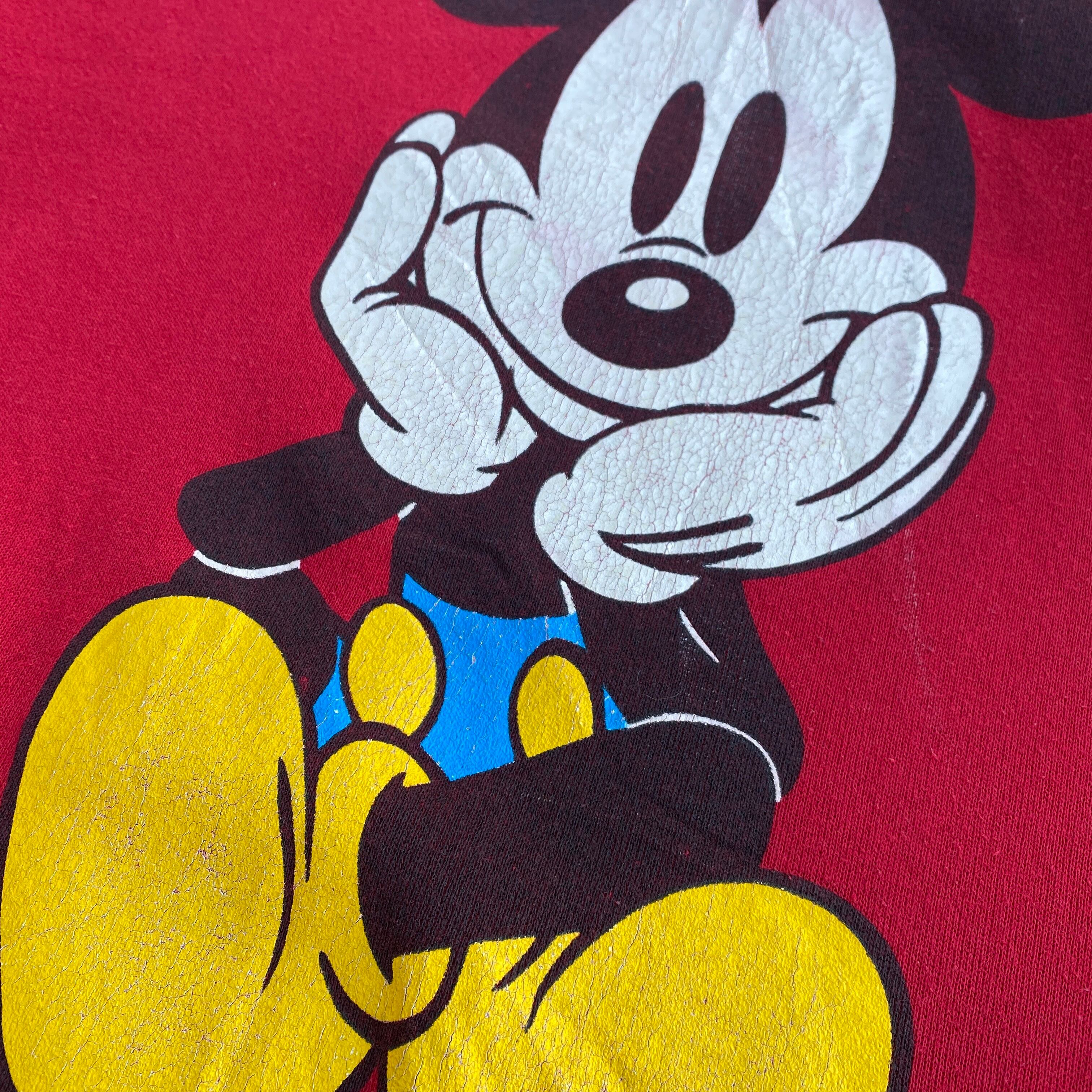 〜90年代ミッキーマウススウェットトレーナーになります。(タグが欠損していますが、おそらくmickey&co.タグのUSA製)