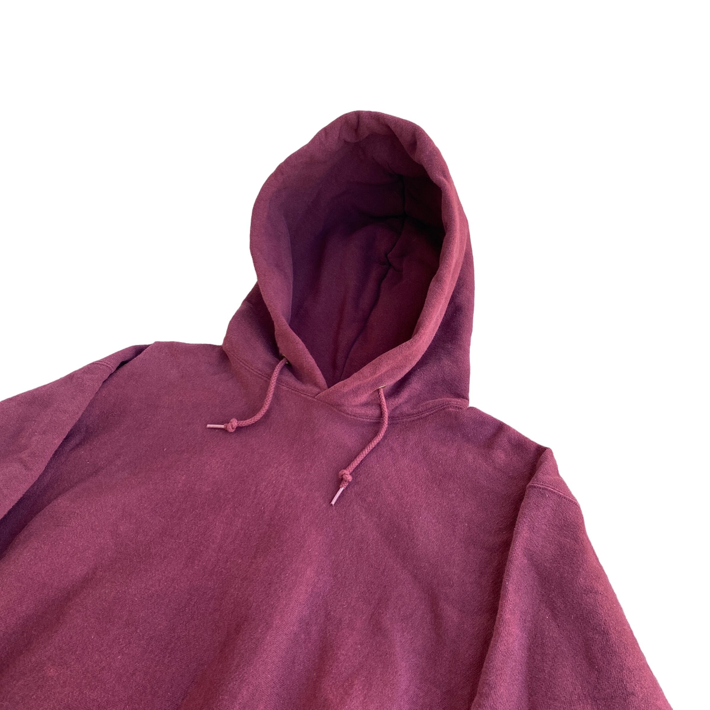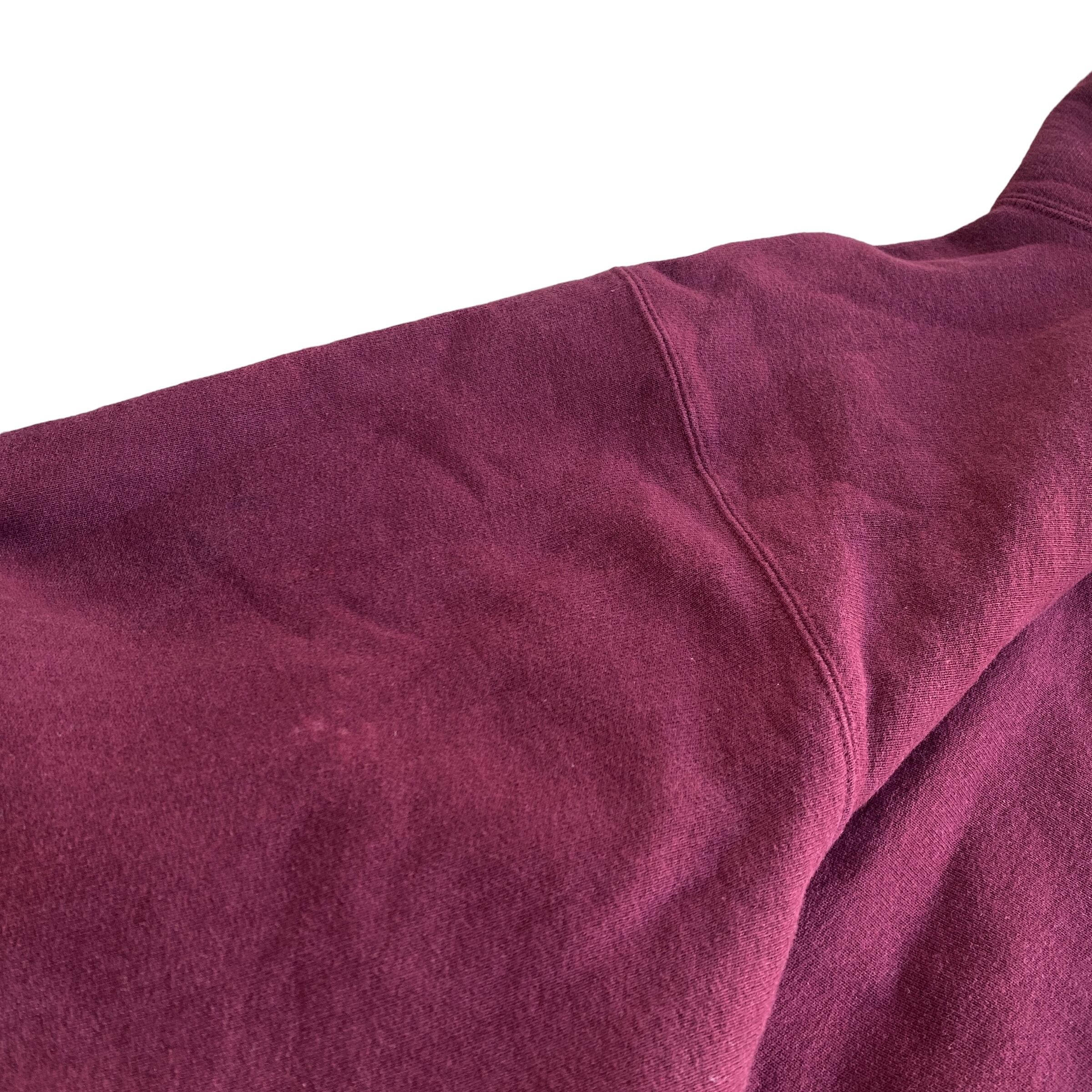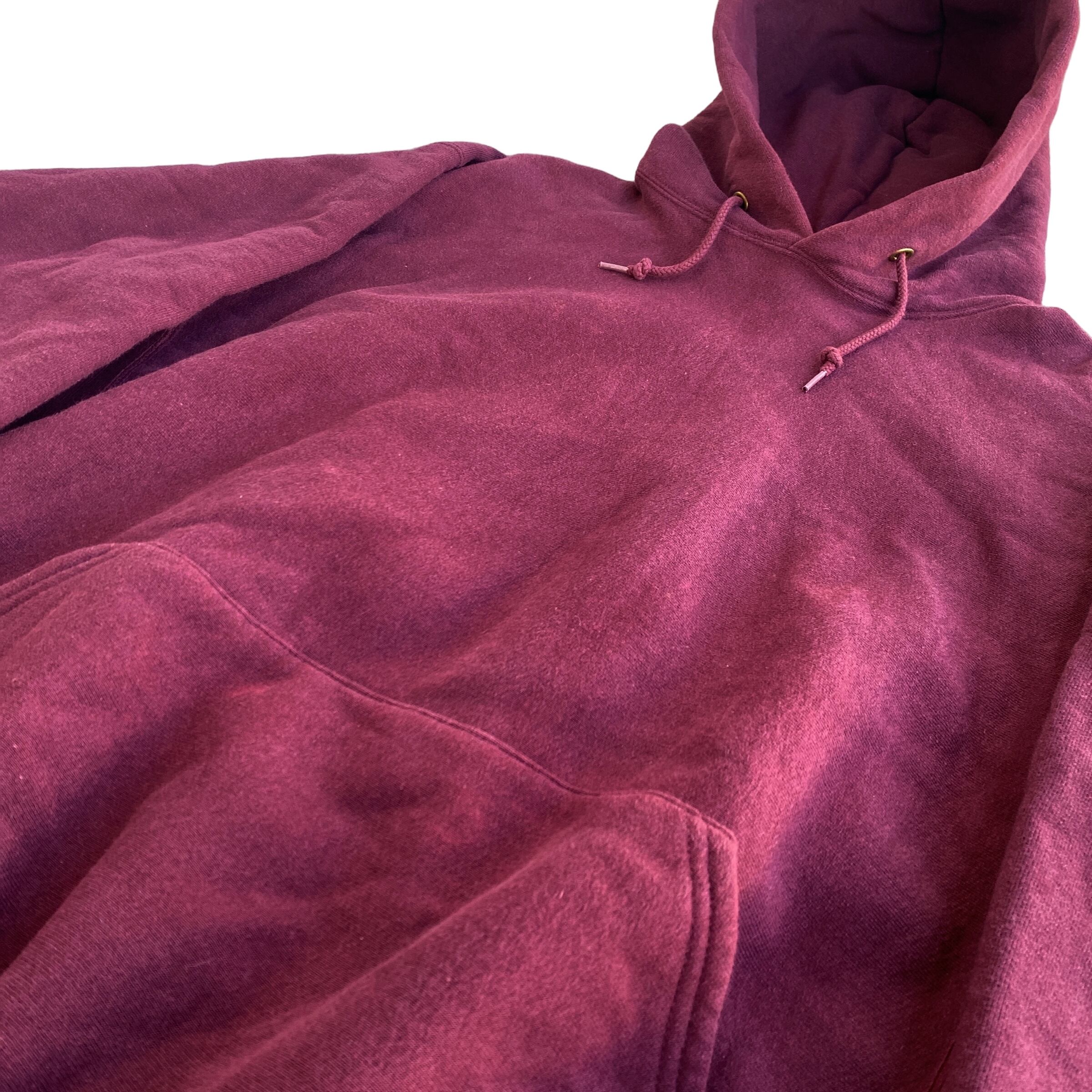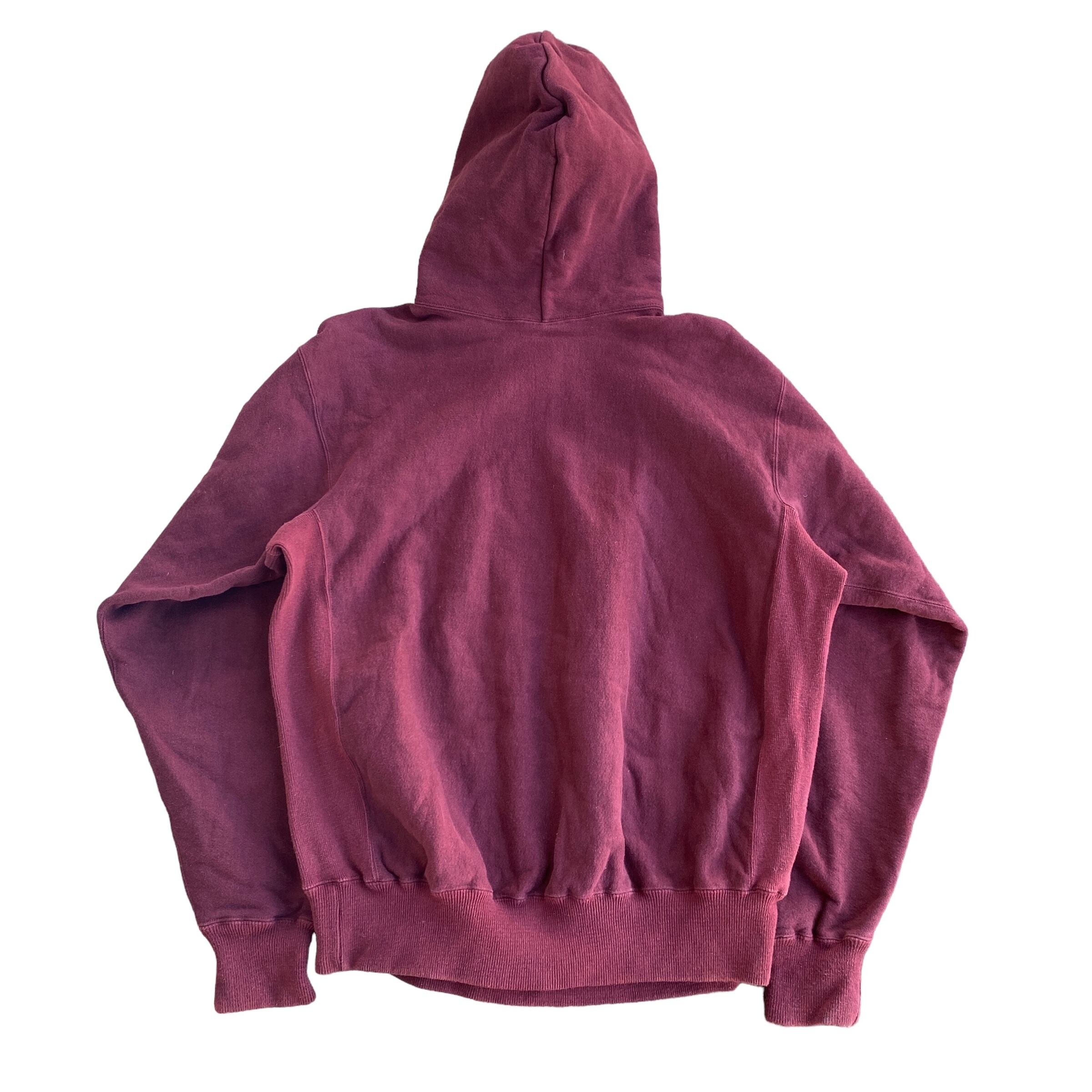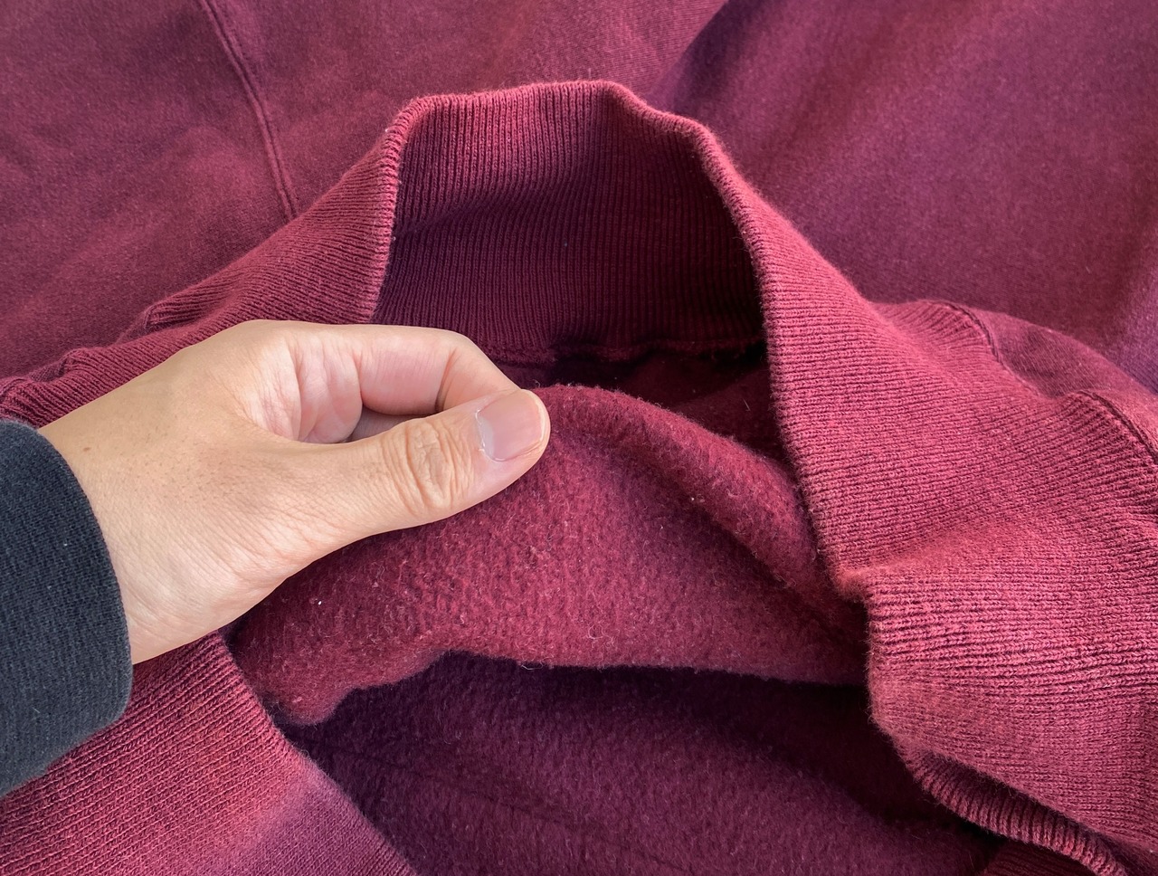 リバースウィーブタイプの肉厚で風合いの良いコットン生地に、バーガンディレッドの色味が非常に格好良い一着。