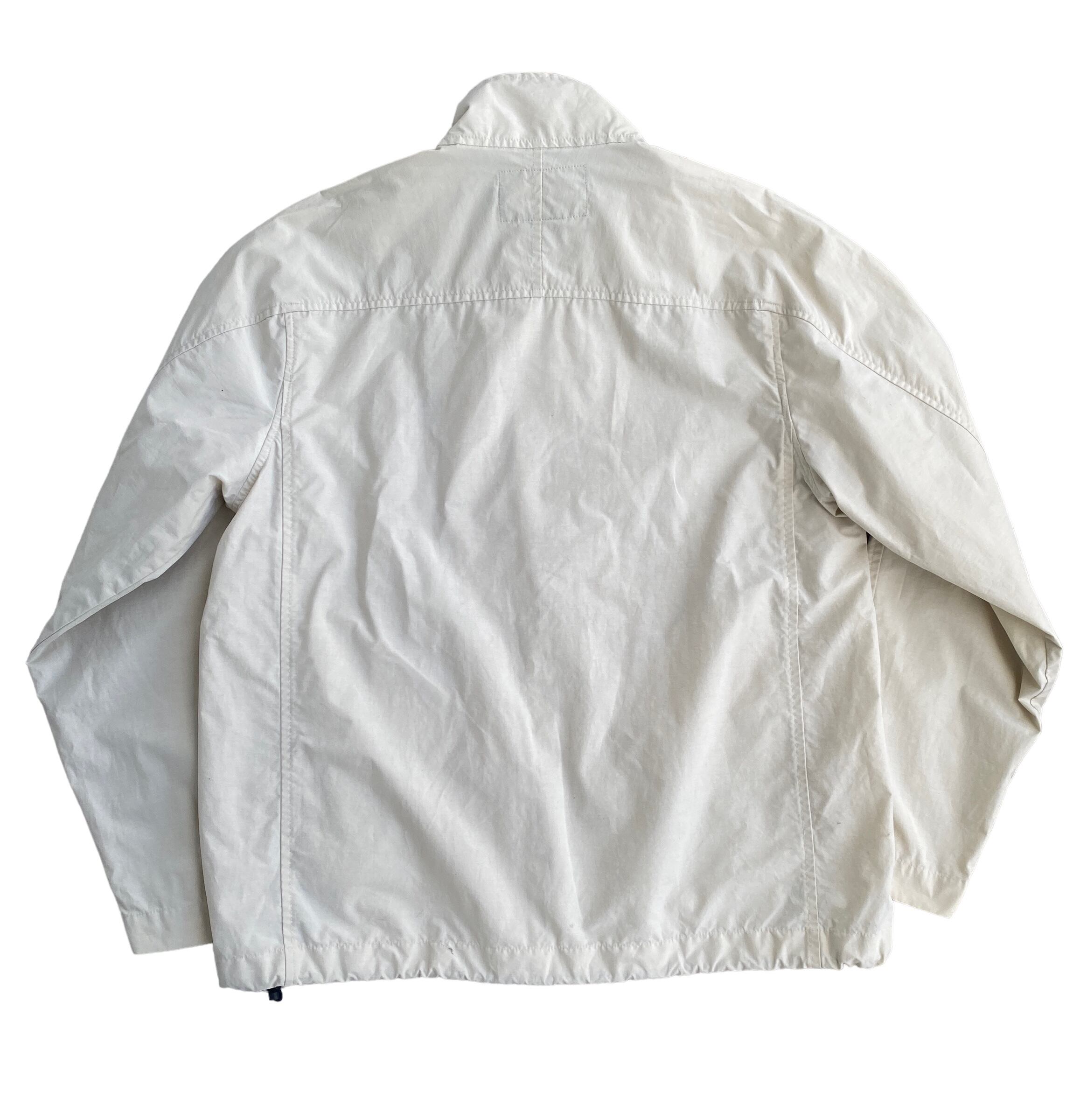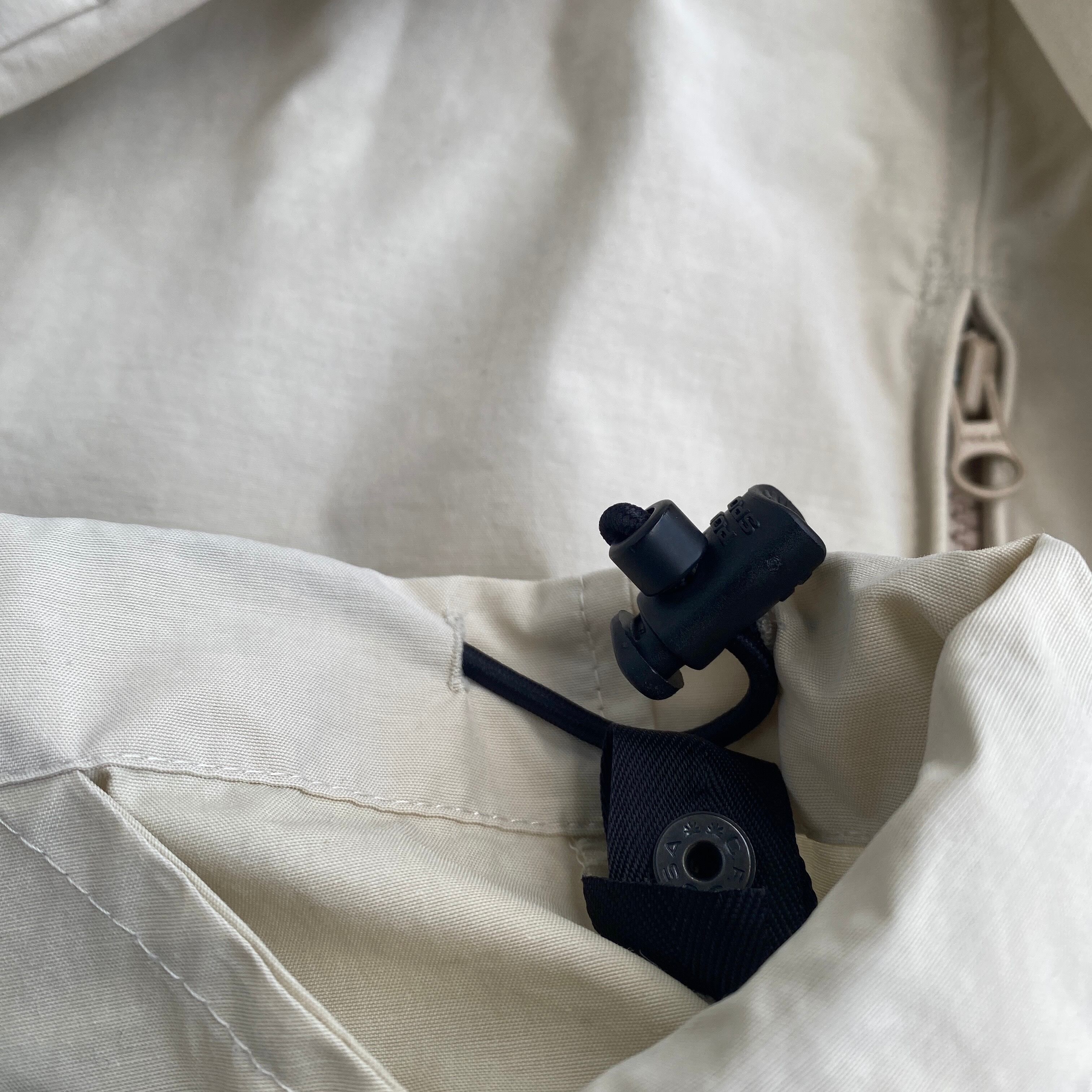 ゆったりとしたシルエットに、ハリ感のあるコットンナイロンの質感、オフホワイトの色目が、ストリート感もありつつ上品な雰囲気で非常に格好良い一着。