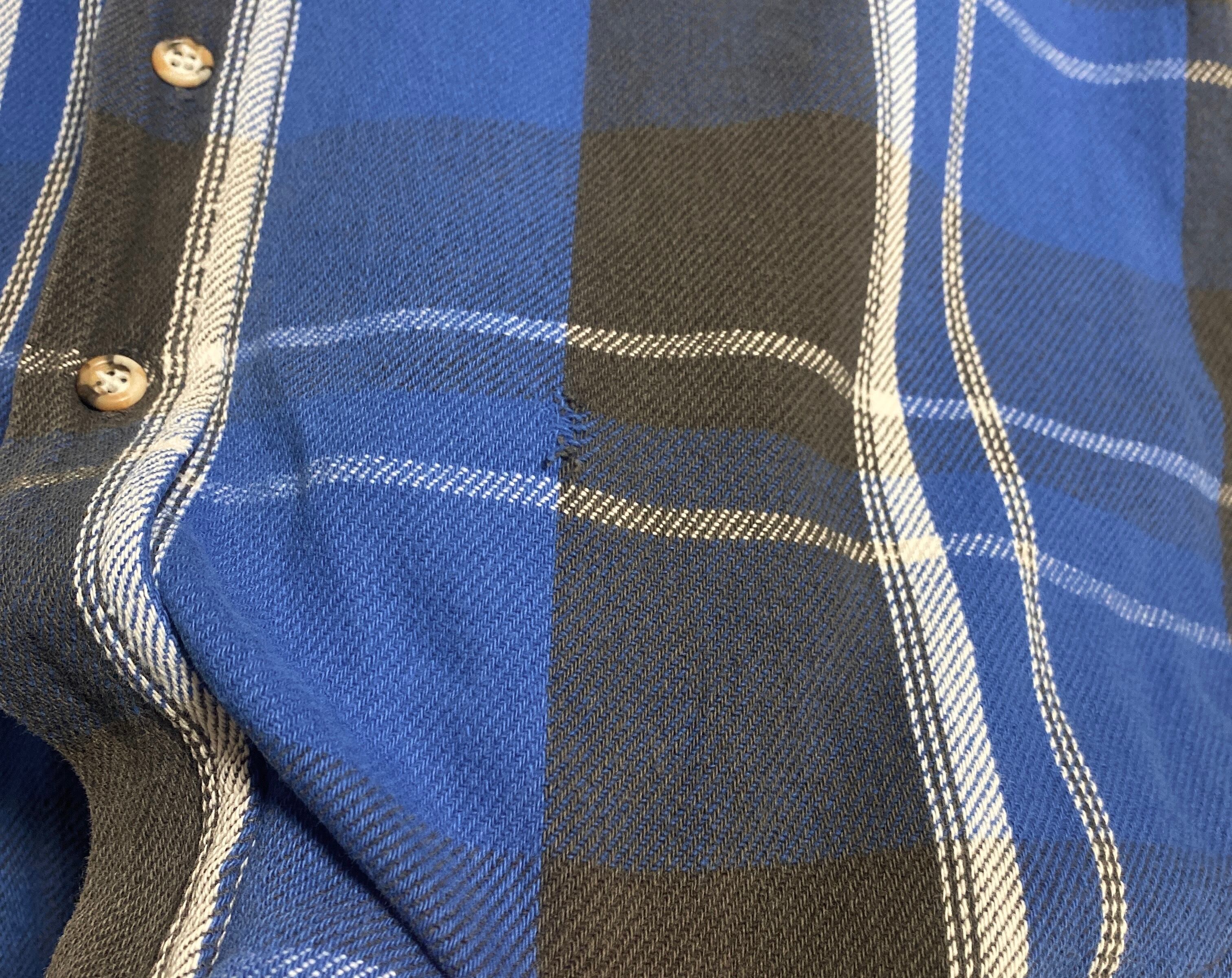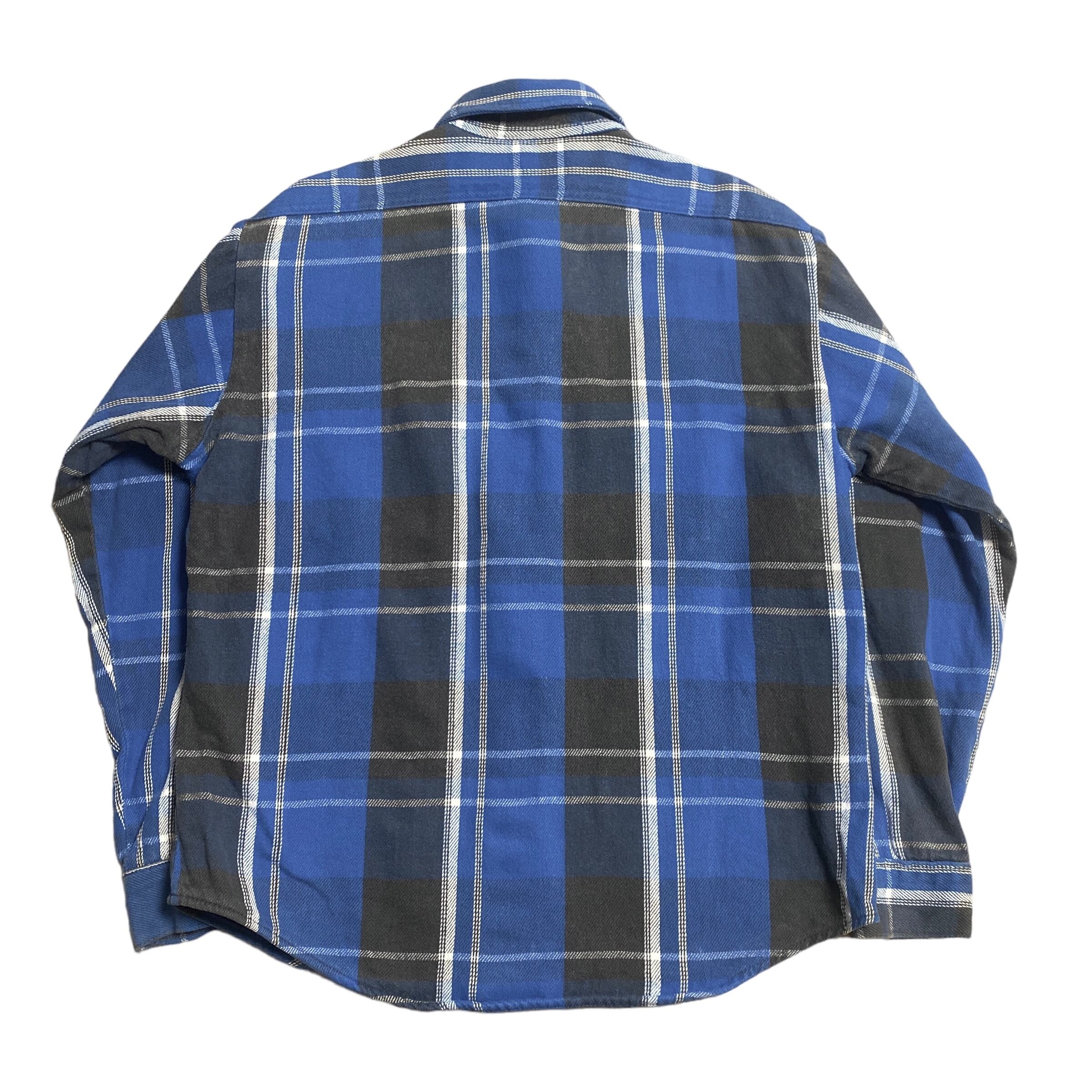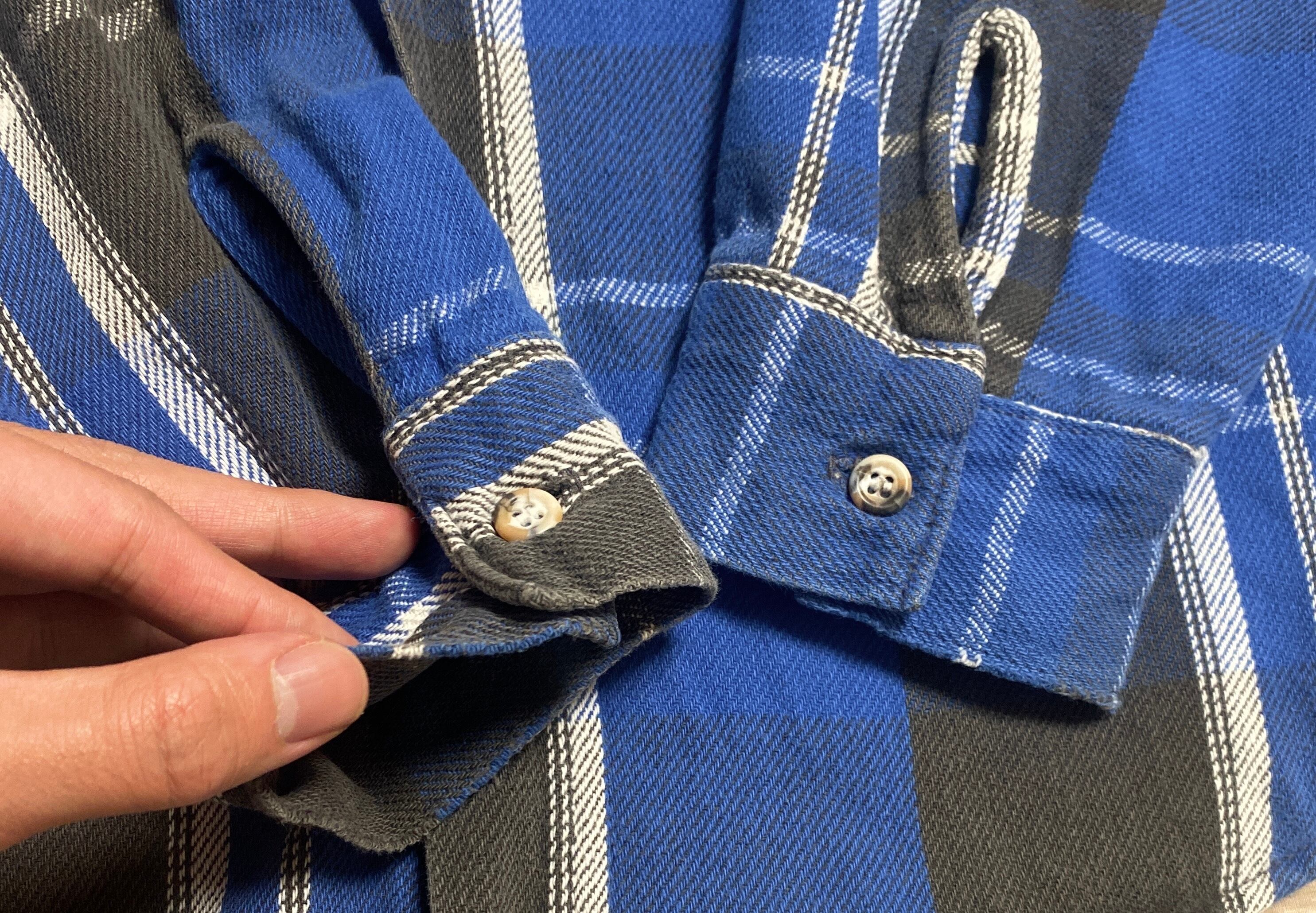 肉厚でモチっとしたコットンネル素材に、ブラック×ブルー×ホワイトのチェックパターンが非常に格好良い一着。