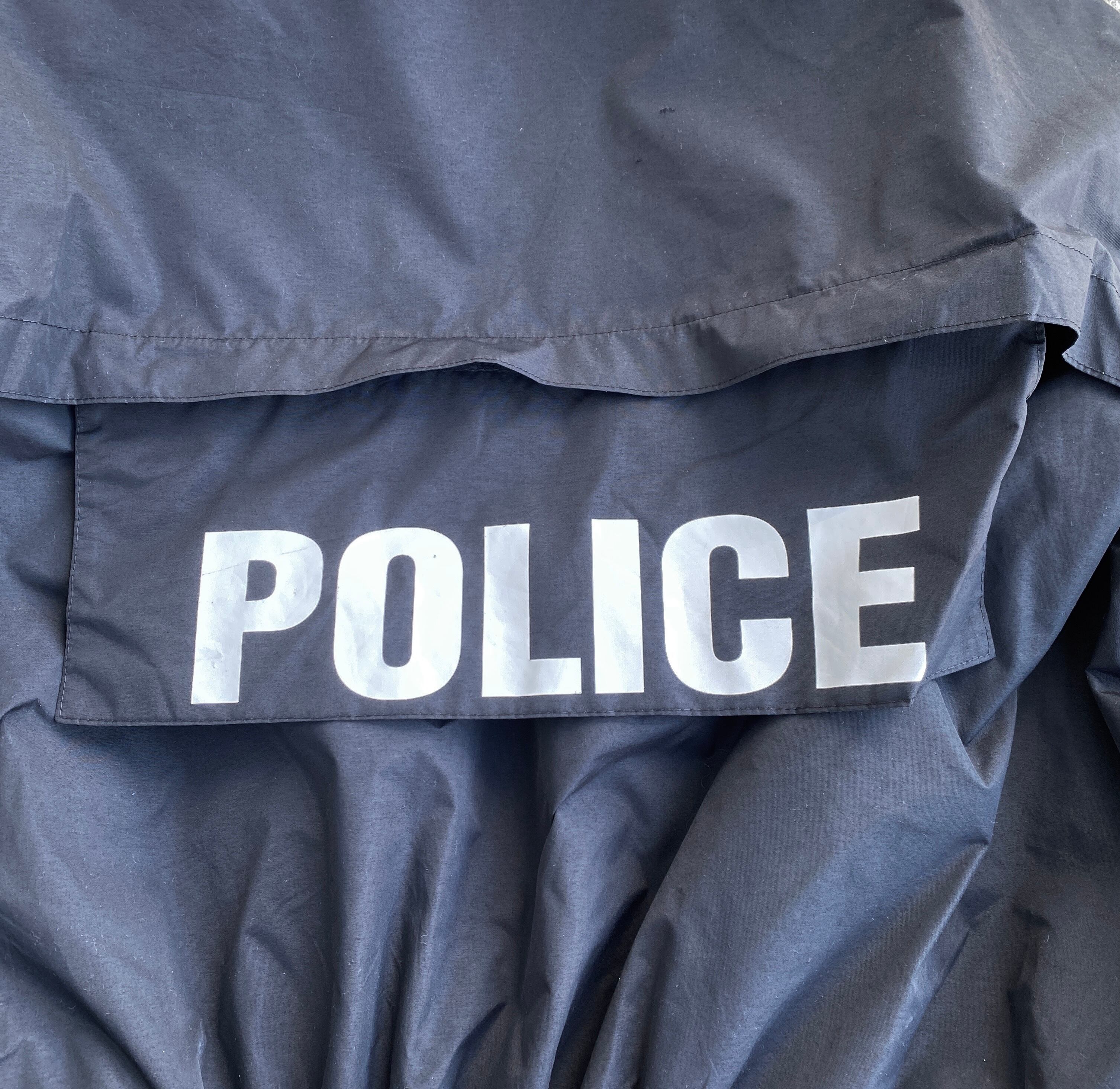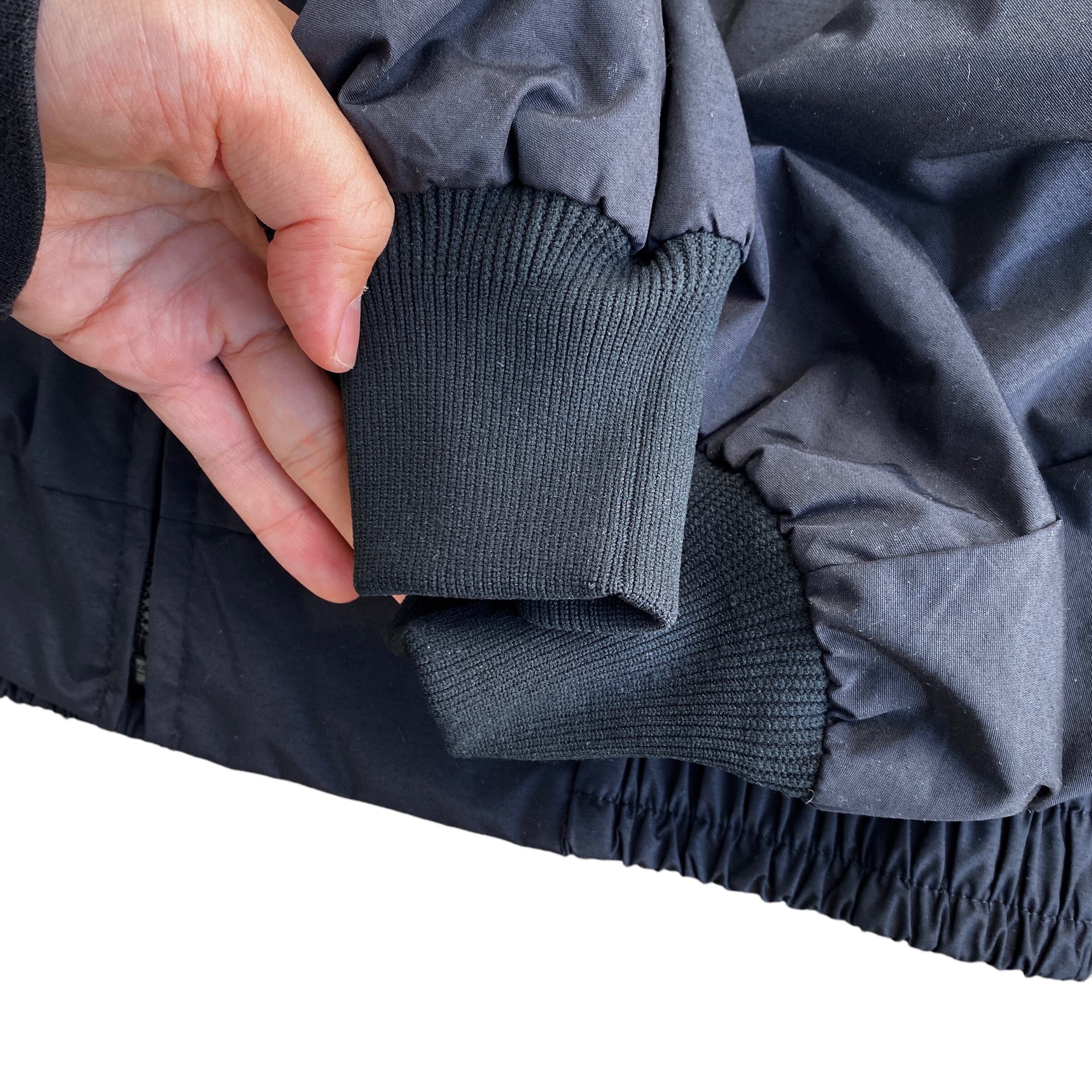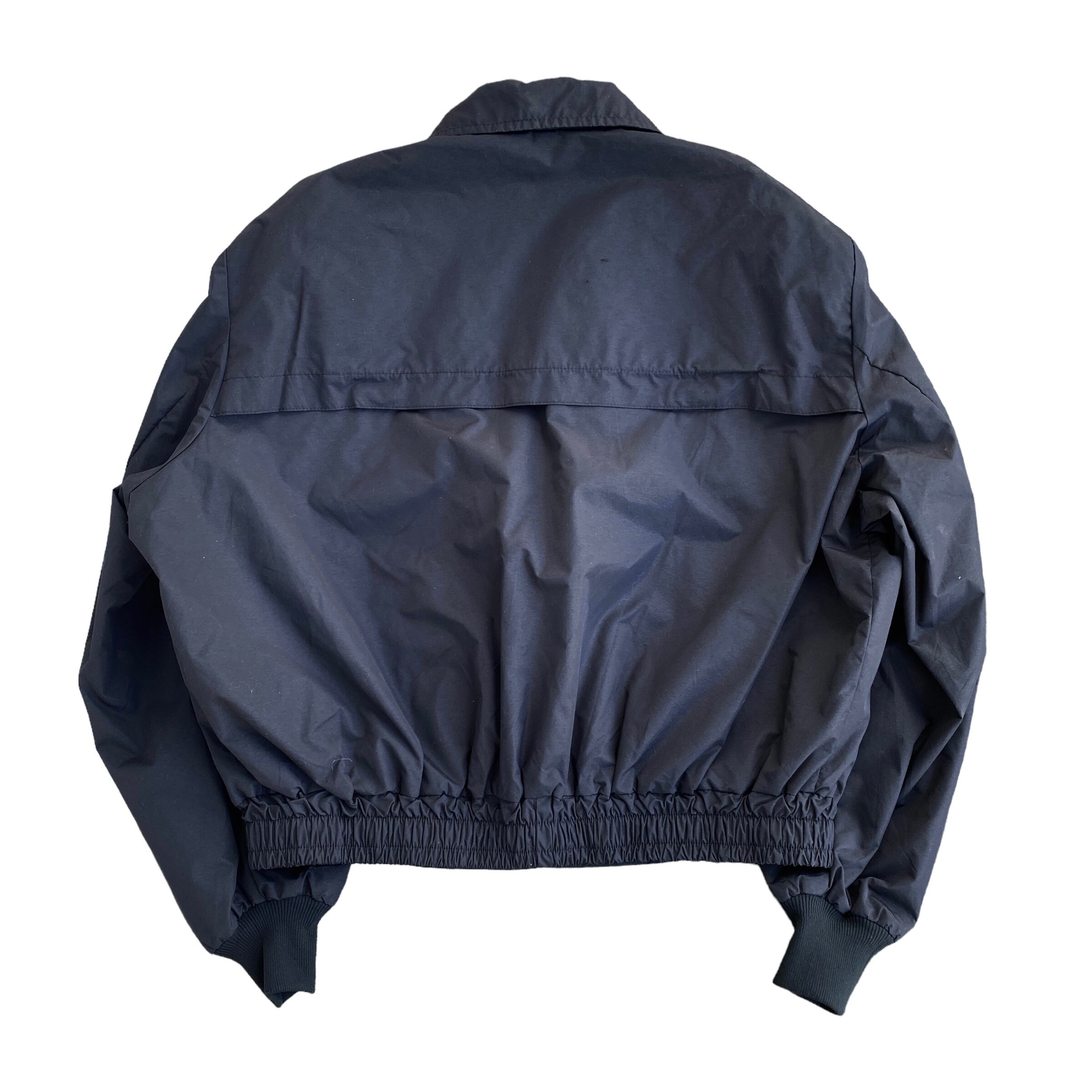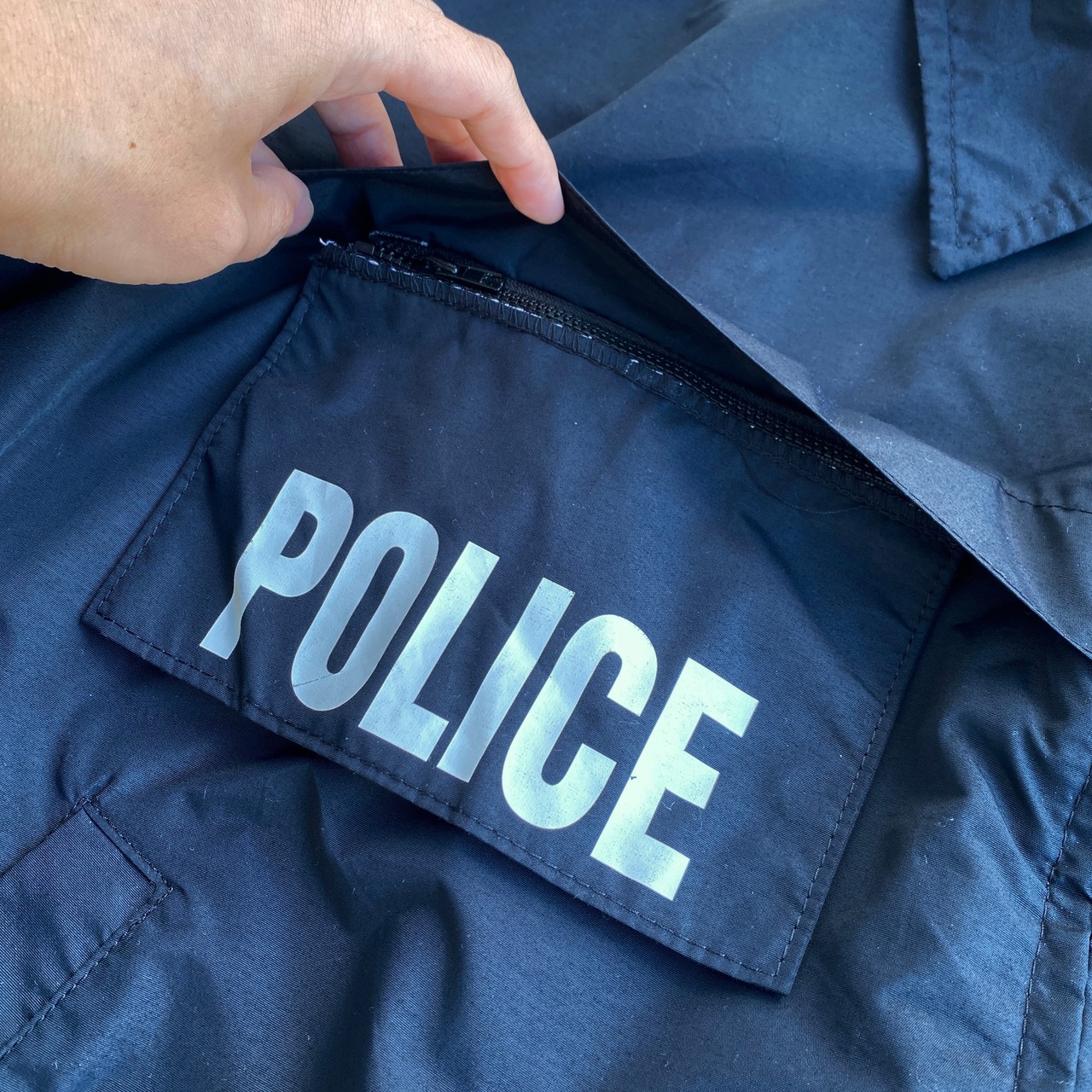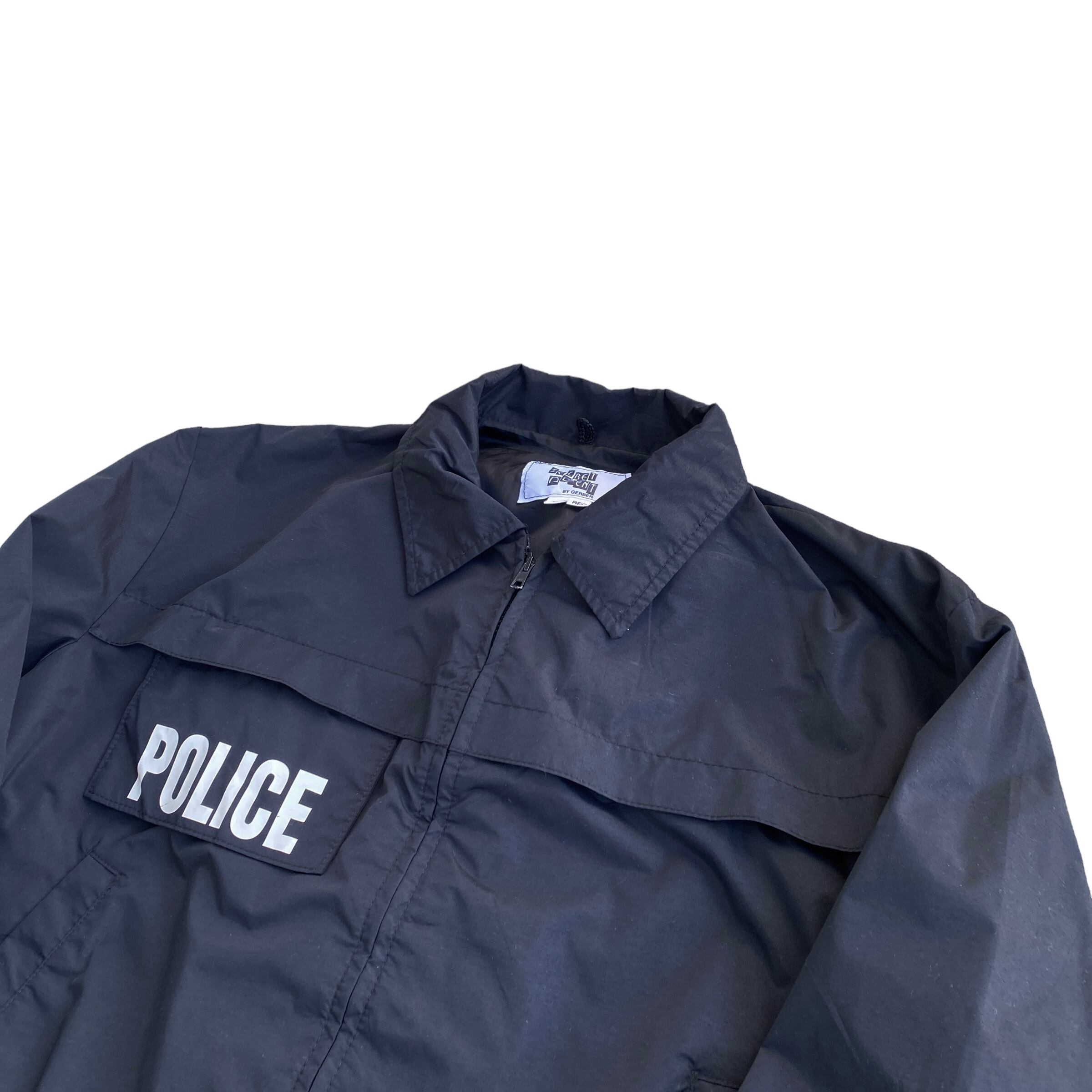 ハリコシのある質感の良いナイロン素材に、オールブラックカラー、フロントにはジッパーで着脱可能な「POLICE」の胸章(バックにも格納可能な物がついてます)、短丈ボックスなシルエットが非常に格好良い一着。
