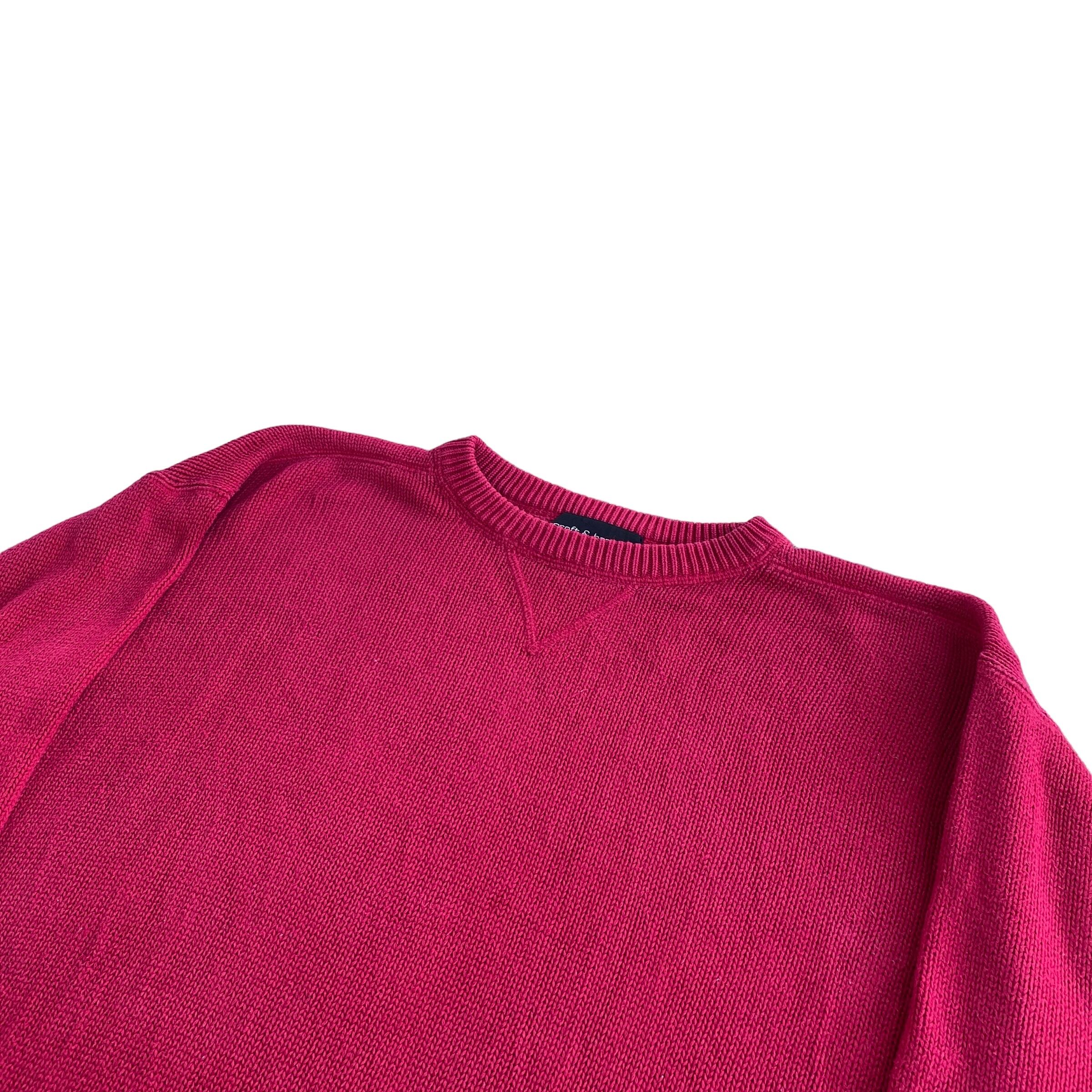 前Vのスウェット型に、肉厚で程よく詰まったコットンニット、ほどよくフェードしたレッドの色目が非常に格好良い一着。