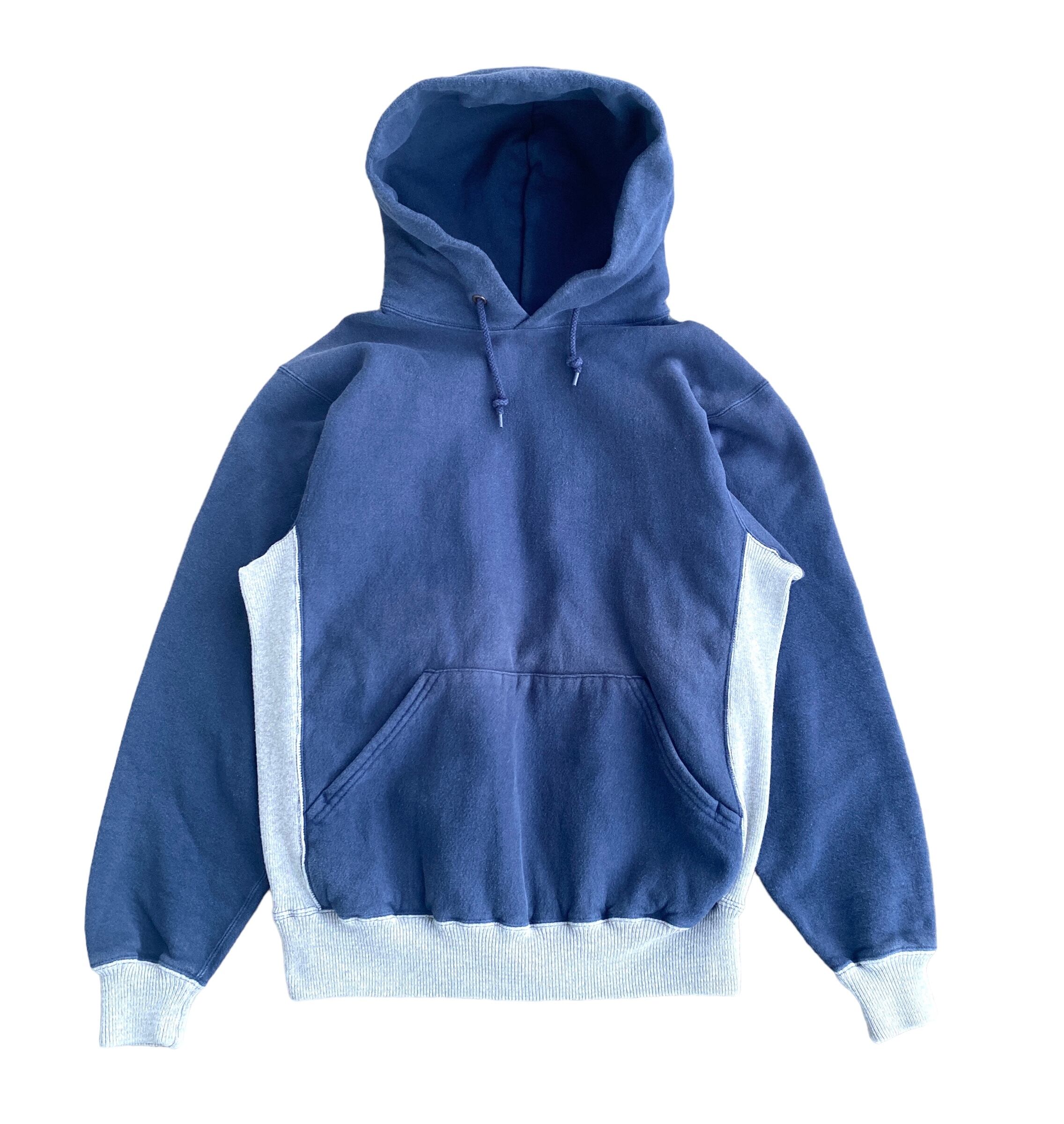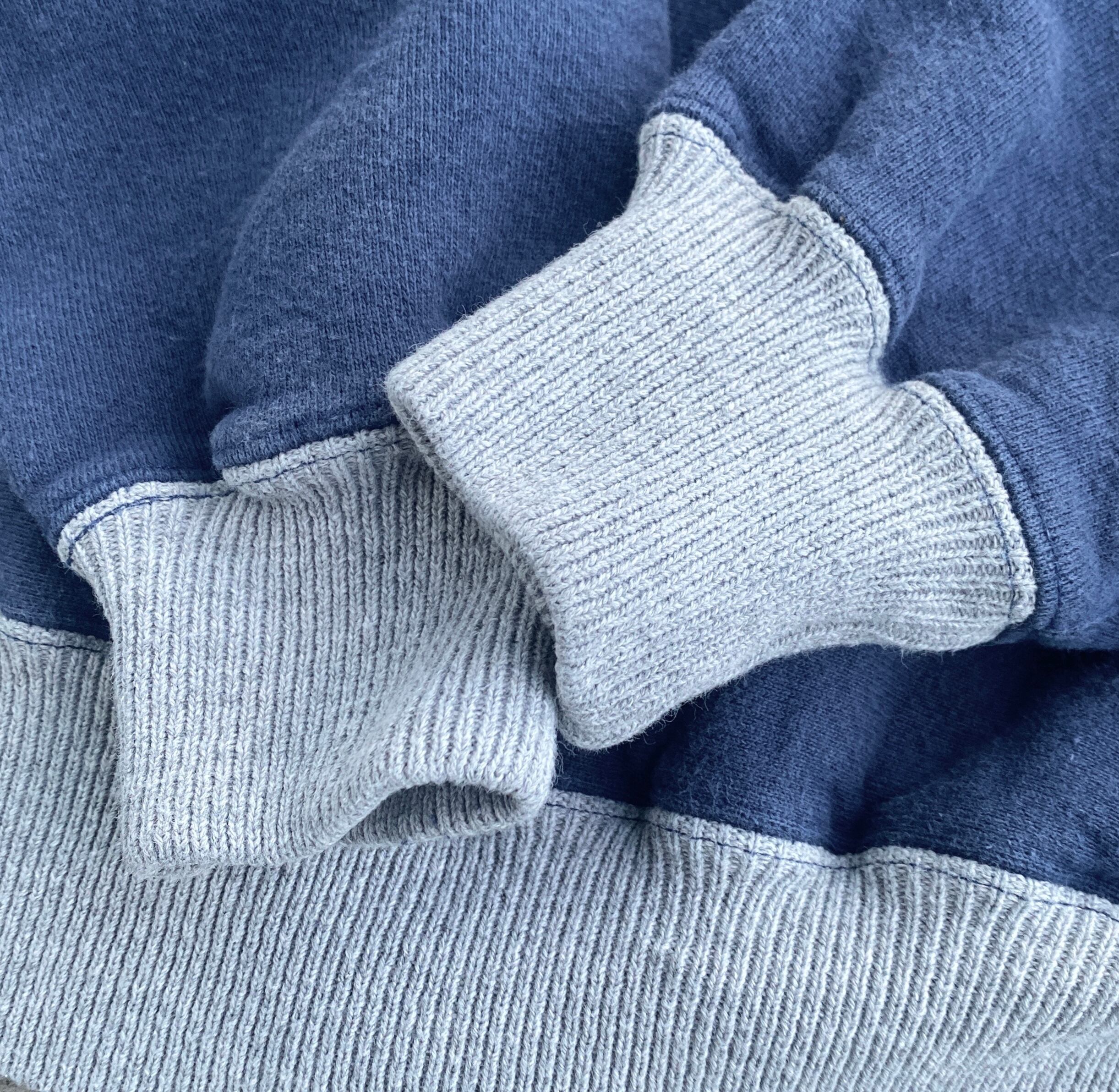 リバースウィーブタイプの肉厚で風合いの良いコットン生地に、ネイビー×グレーの色目(色がちゃんと出ていないのですが、画像6が比較的近いです)が非常に格好良い一着。