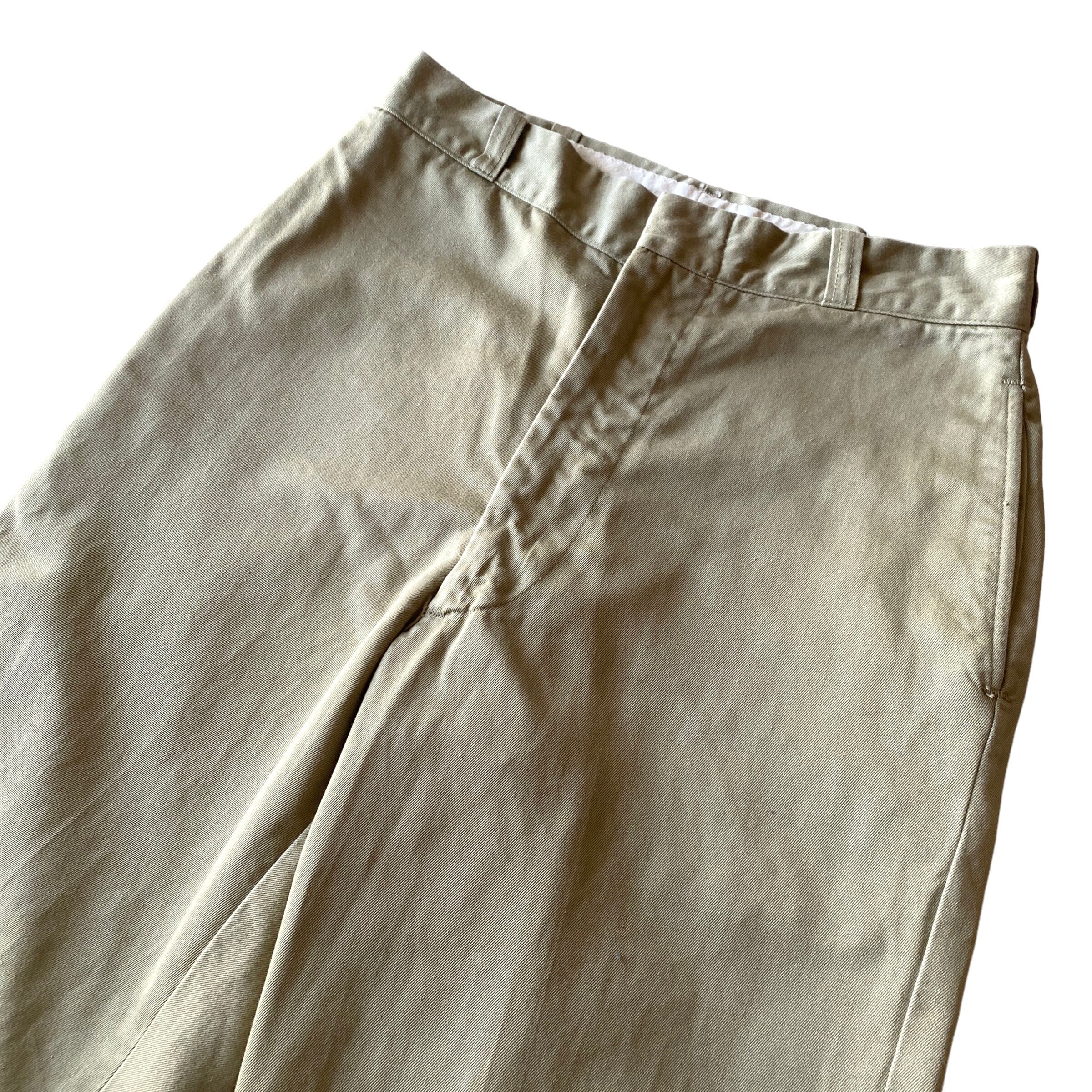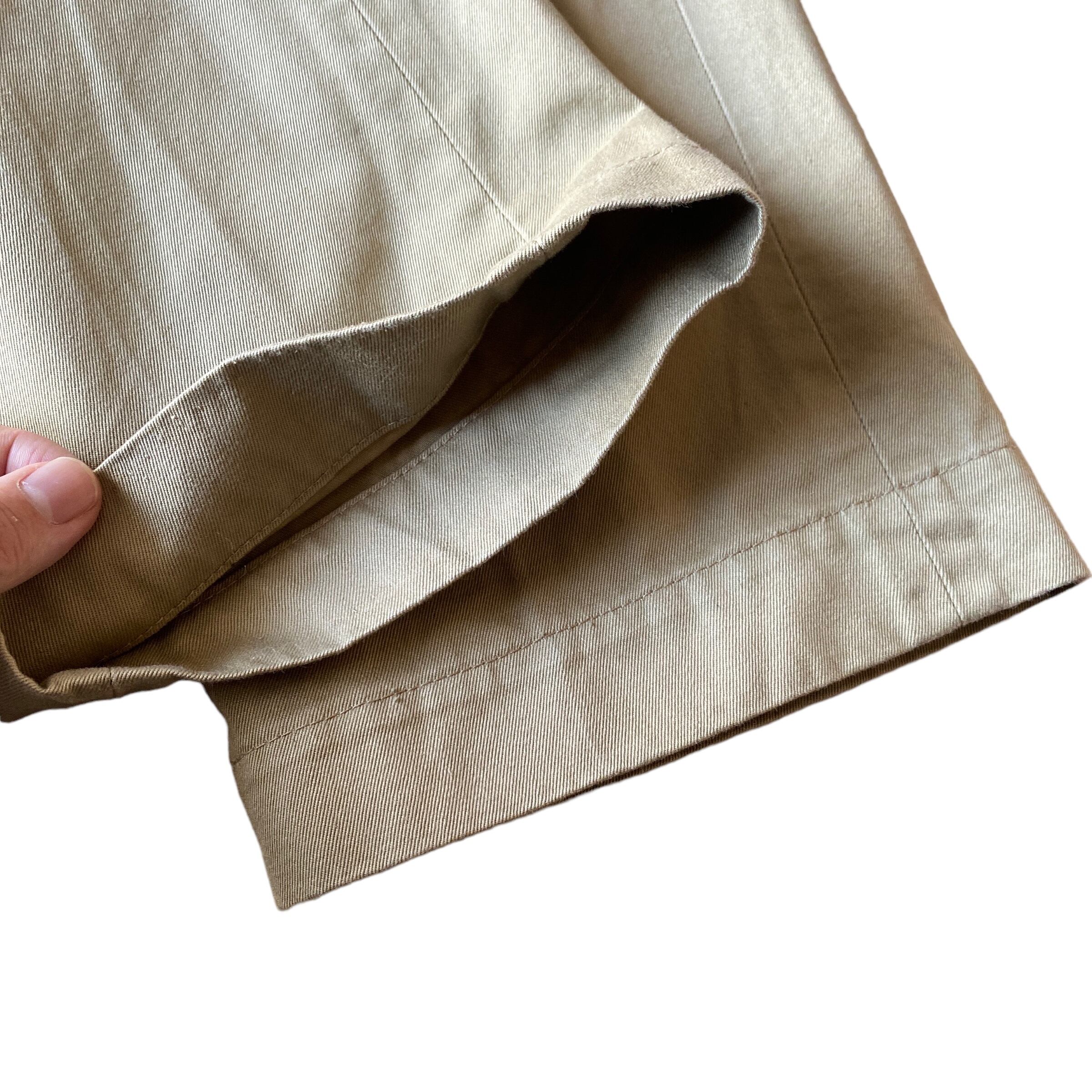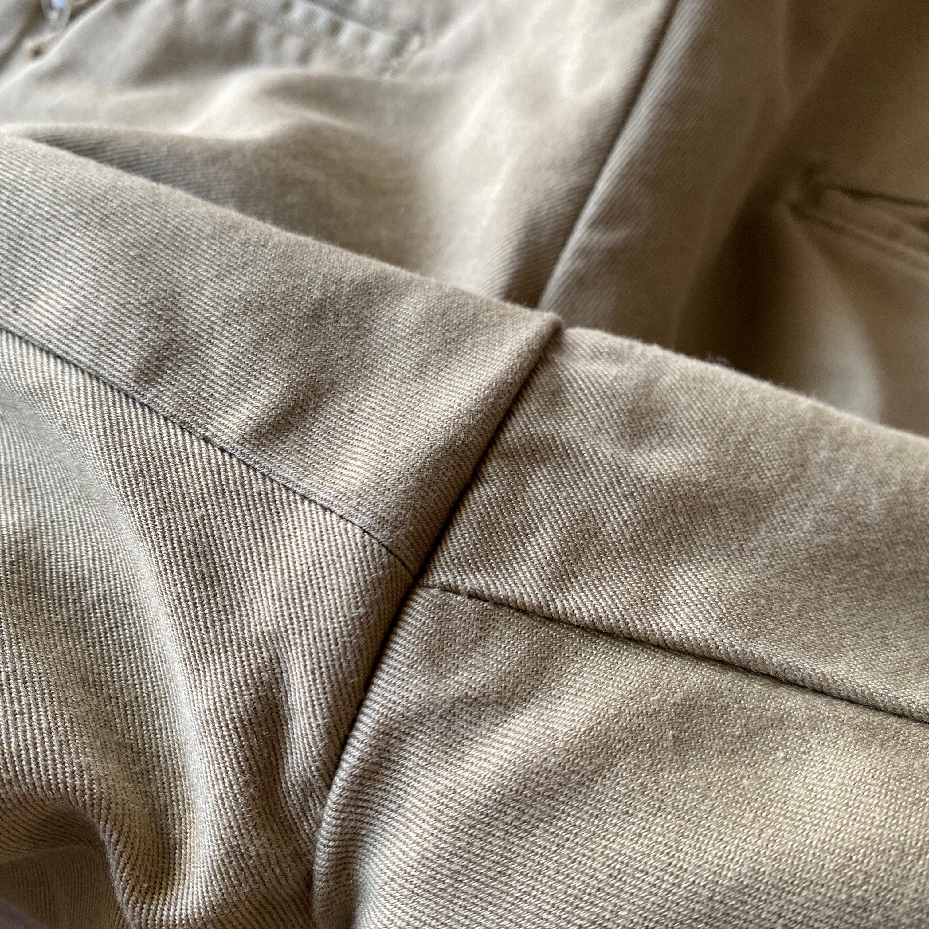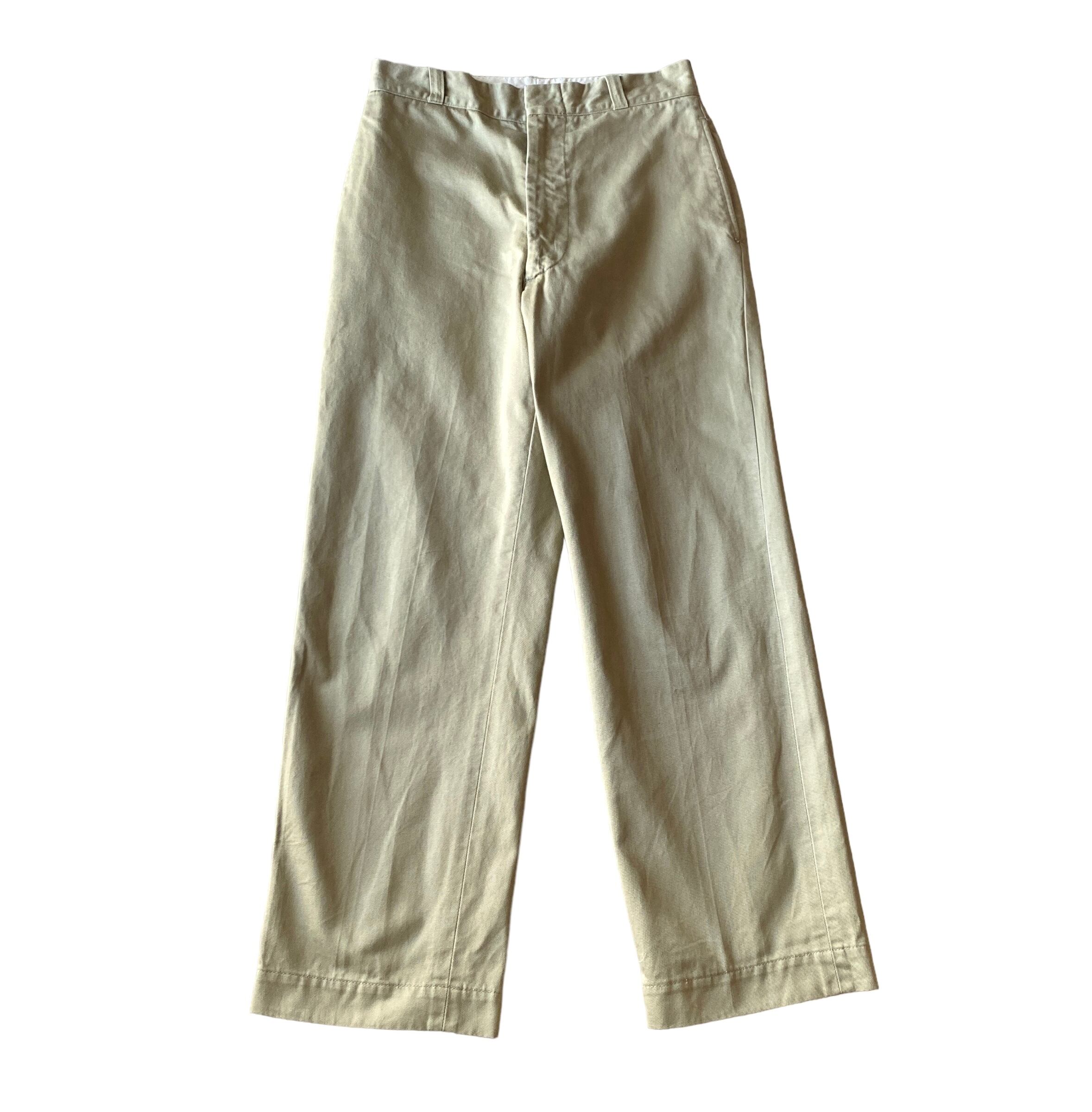 肉厚なコットンツイルの質感、ストンと落ちる太めのストレートシルエットが非常に格好良い一着。