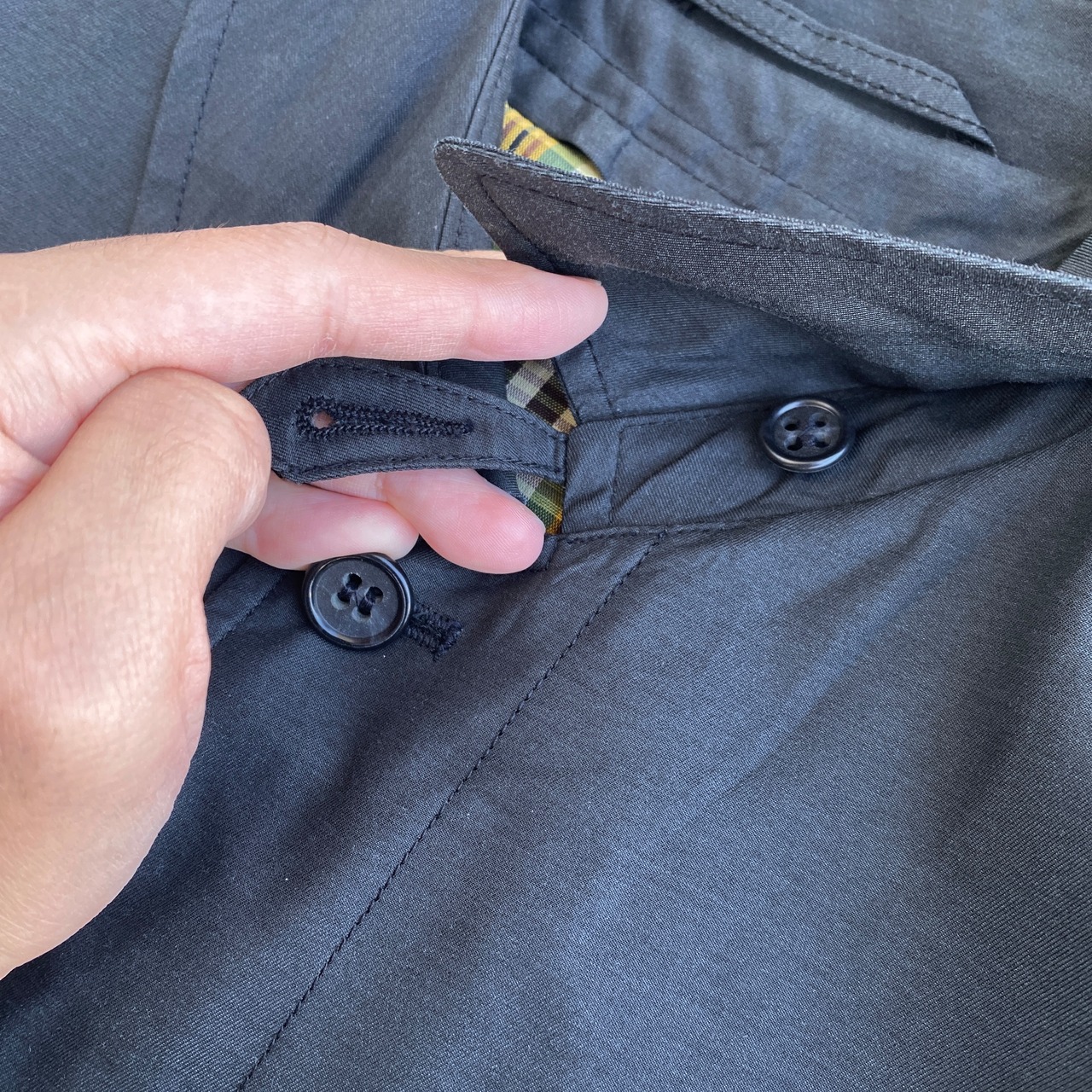 ダークグレー系(蛍光灯で撮った画像10の色目が結構近いです)のトニックカラーに、スプリットラグランのクラシックなシルエットが非常に格好良いです。