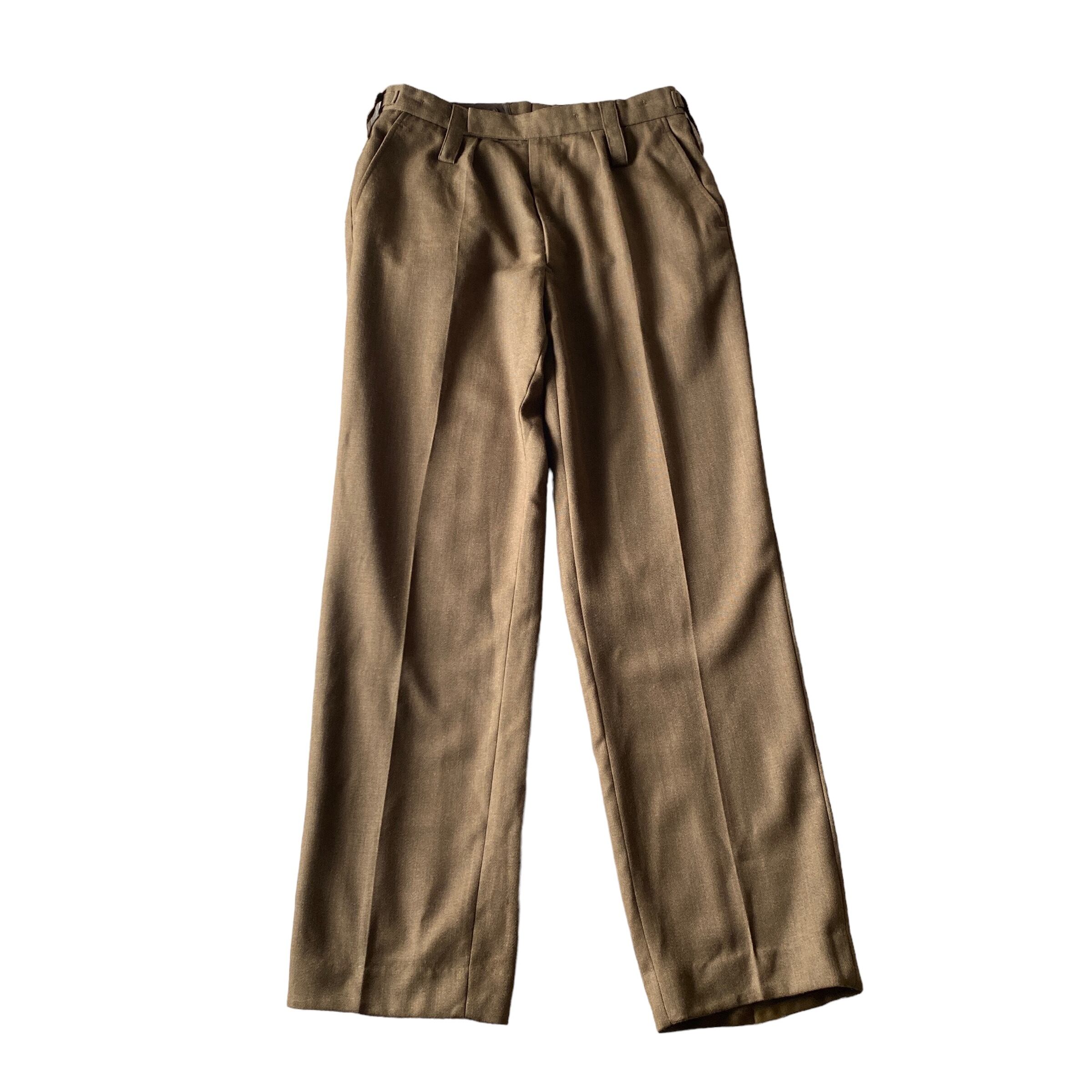 ポリ混ウールのやや地厚でサラッとした生地感に、ストンと落ちる細すぎず太すぎずの綺麗なシルエットが非常に格好良い一着。