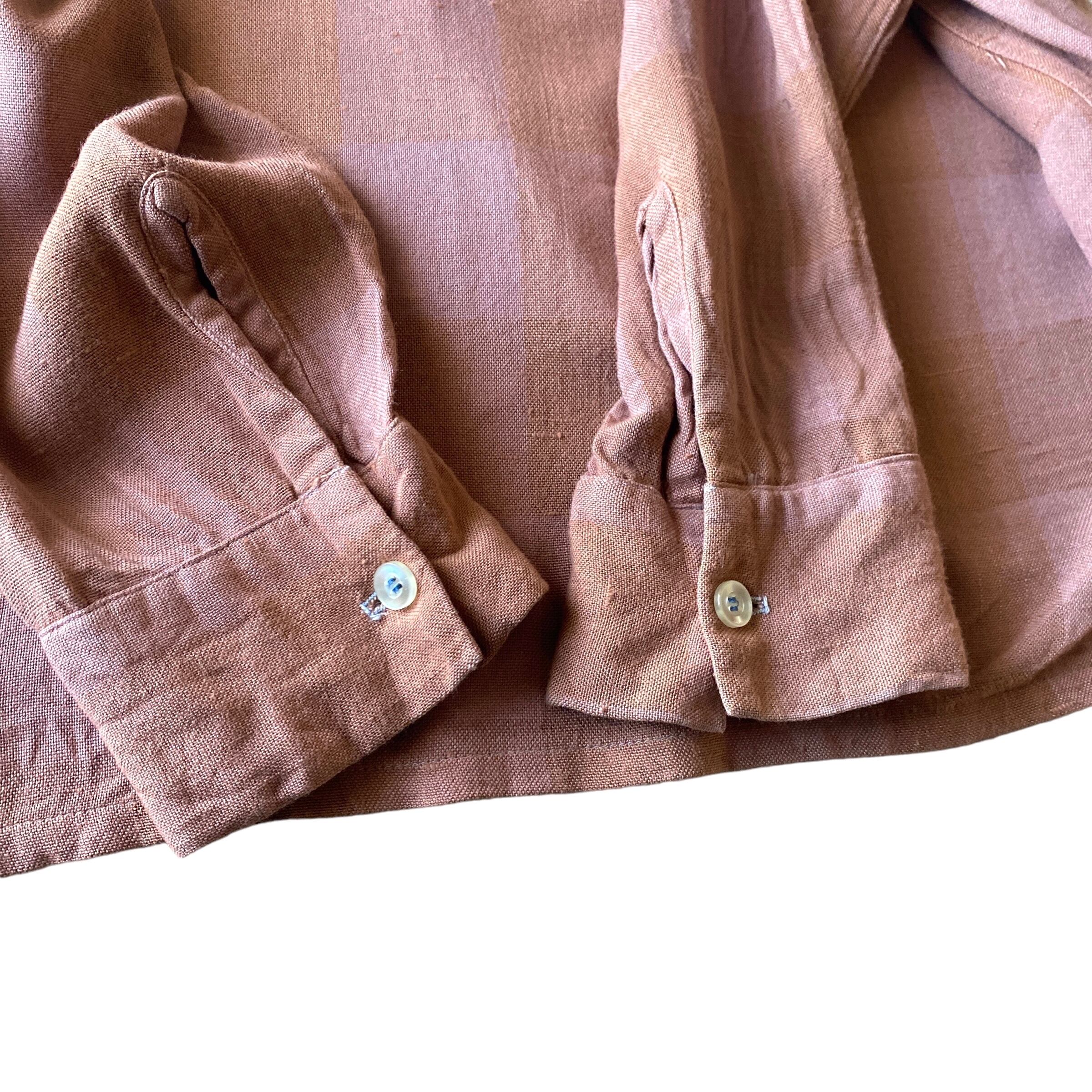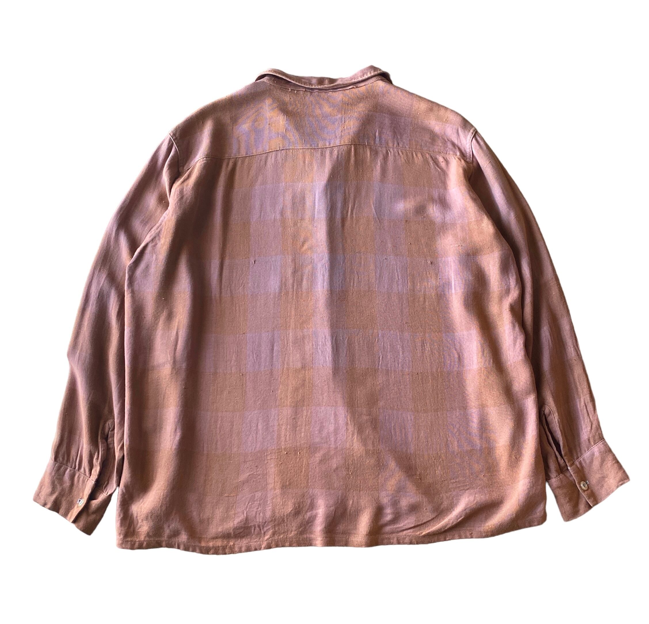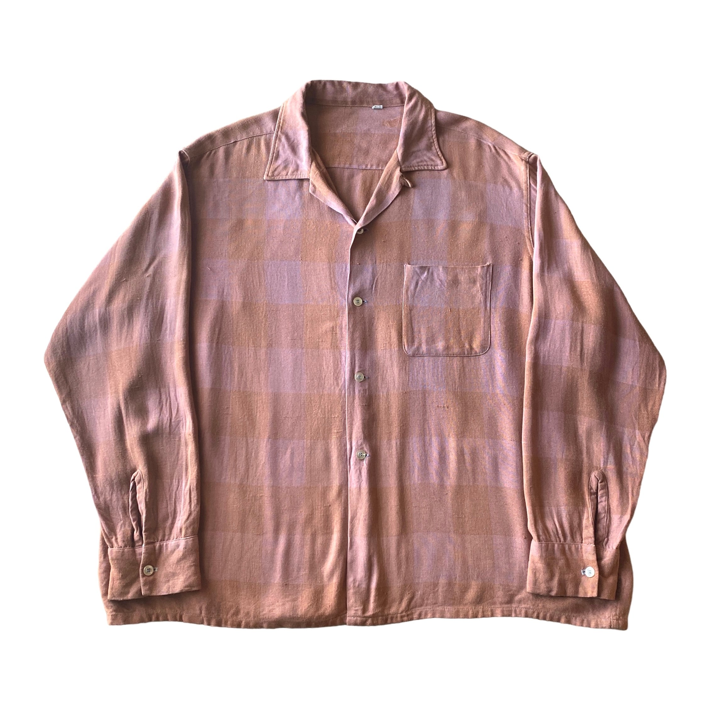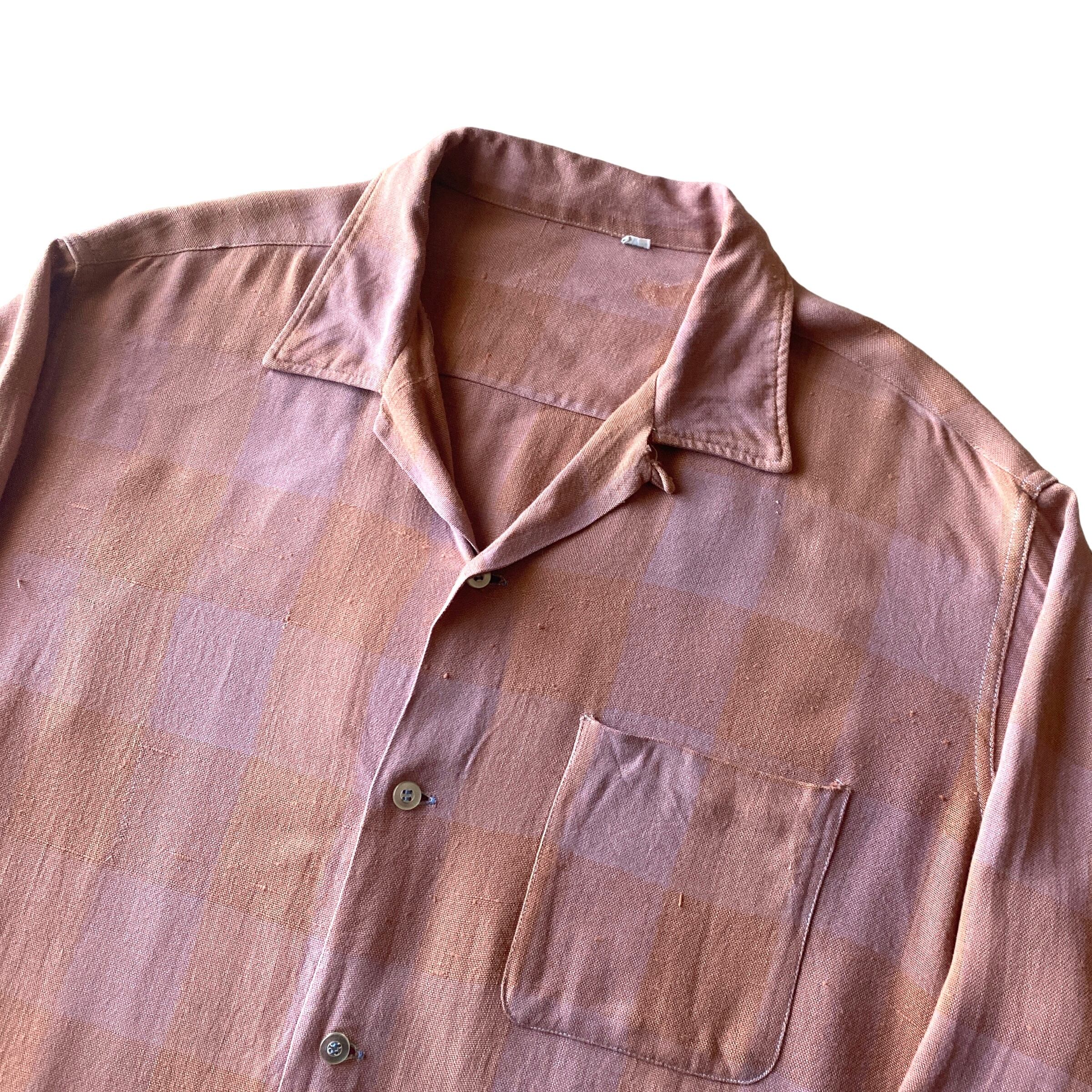 〜1960年代頃のUS VINTAGEオープンカラーチェックシャツになります。(RN14716からBRENT製、生地のドレープ感やネップ感からレーヨン強めのコットンの混紡生地で間違いないと思います。)