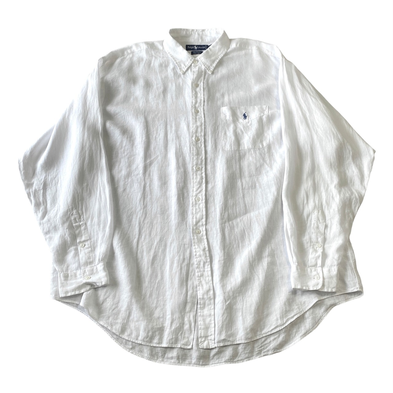 90s Ralph Lauren 「BIG SHIRT」linen BD shirt XL