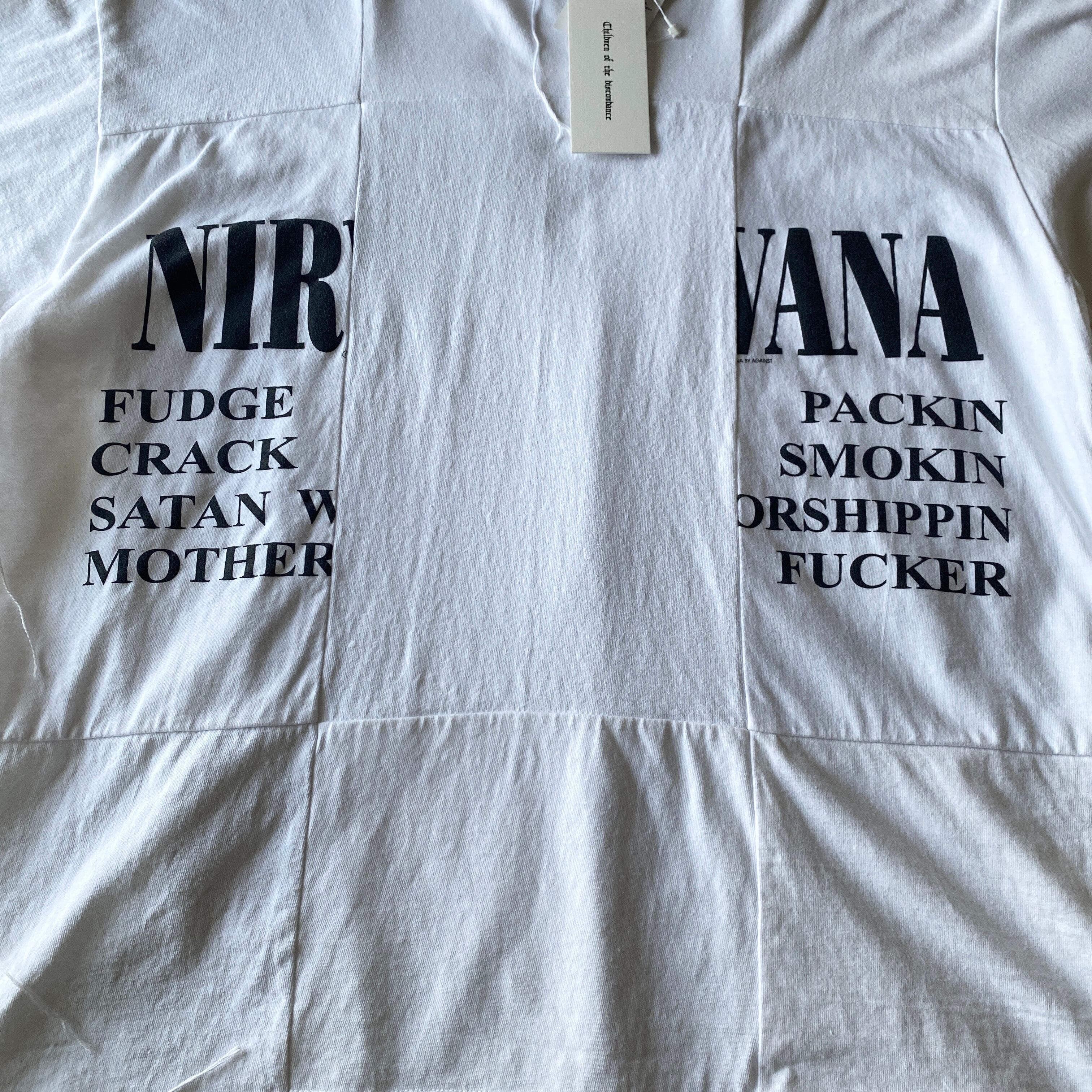 NIRVANAの有名なデザイン「VESTIBULE」のオールドTを解体して再構築した一着。