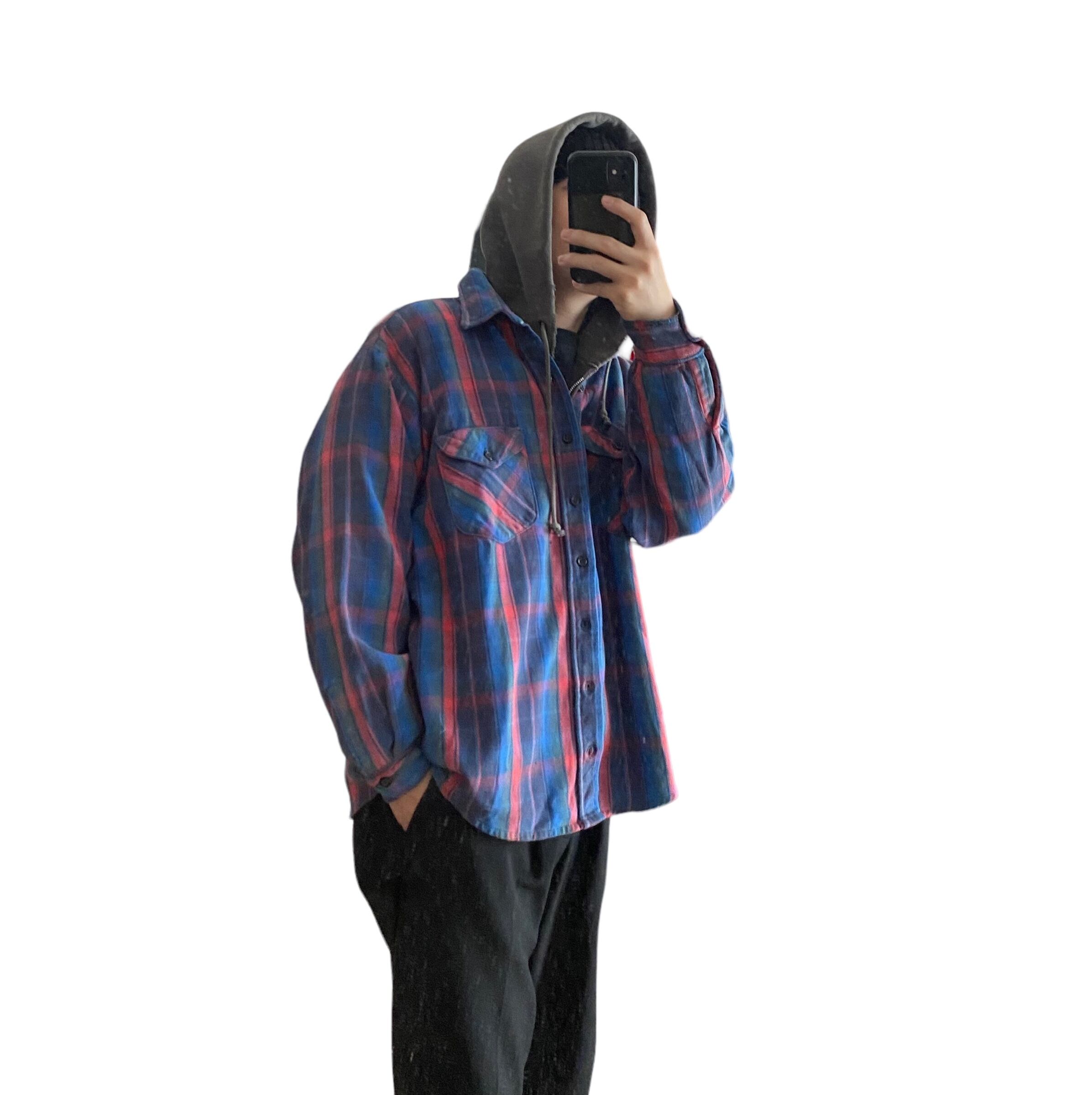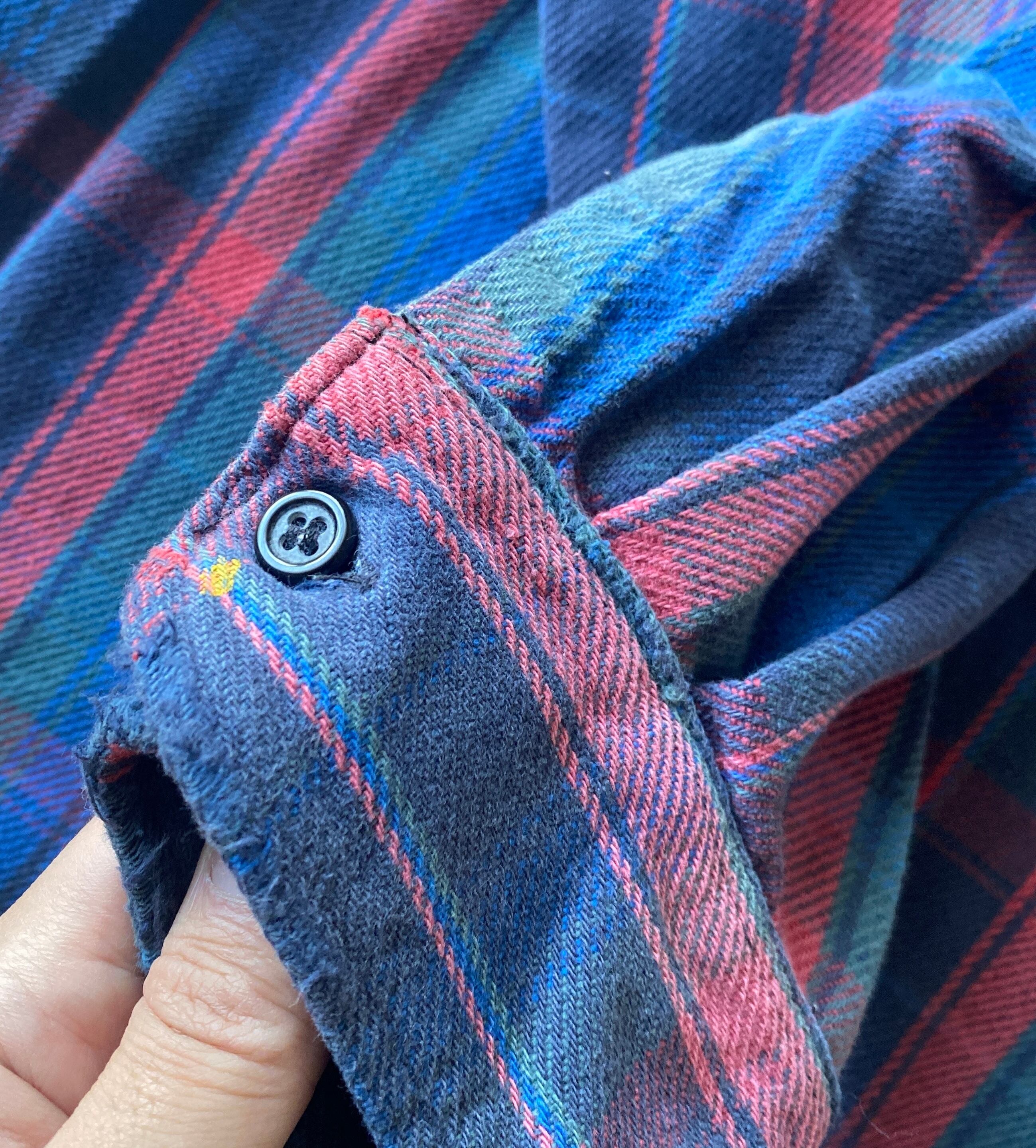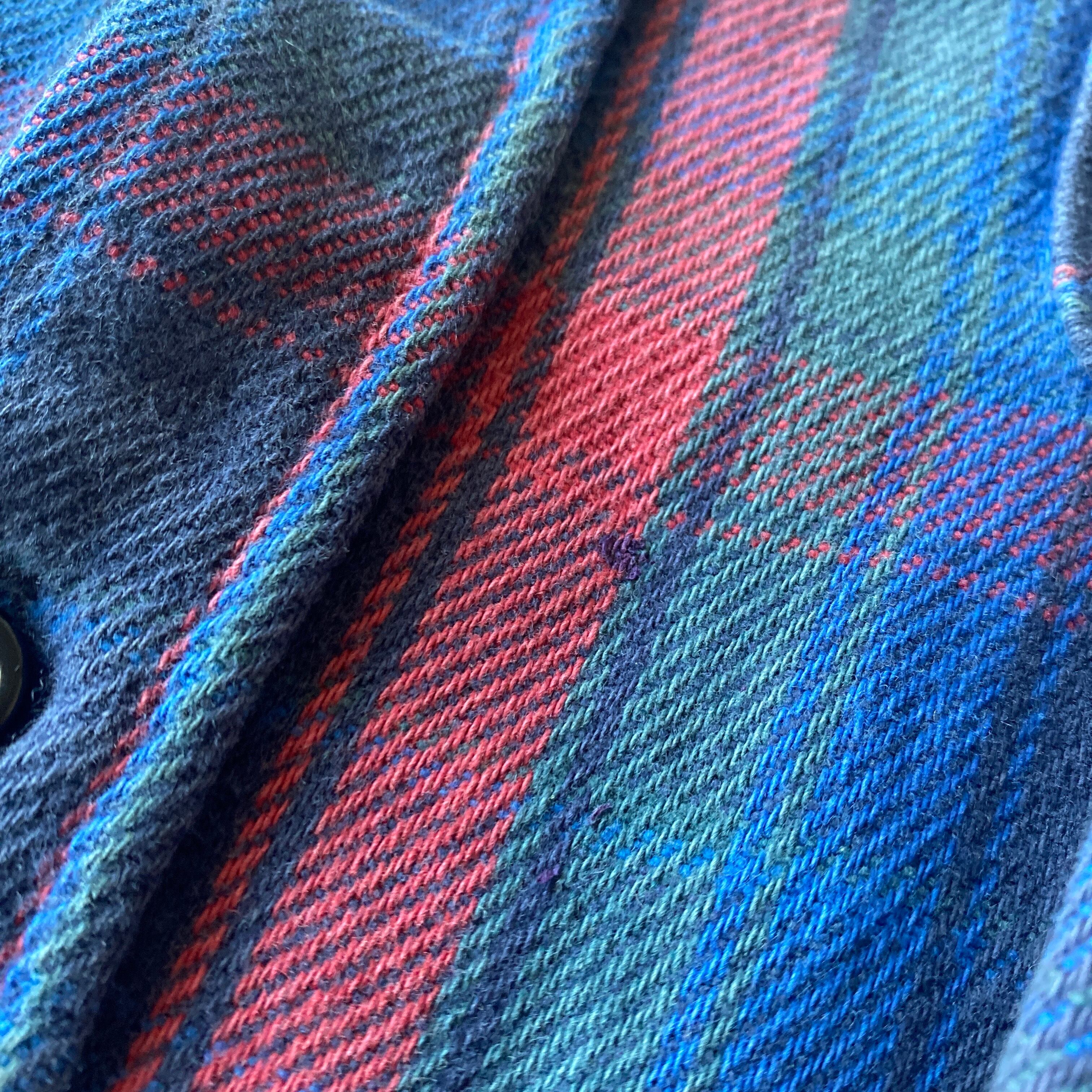 肉厚でモチっとしたコットンネル素材に、ブラック×レッド×ブルー×グリーンのTHEアメカジなチェックパターン(画像2が近いかと)が非常に格好良い一着。
