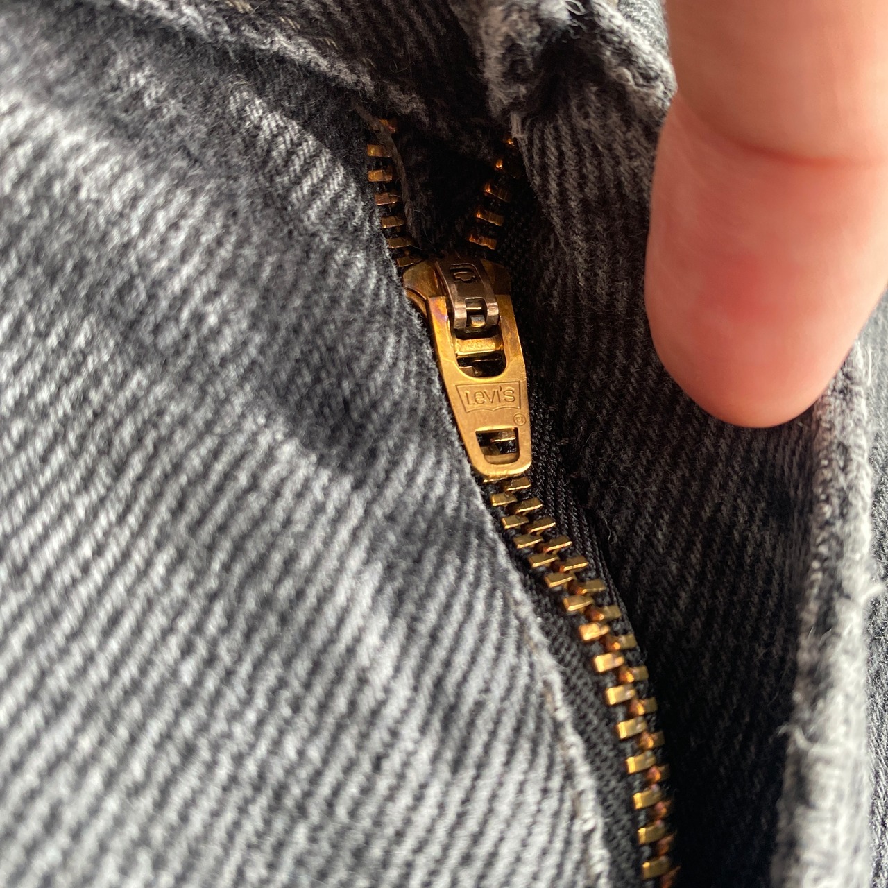 程よく色落ちしたブラックに、ローライズ気味のストレートシルエットが非常に格好良い一着。