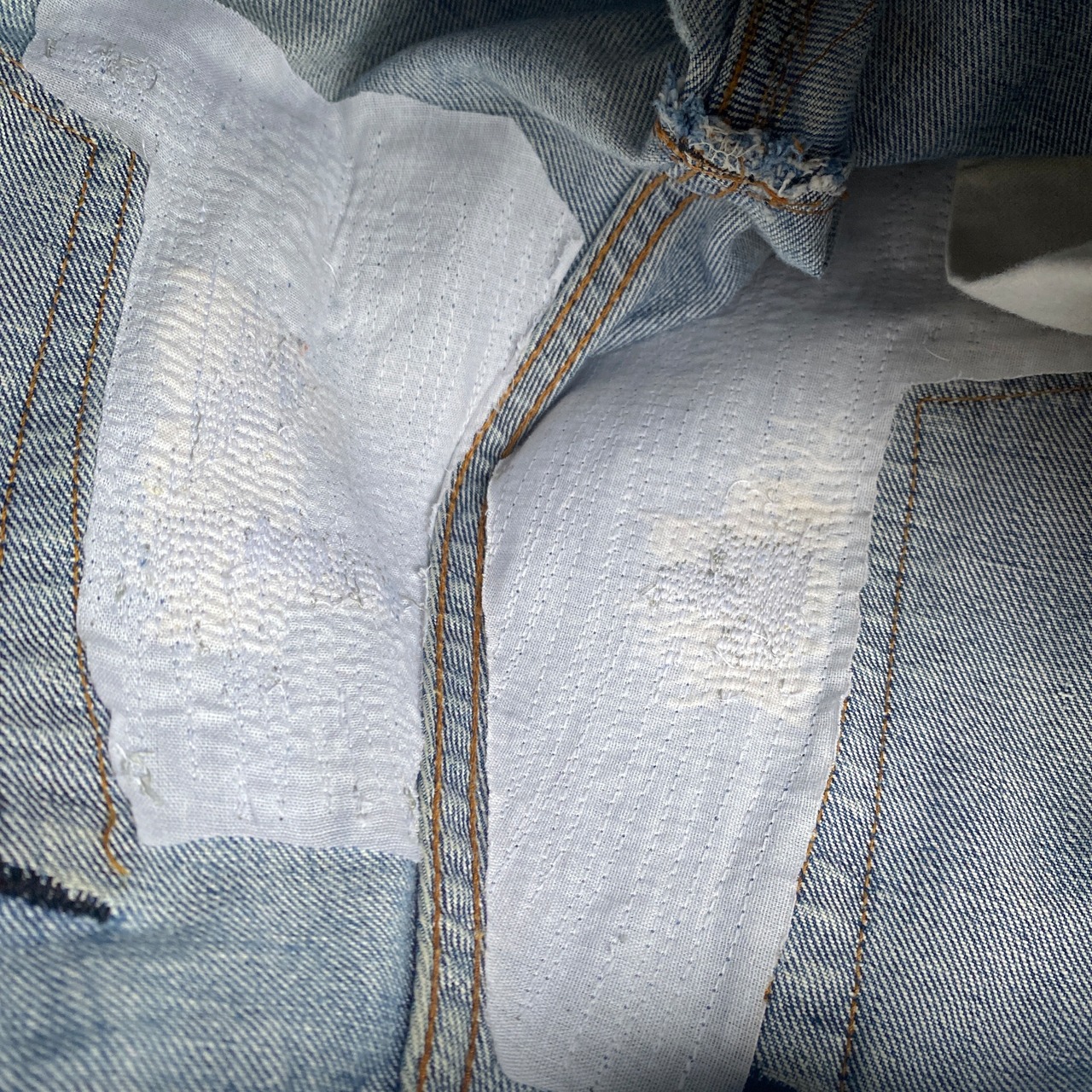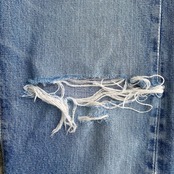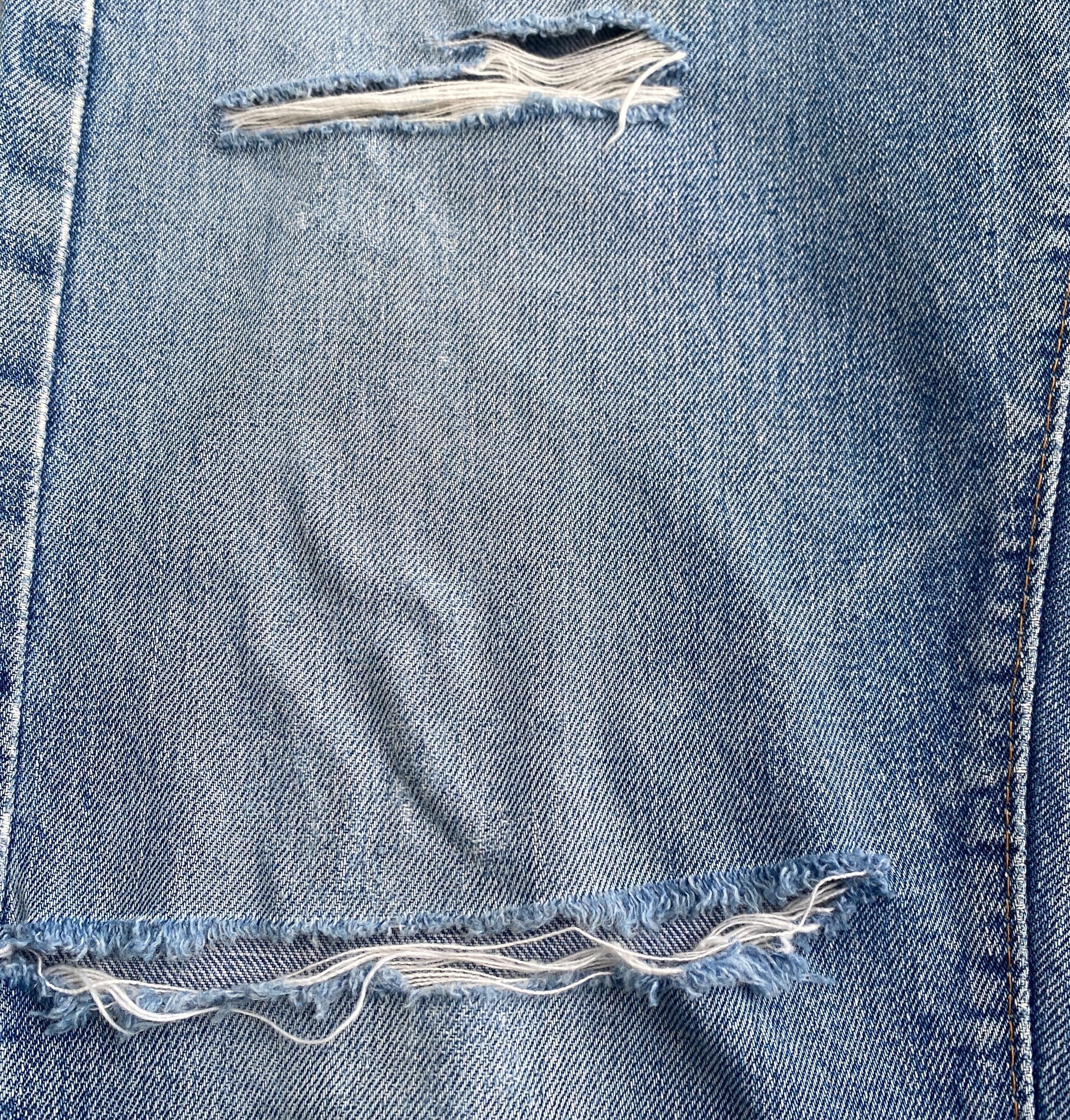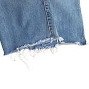 ほんのりとヒゲ、縦落ちの入った、ヴィンテージらしい雰囲気の良い色落ちに、がっつりダメージ感のあるグランジな雰囲気が非常に格好良い一着。
