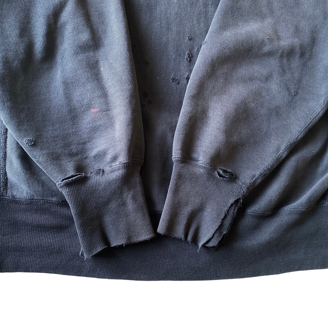 ブラックがフェードしたムラのある色目、部分的に入ったダメージ、薄いペンキ飛びなど、リアルなヴィンテージ感が大変素晴らしい一着。