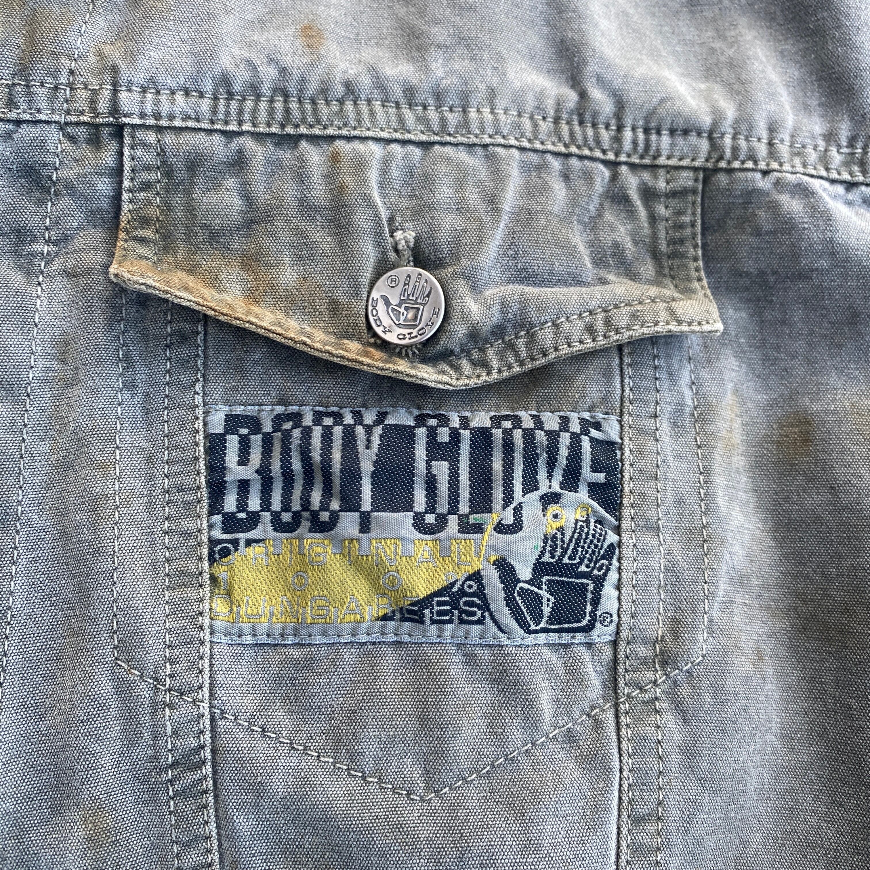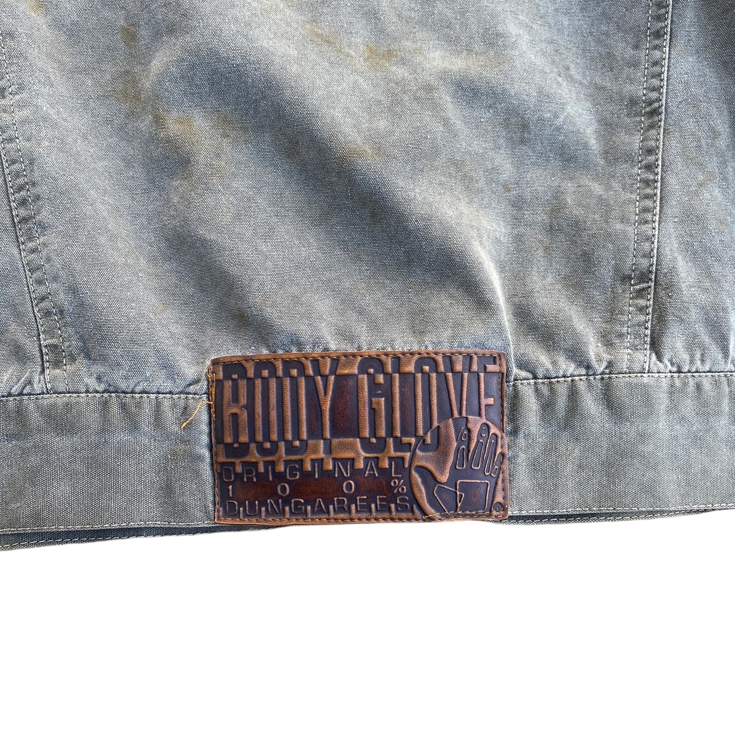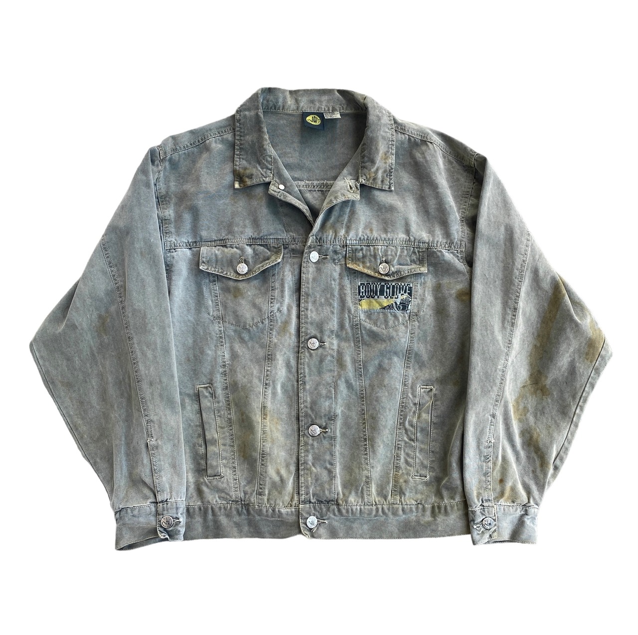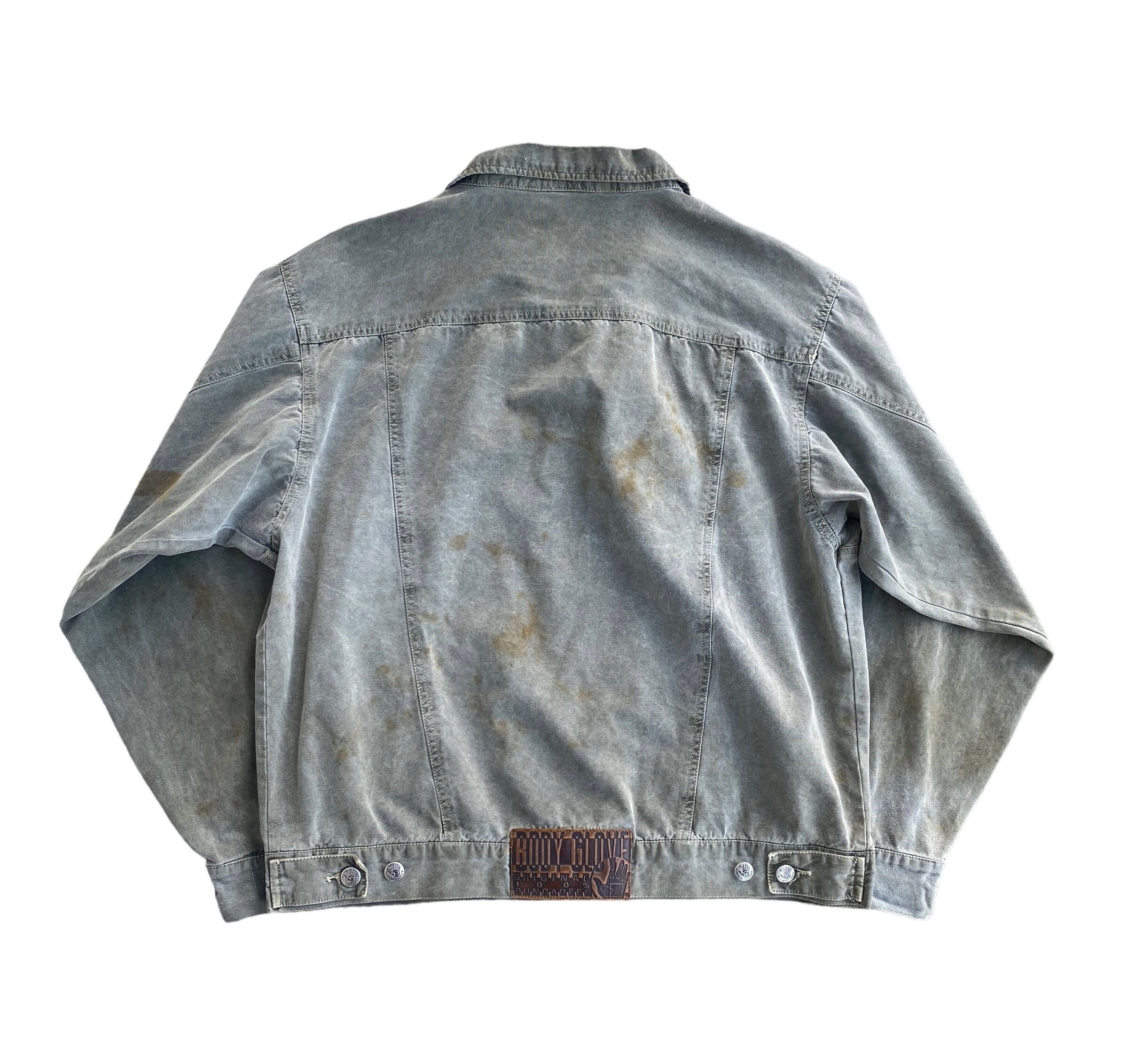 目の詰まったコットン100のライトキャンバス地に、短丈ボックスな今っぽいシルエット、全体的に入ったオイル、サビっぽい汚れがめちゃくちゃ格好良い一着。