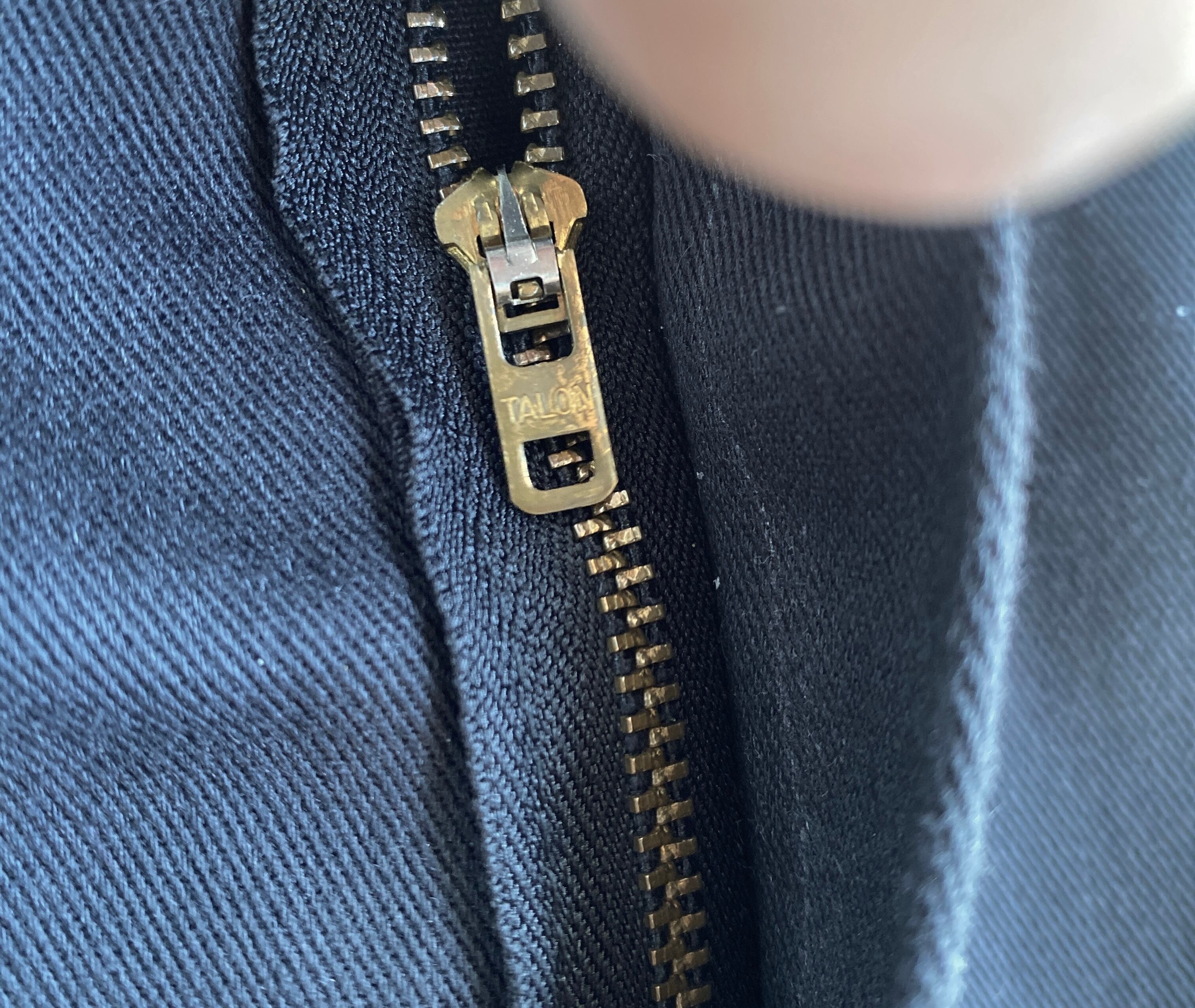 ジッパーはtalon、ウエストには拡張用のタックが入る90年代の一本。