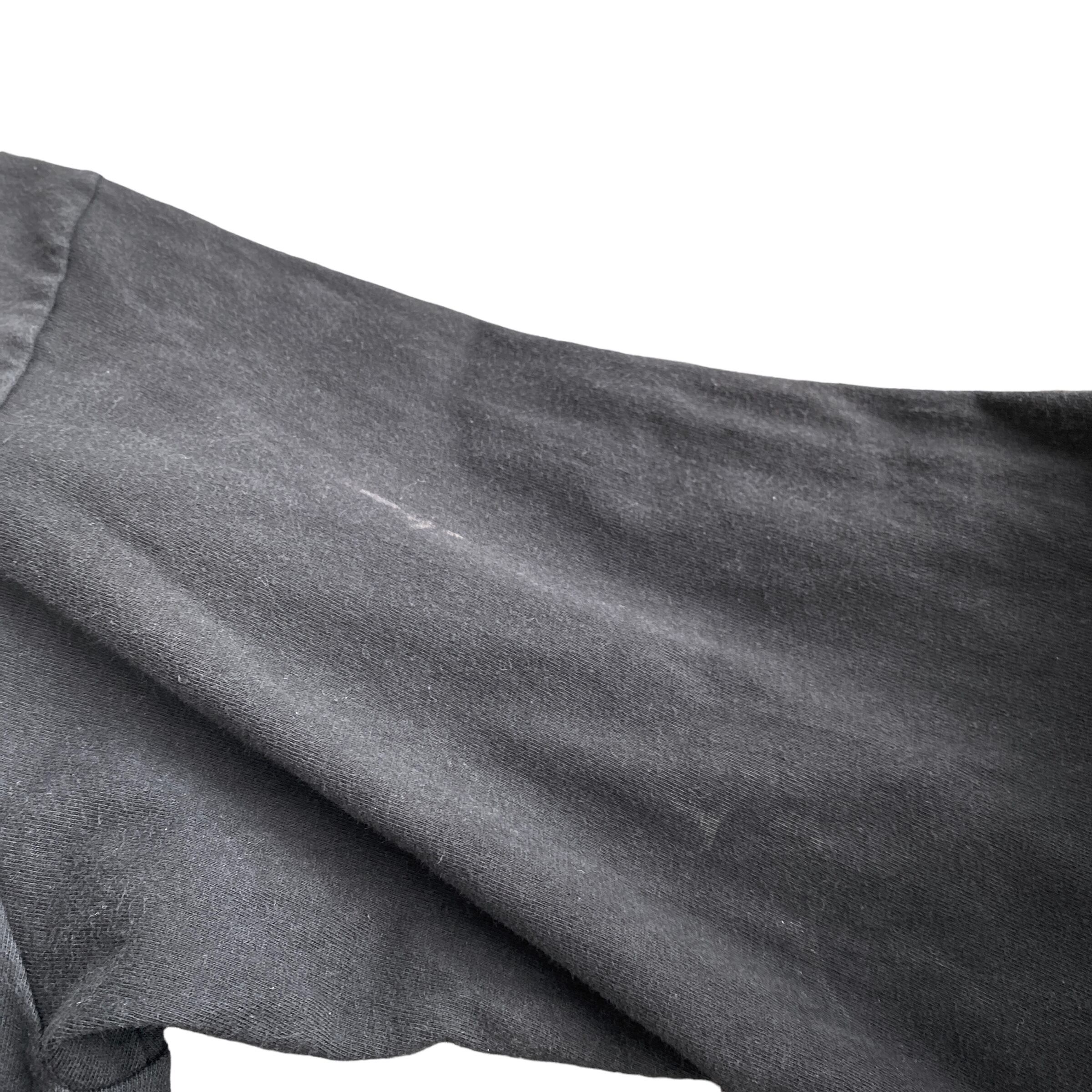 ブラックカラーのミニマルなデザインに、程よく肉厚ながら柔らかく落ち感のあるコットン100の生地感、程よく開いたアンニュイなネックライン、着丈の長すぎないゆったりとしたシルエットが非常に格好良い一着。