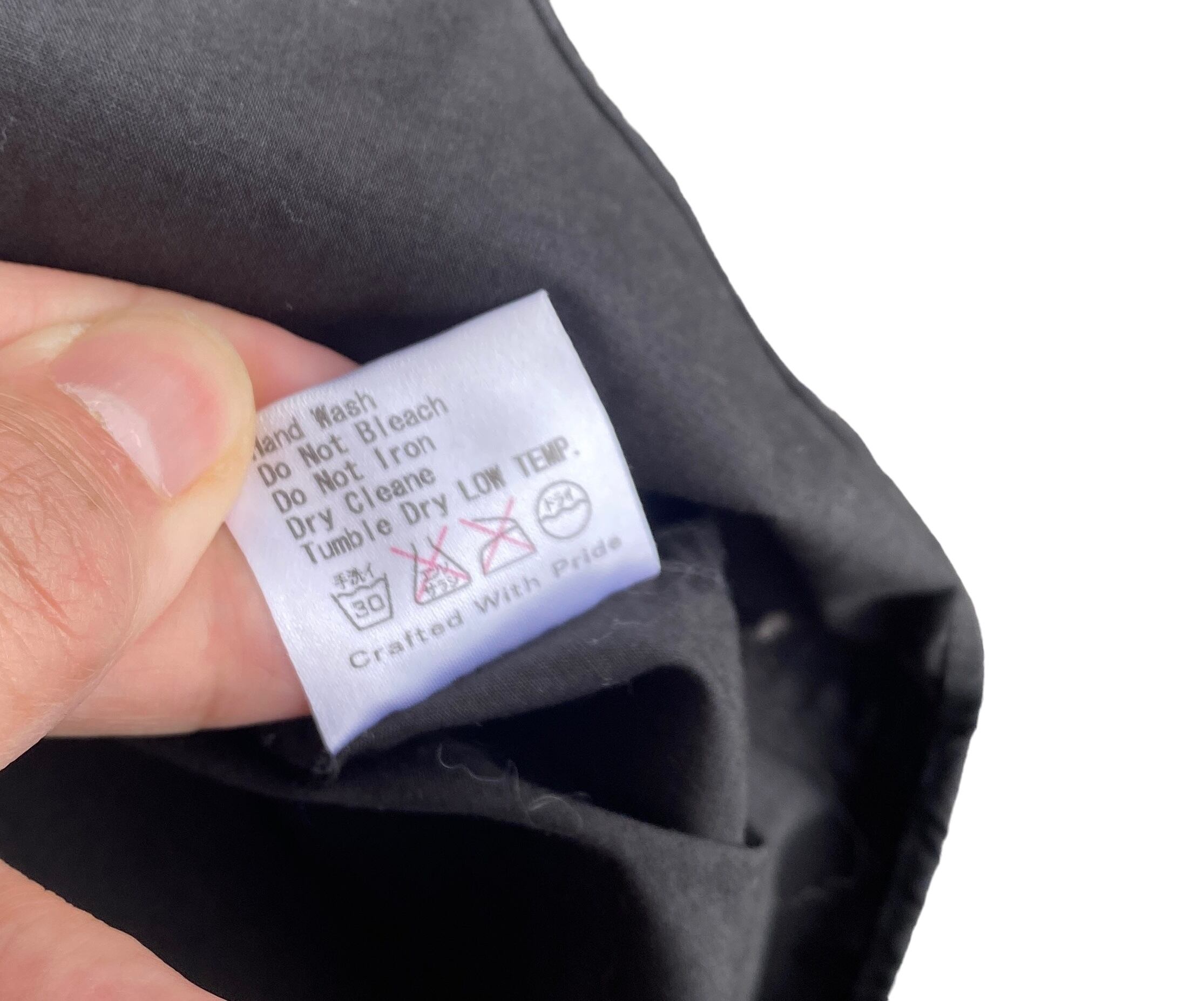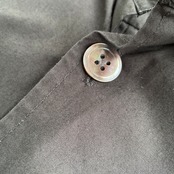 ハリのあるコットンブロードクロス素材のブラックボディに、黒蝶貝ボタンが使用され、カジュアルシャツながら非常に高級感があります。