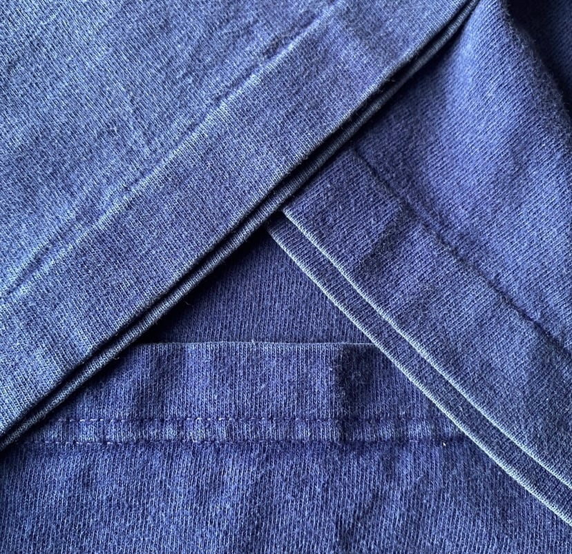 くすんだブルーの綺麗な色目に、かなりゆったりとしたボックスシルエットが非常に格好良い一着。