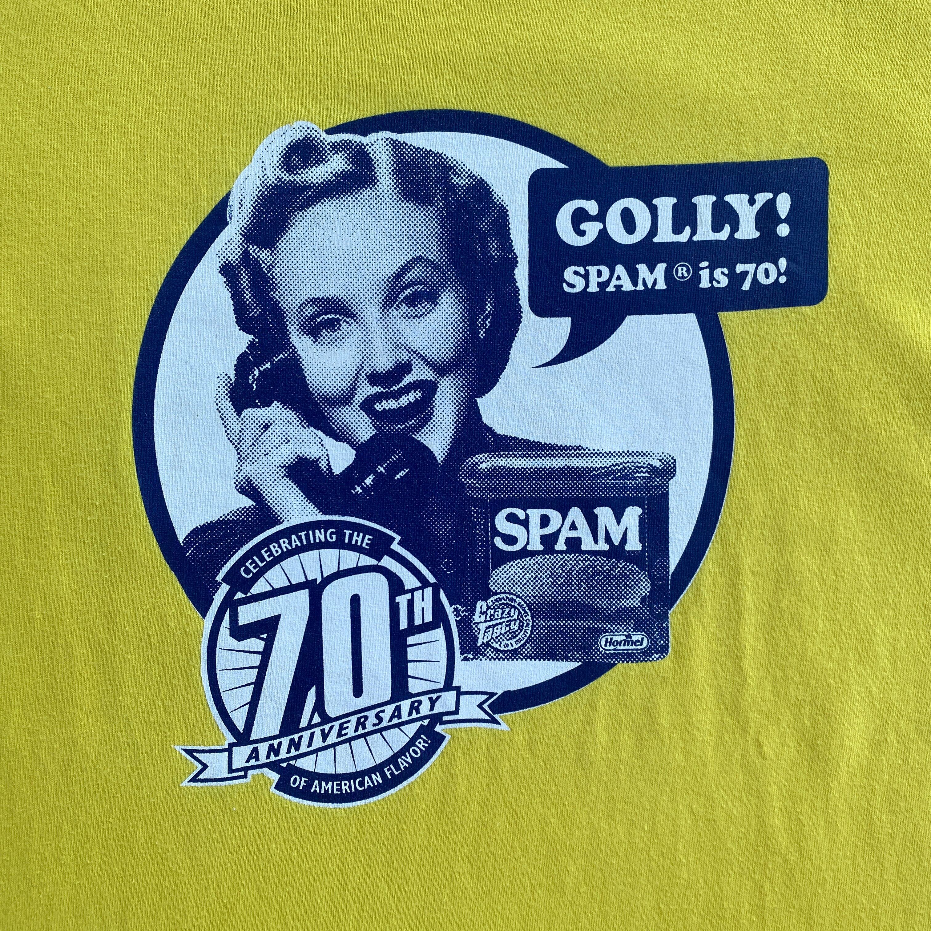 2000年代ごろの「スパム」プリントTシャツになります。(1937年創立なので2007?)