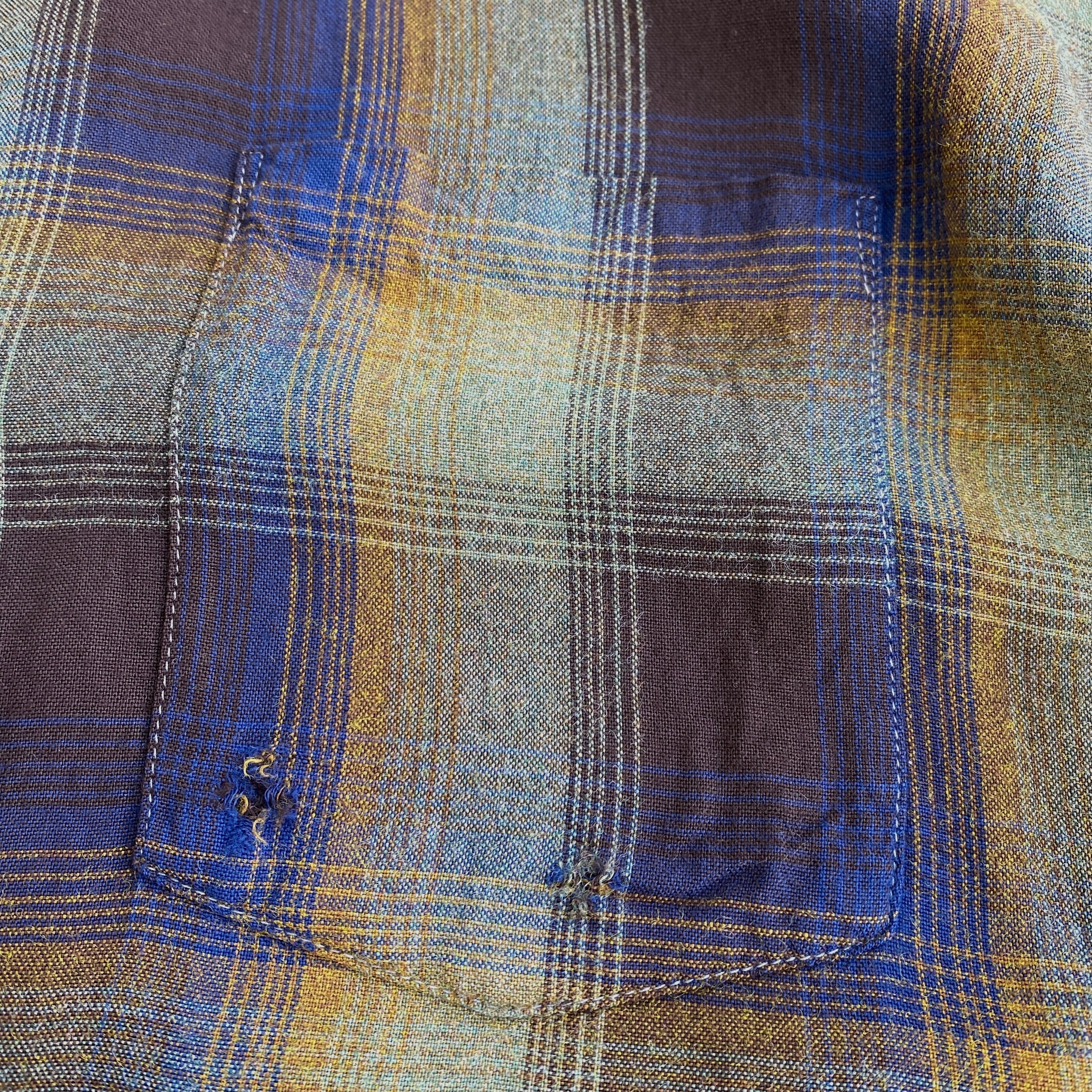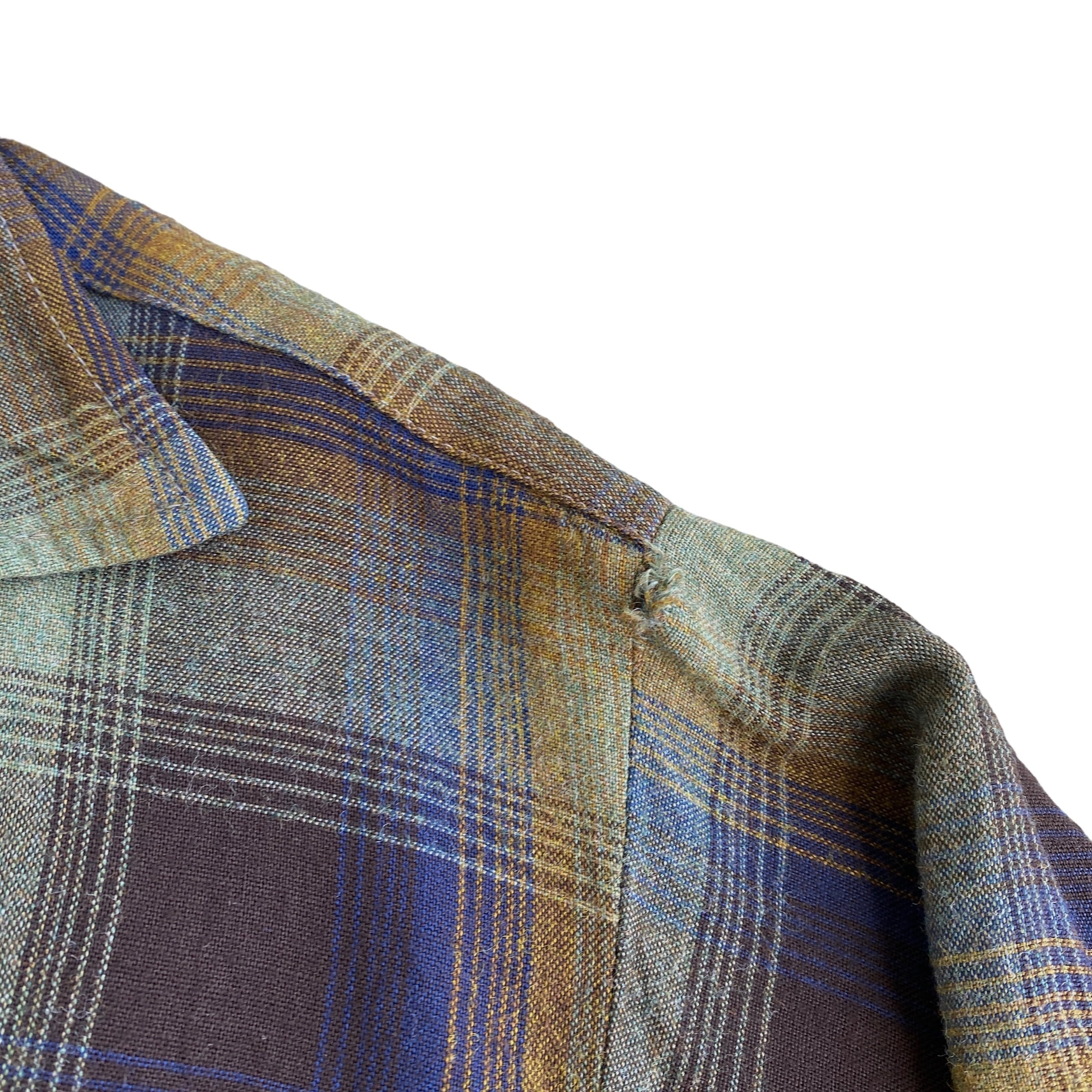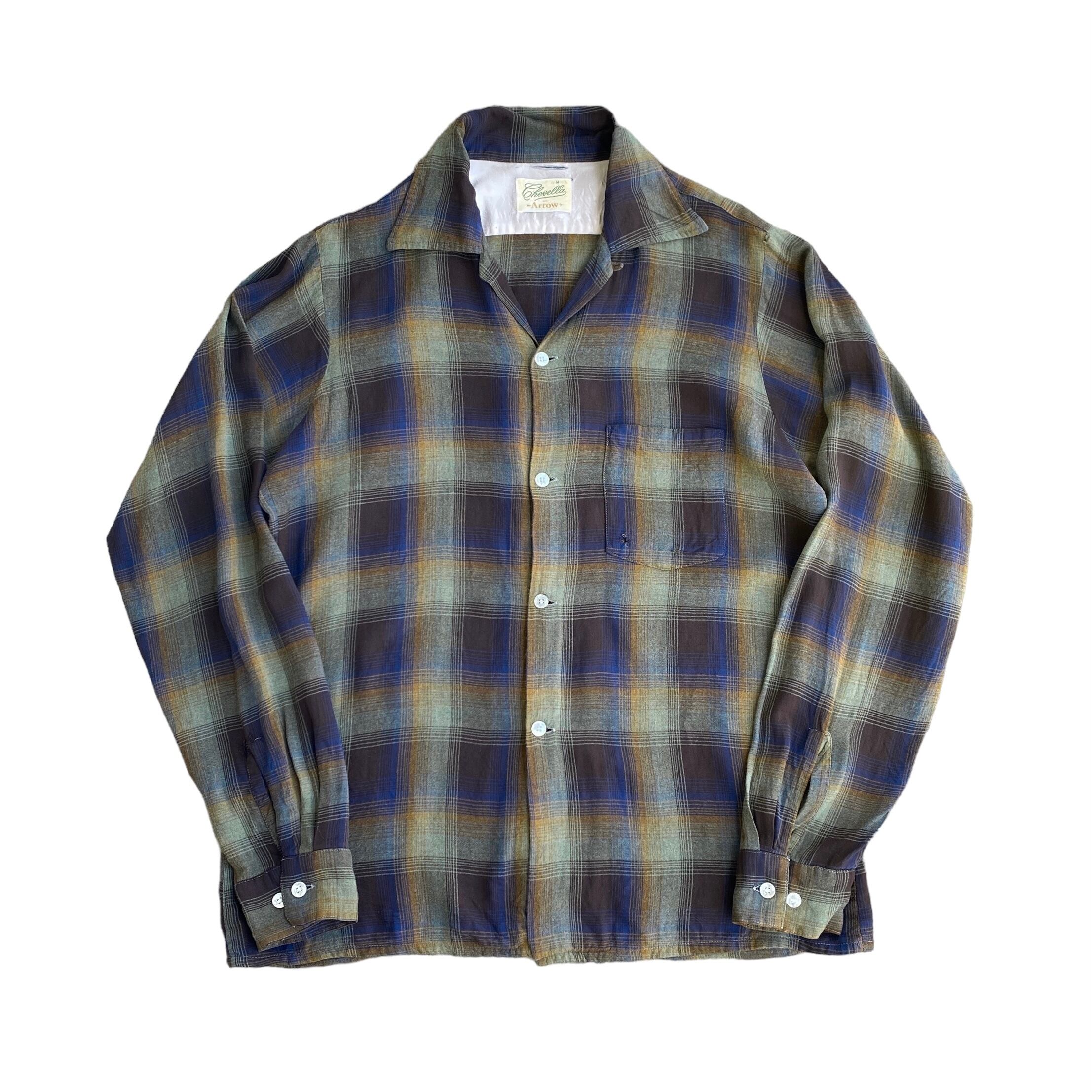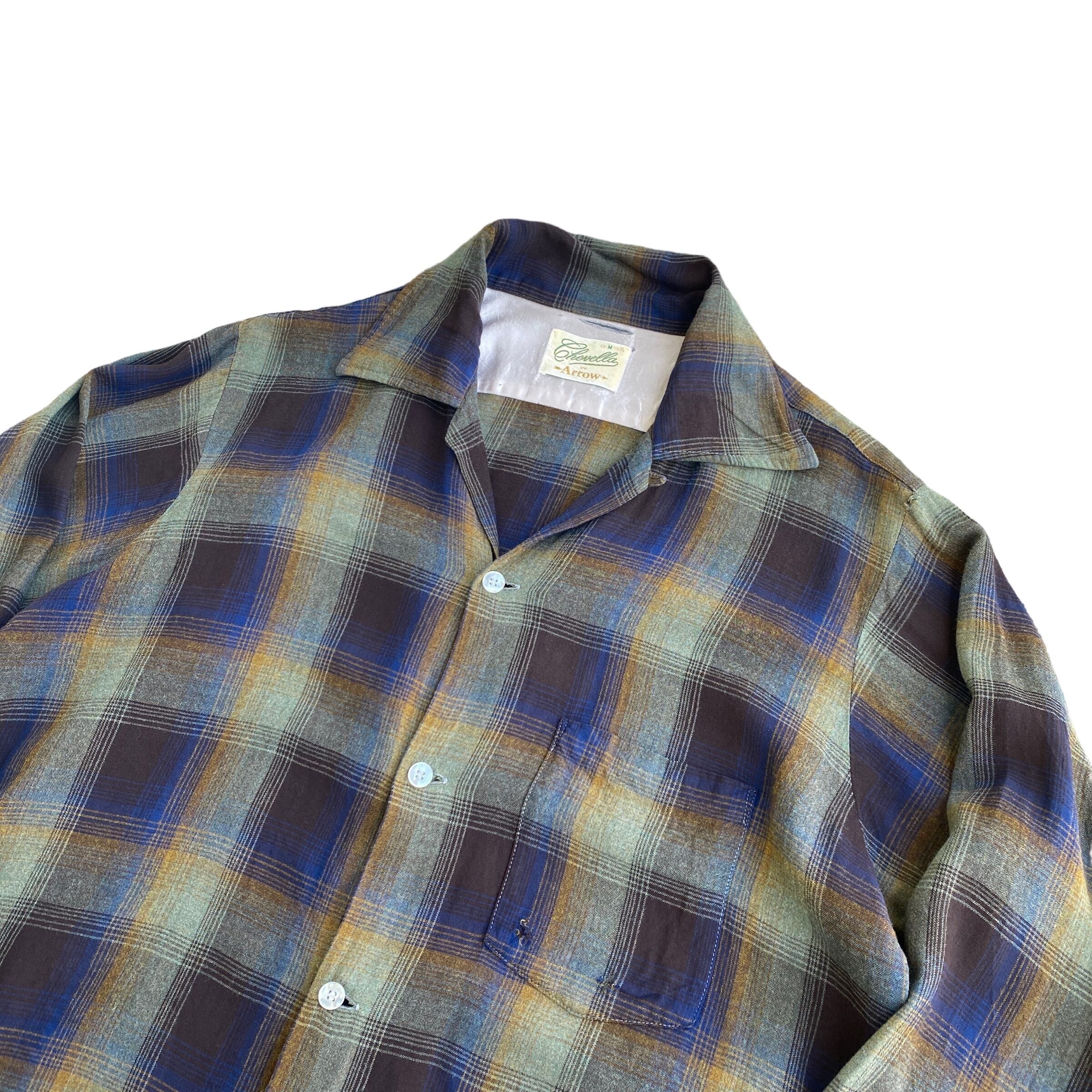 1960-1970年代頃のアローオープンカラーオンブレチェックレーヨンシャツになります。