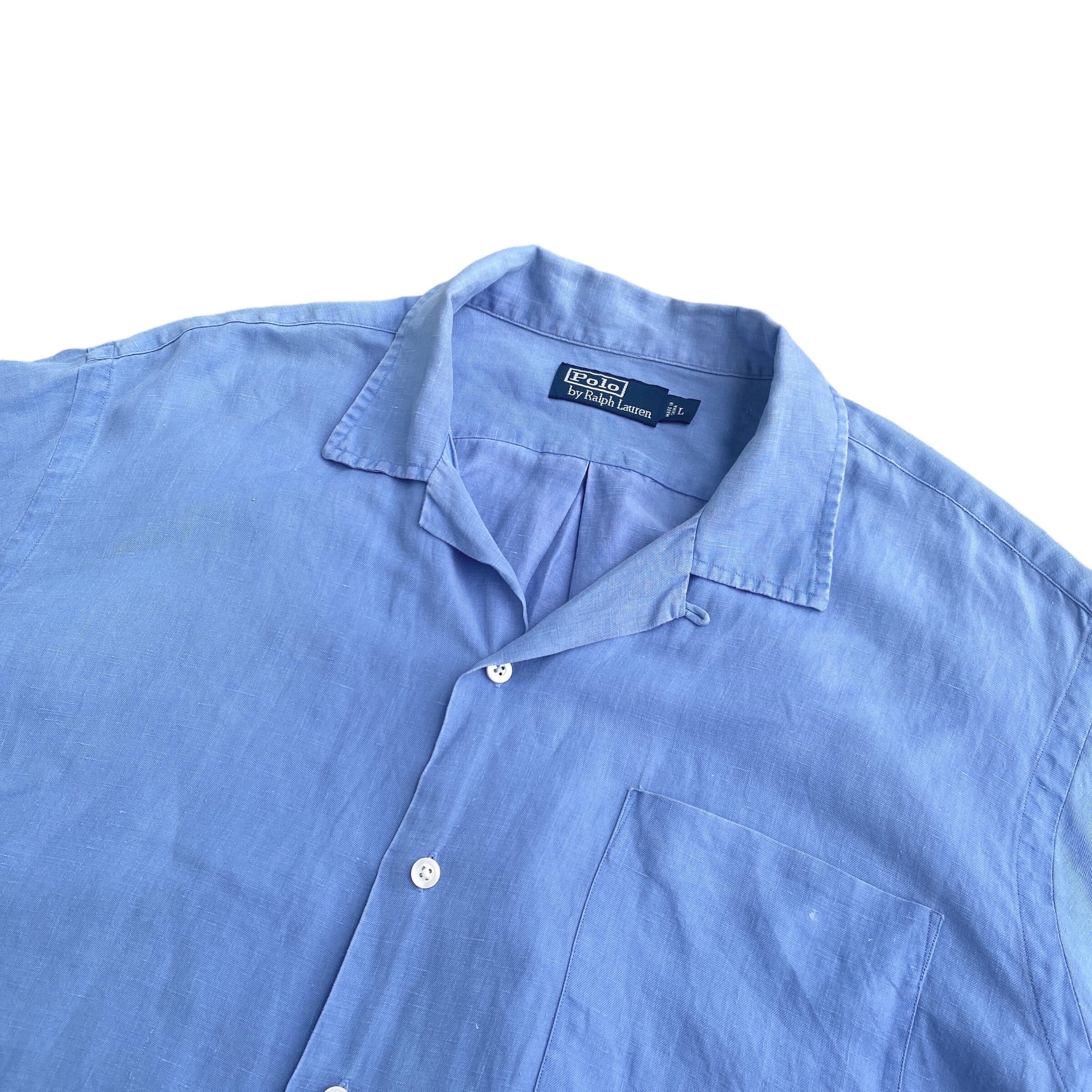 90s POLO by Ralph Lauren silk×linen open collar shirt